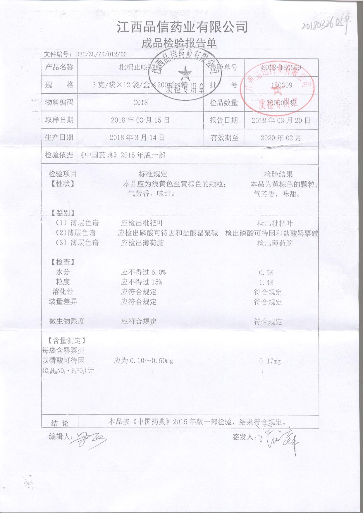 枇杷止咳顆粒 3g*12袋 180309 查看詳情