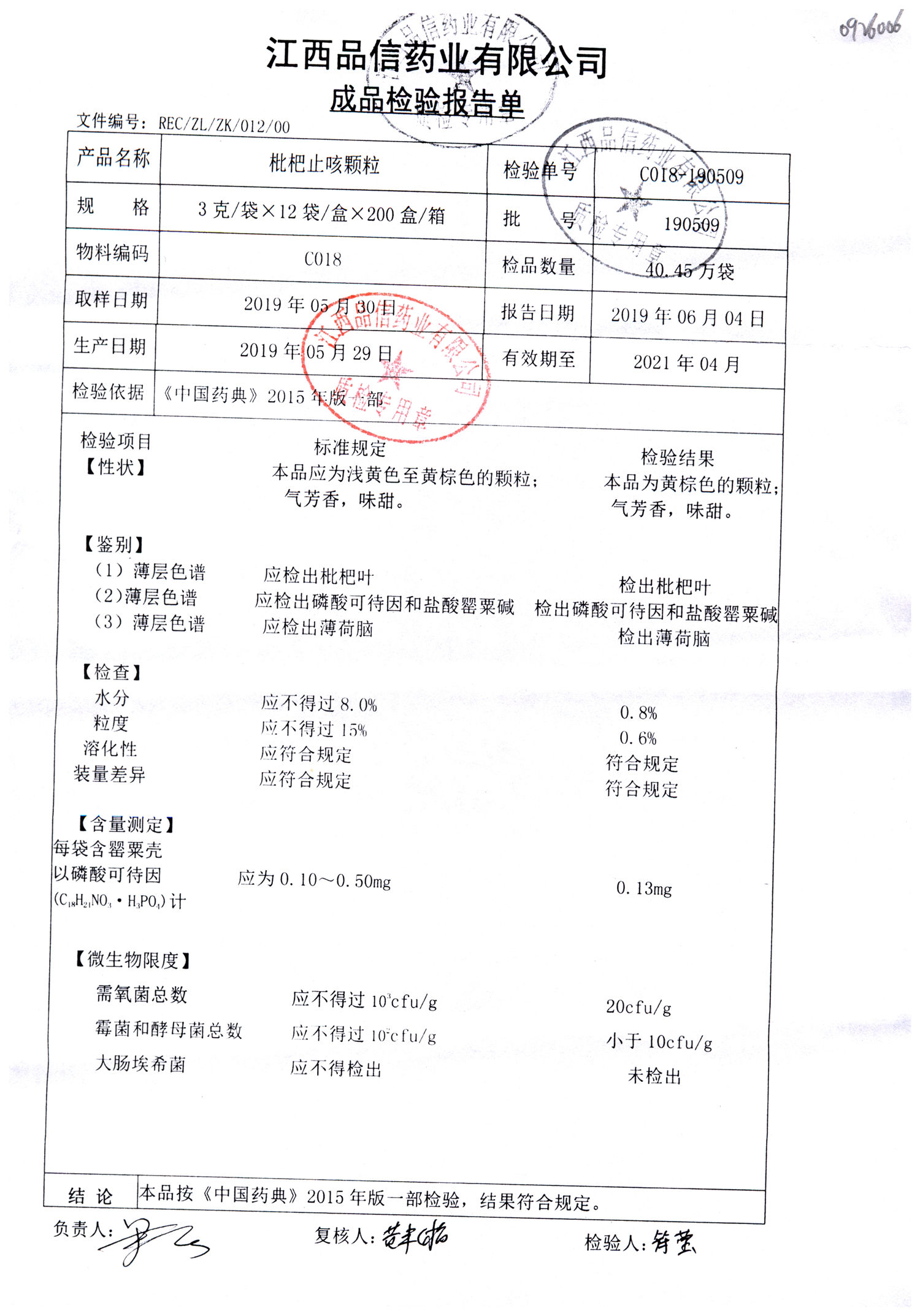 名稱 規(guī)格 批號(hào) 藥檢報(bào)告