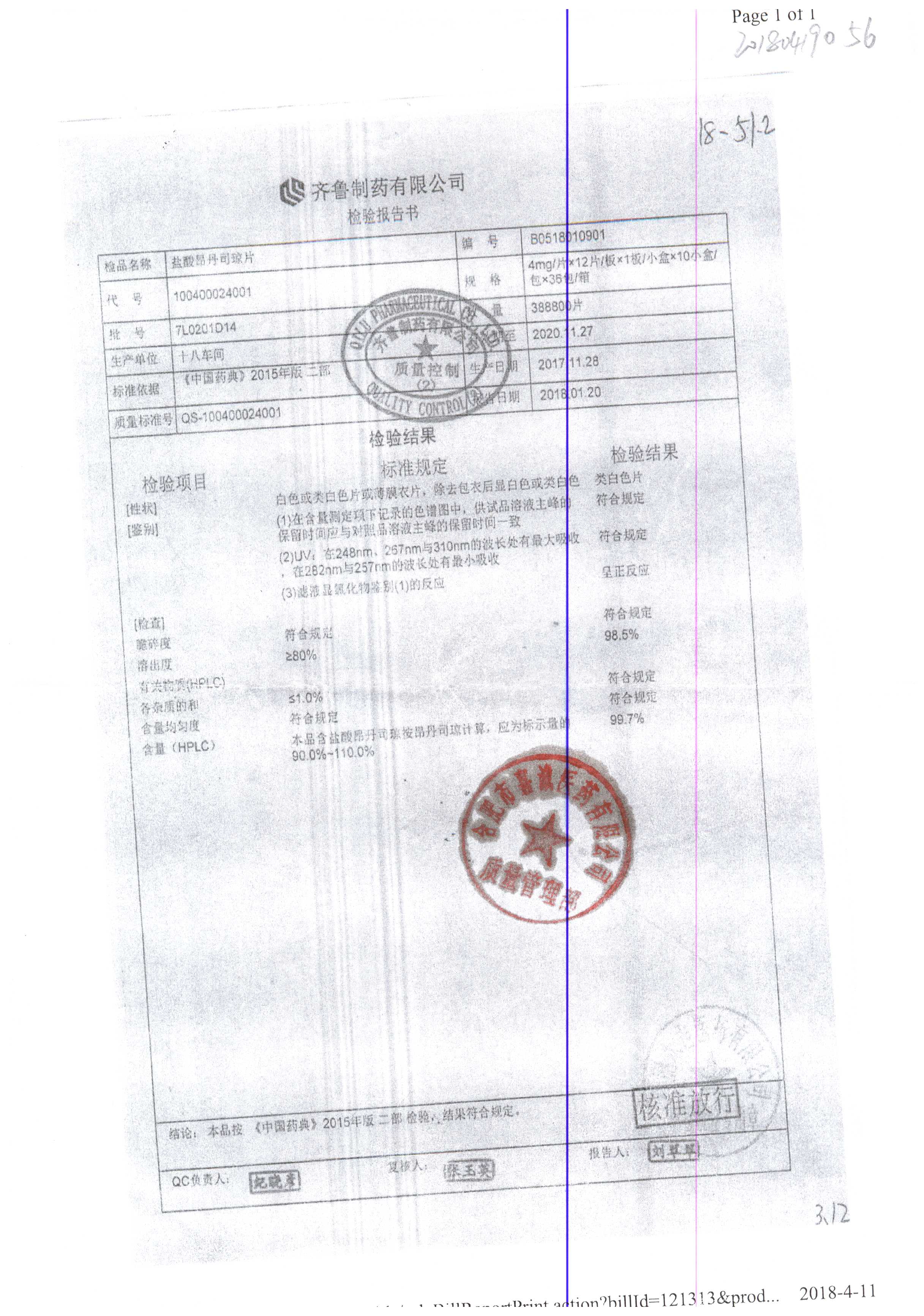 鹽酸昂丹司瓊片 4mg*12s 7L0201D14 查看詳情