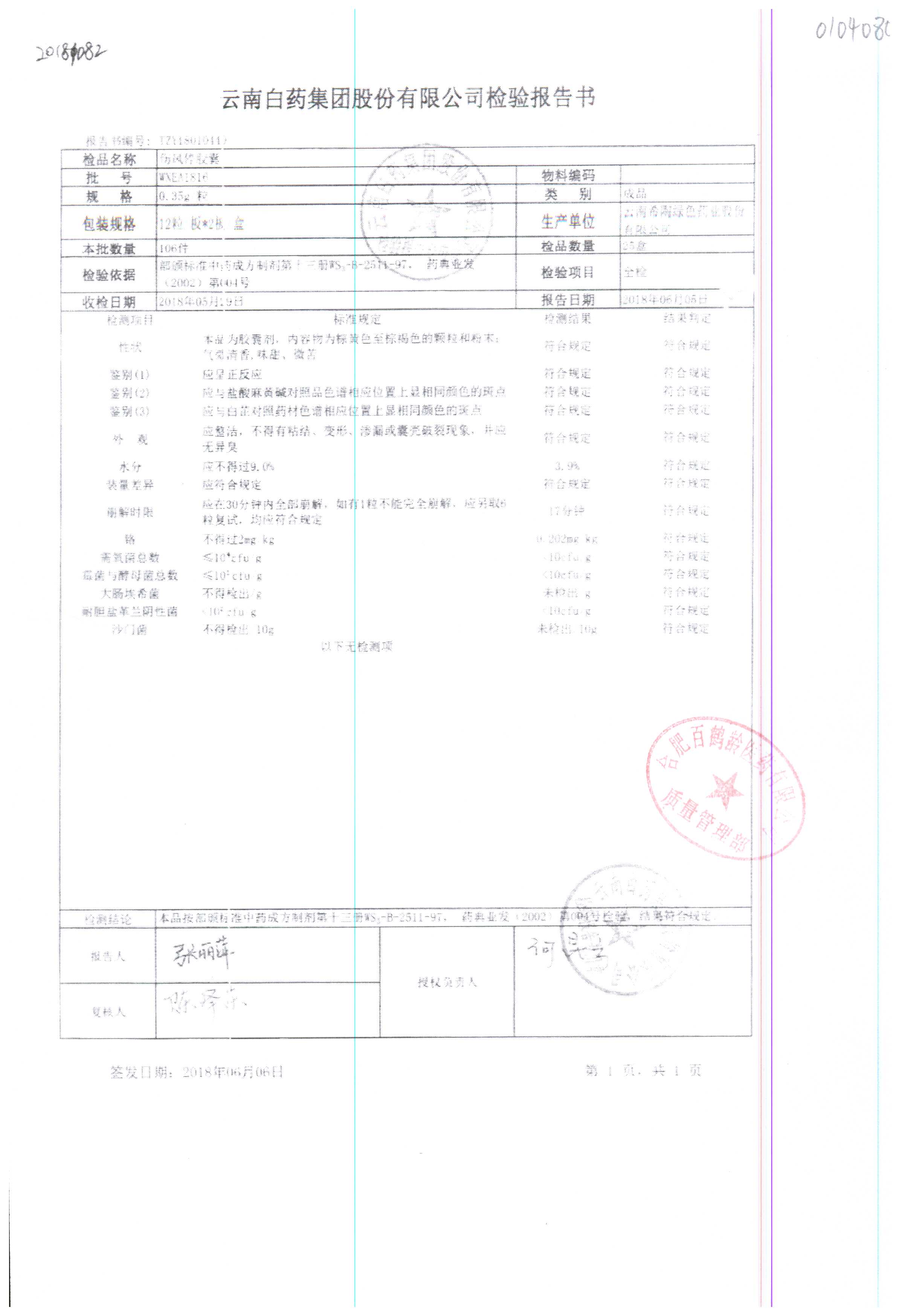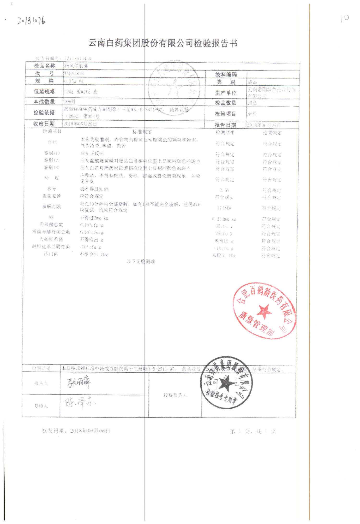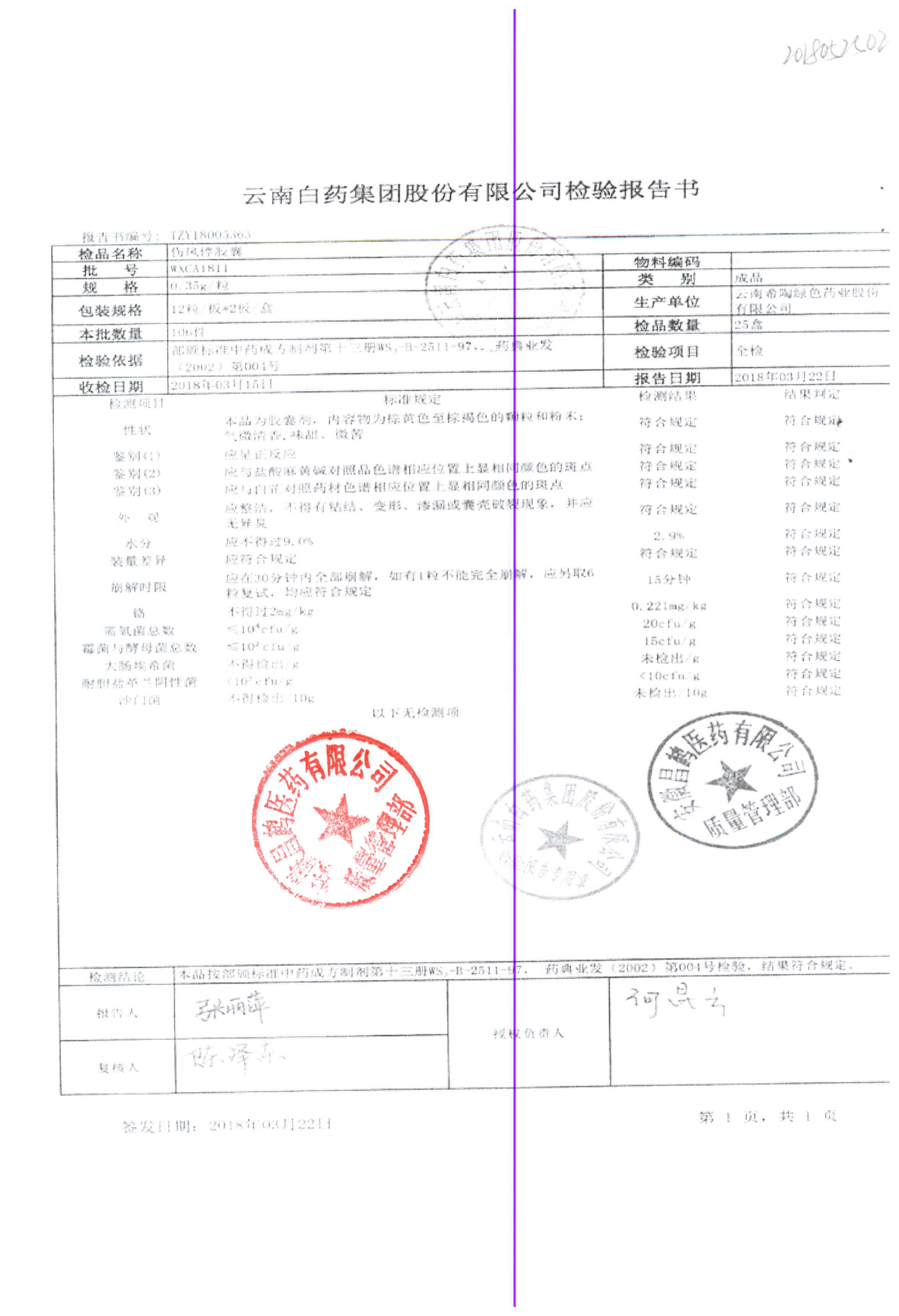 | 名稱 | 規(guī)格 | 批號 | 藥檢報告 |