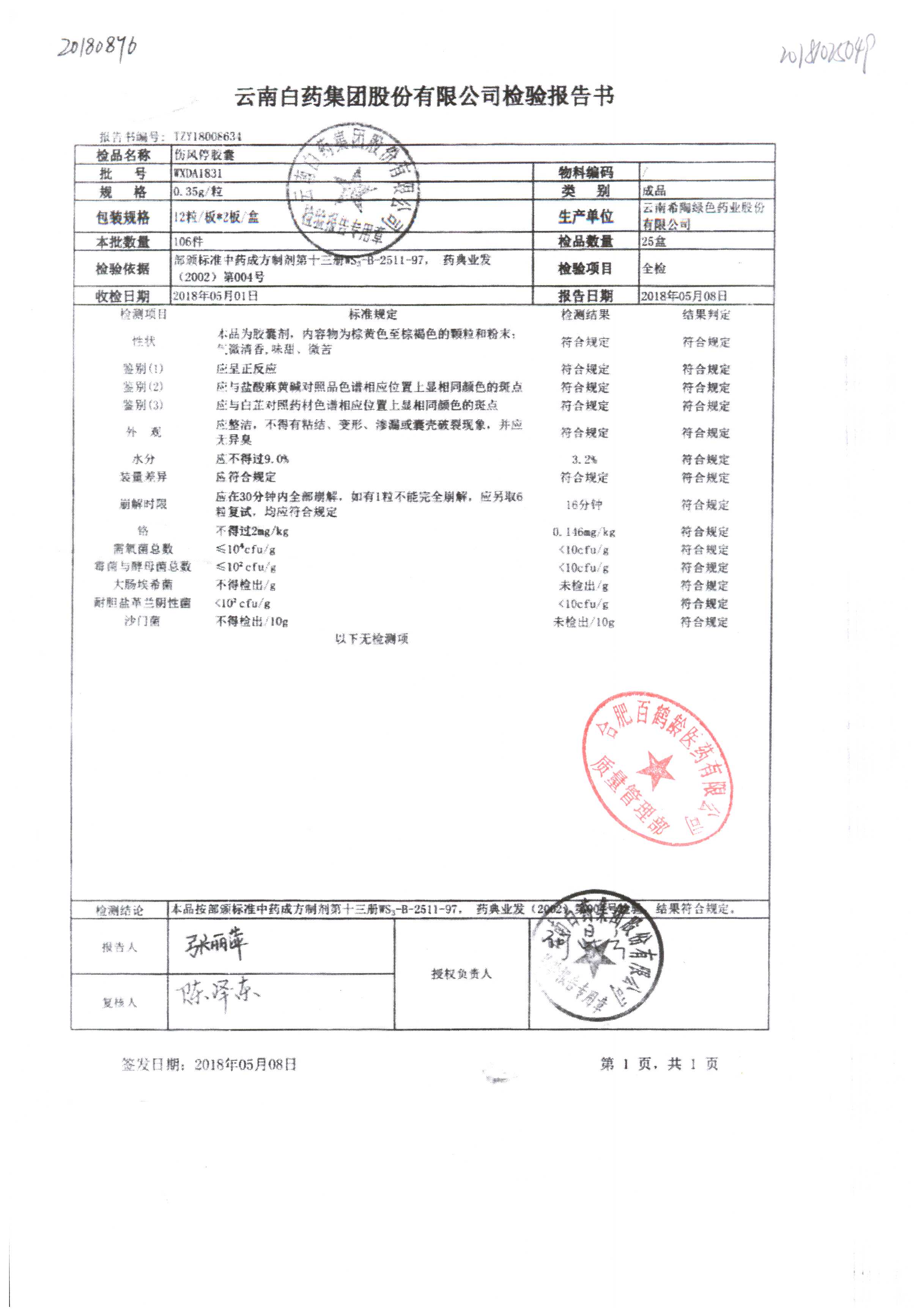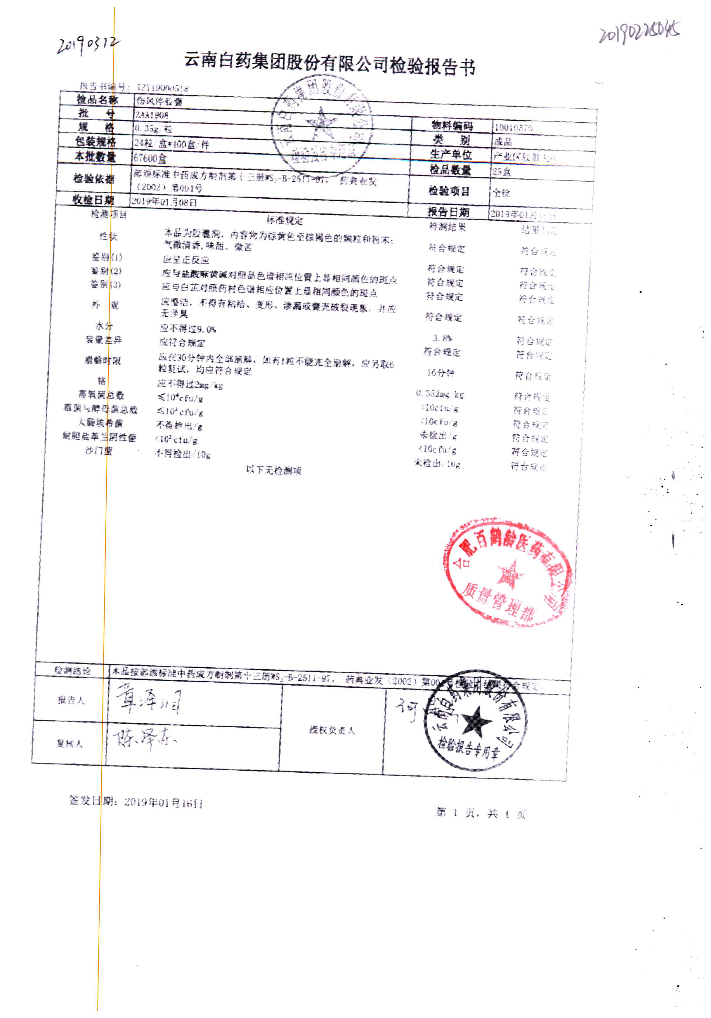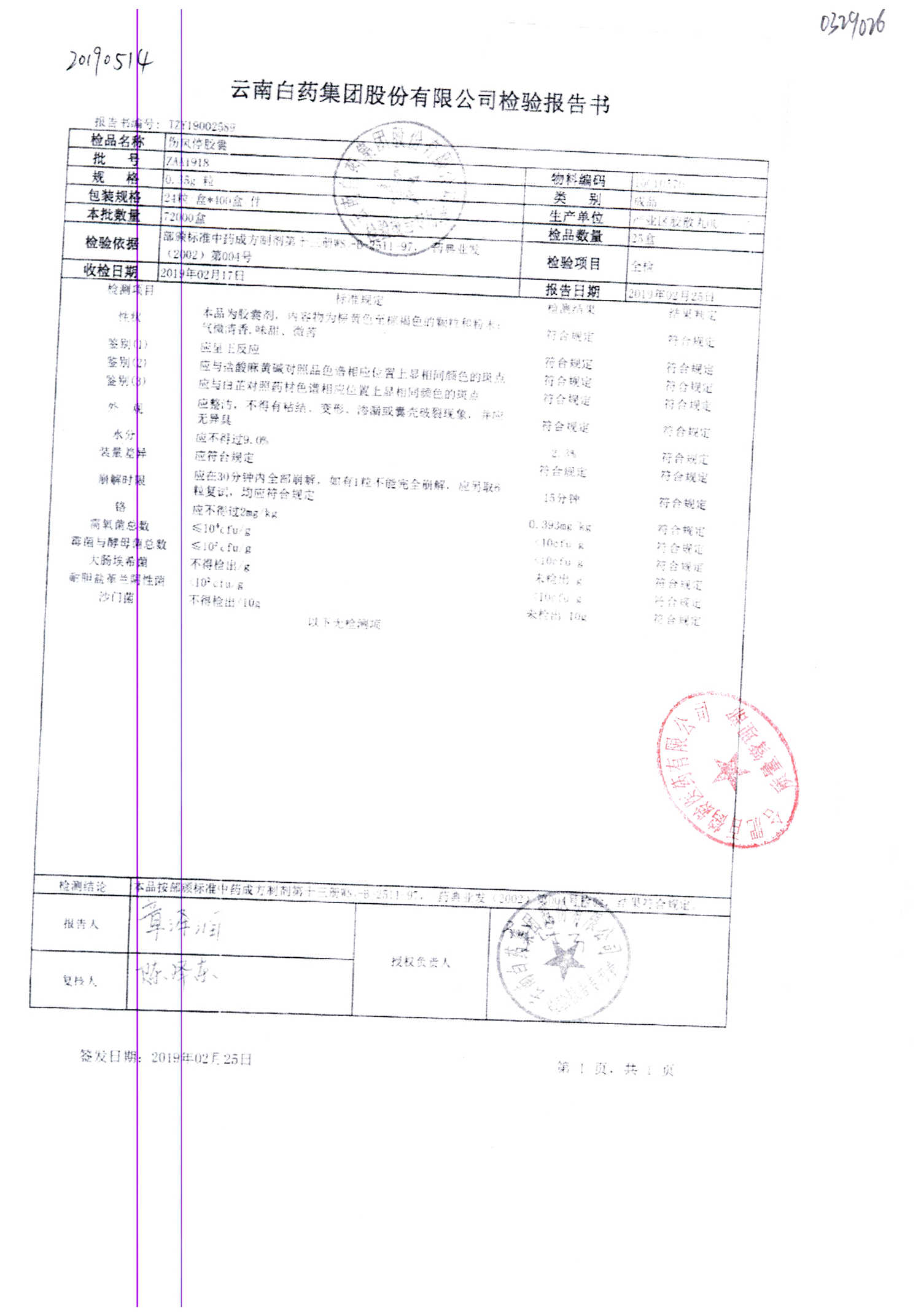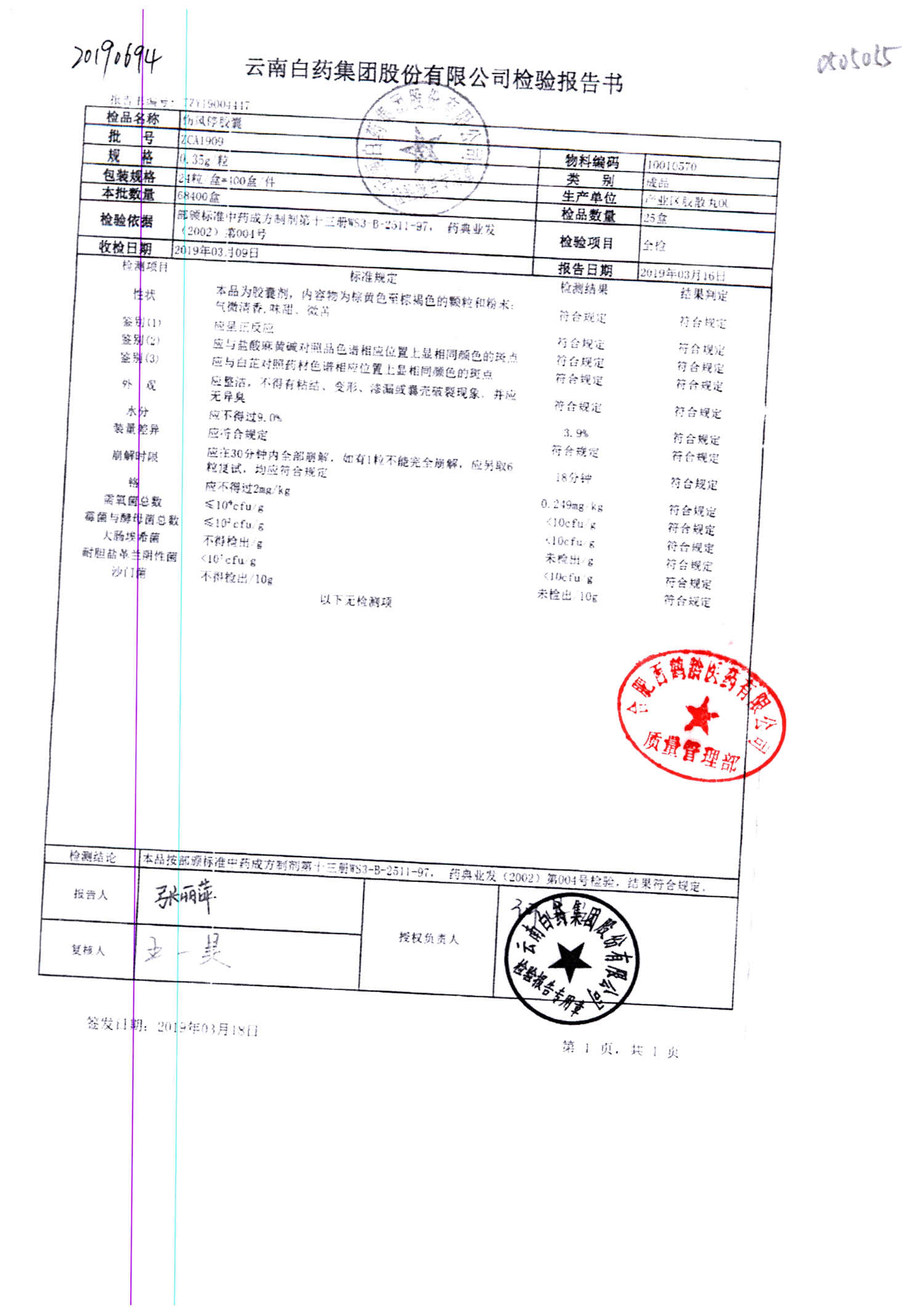| 名稱 | 規(guī)格 | 批號 | 藥檢報告 |