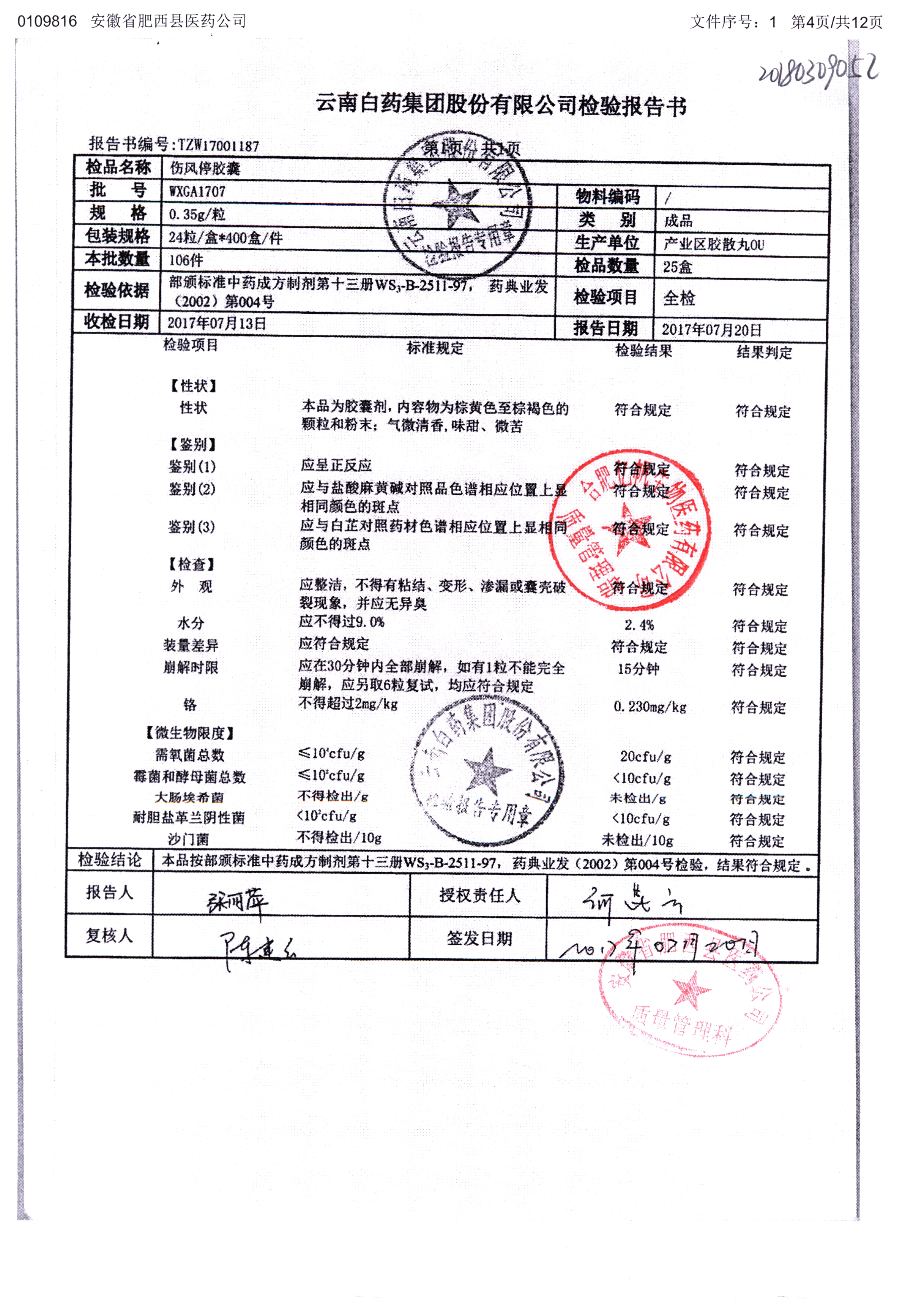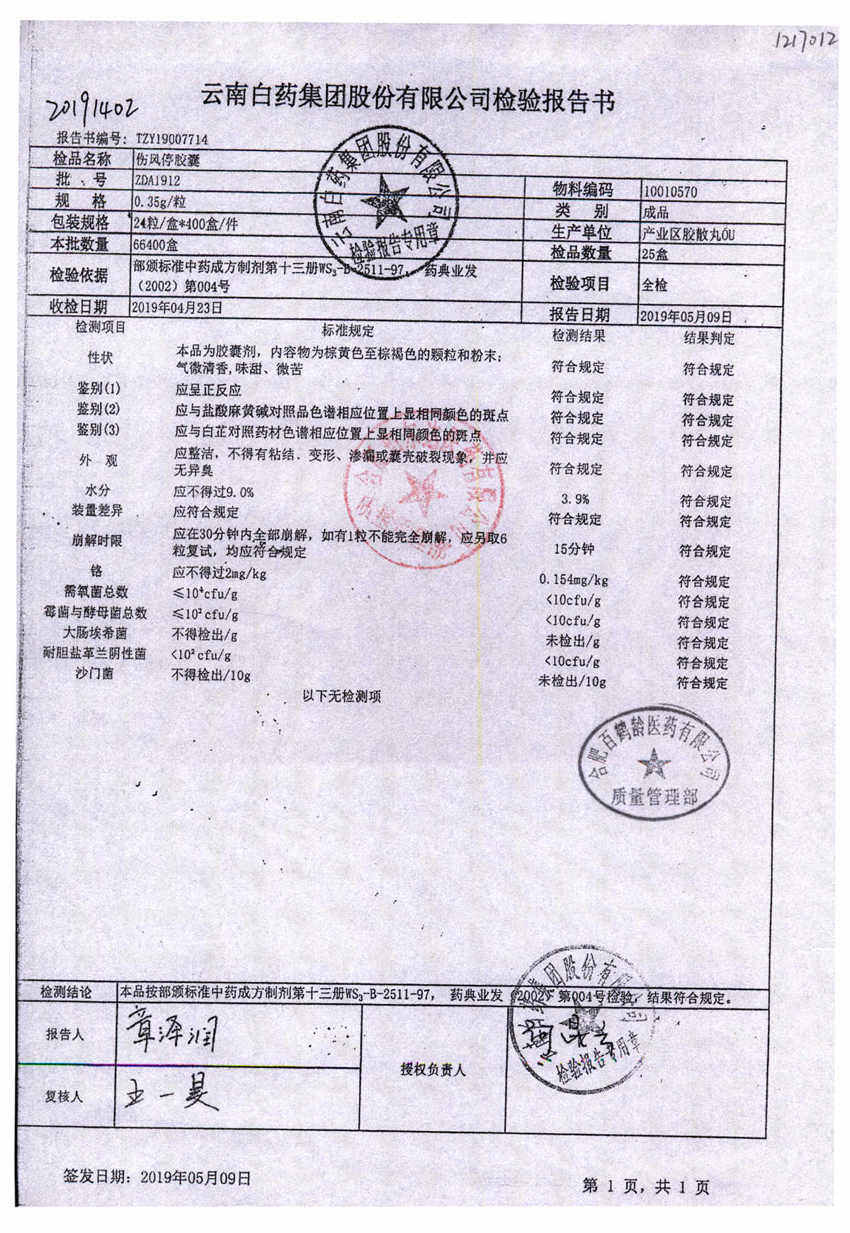 | 傷風(fēng)停膠囊 | 0.35g*24s | ZAA1908 | 查看詳情 |