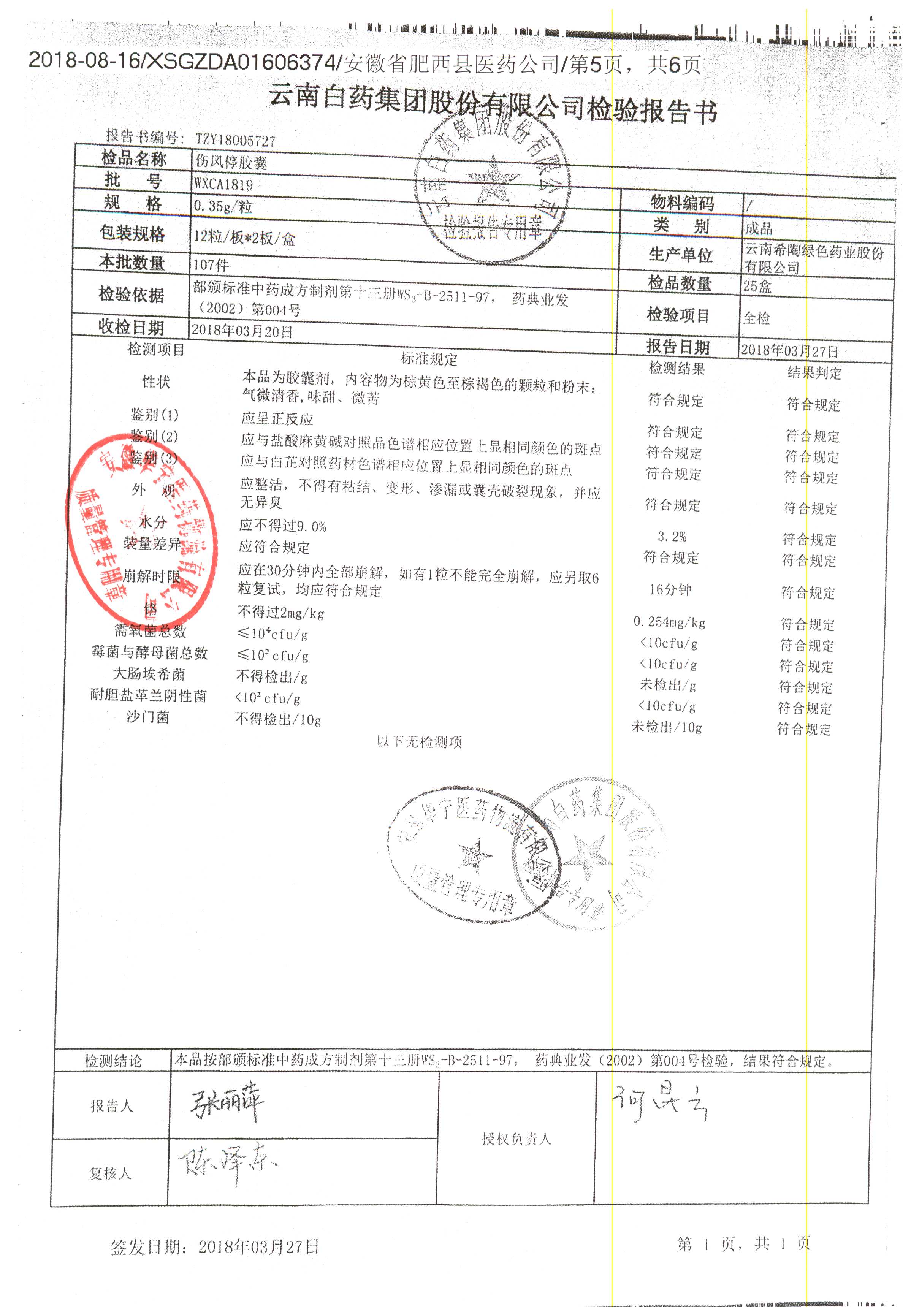 | 傷風(fēng)停膠囊 | 0.35g*24s | WXDA1806 | 查看詳情 |