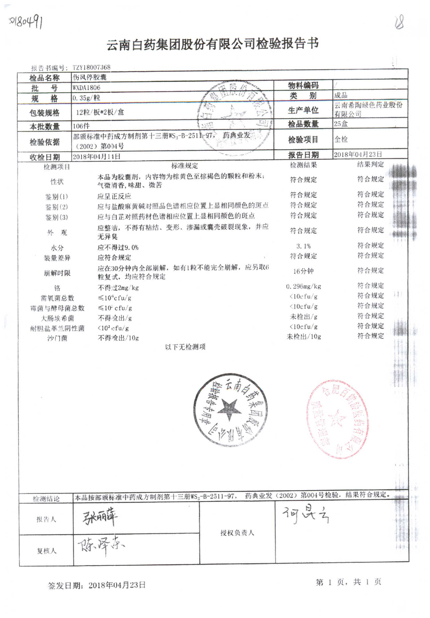 | 傷風(fēng)停膠囊 | 0.35g*24s | WXDA1831 | 查看詳情 |