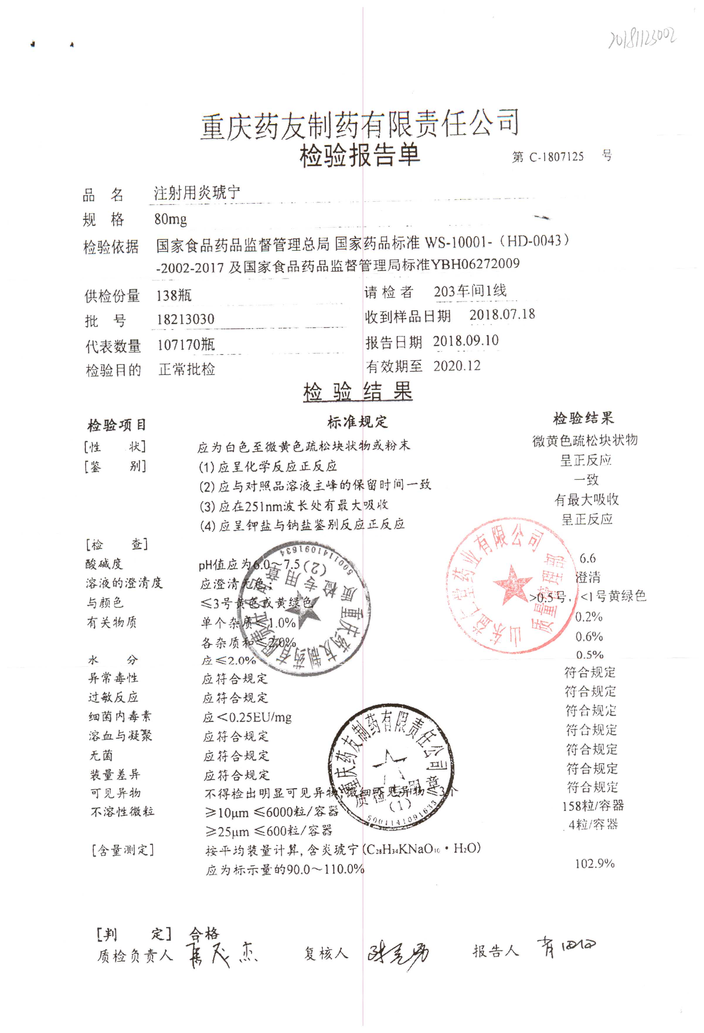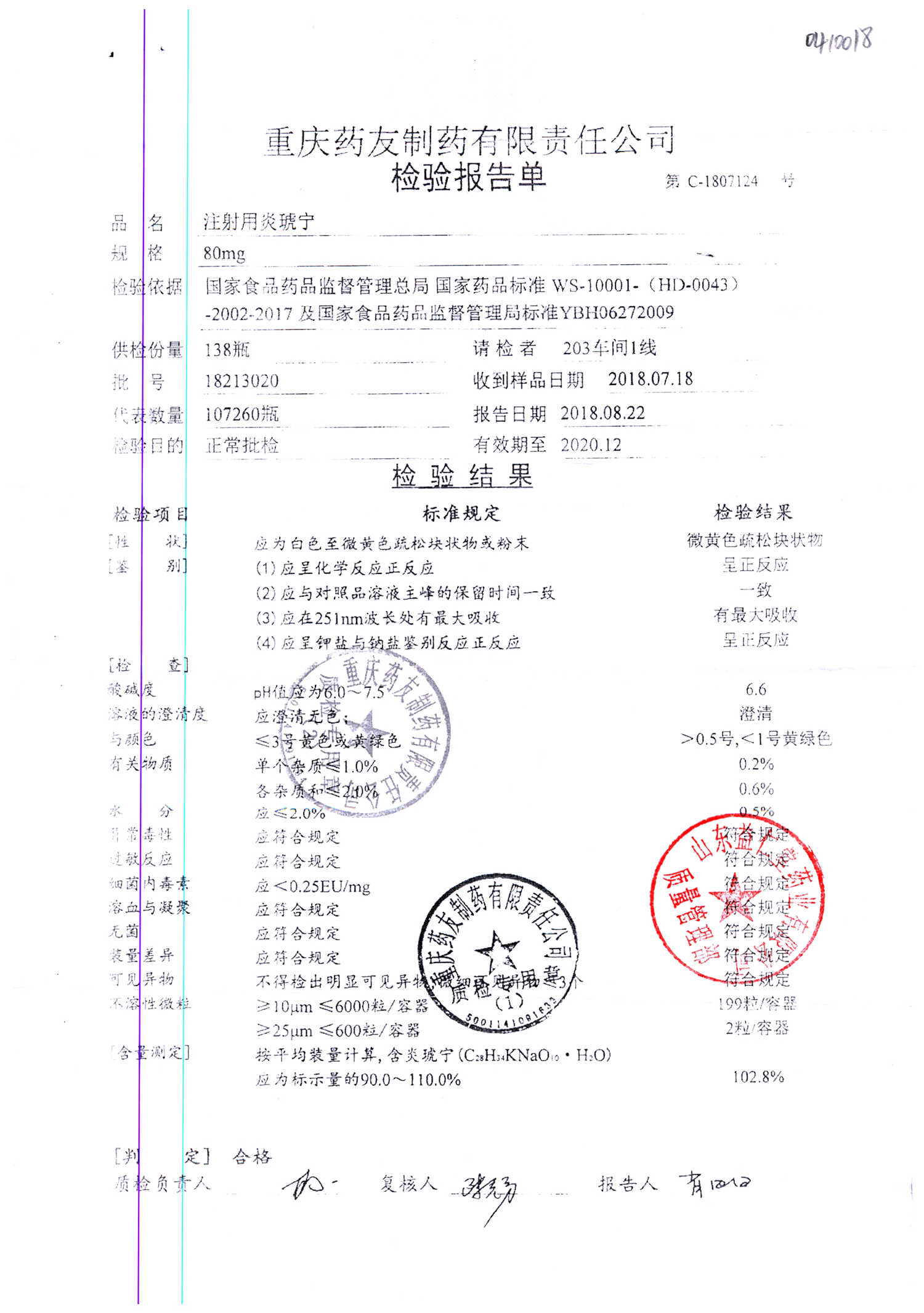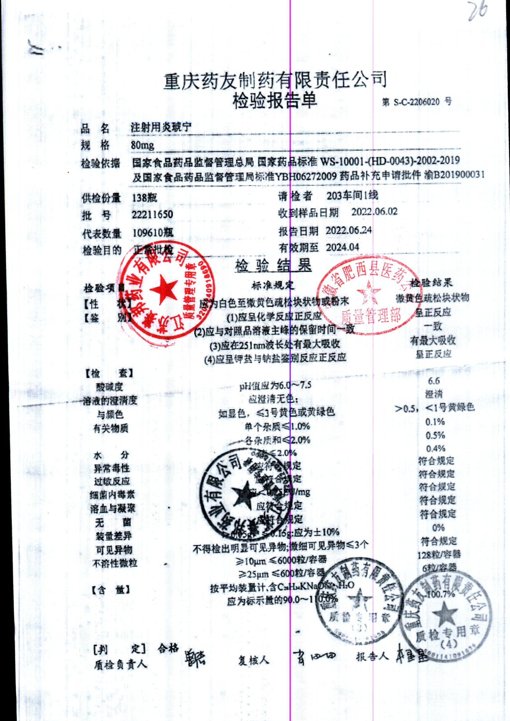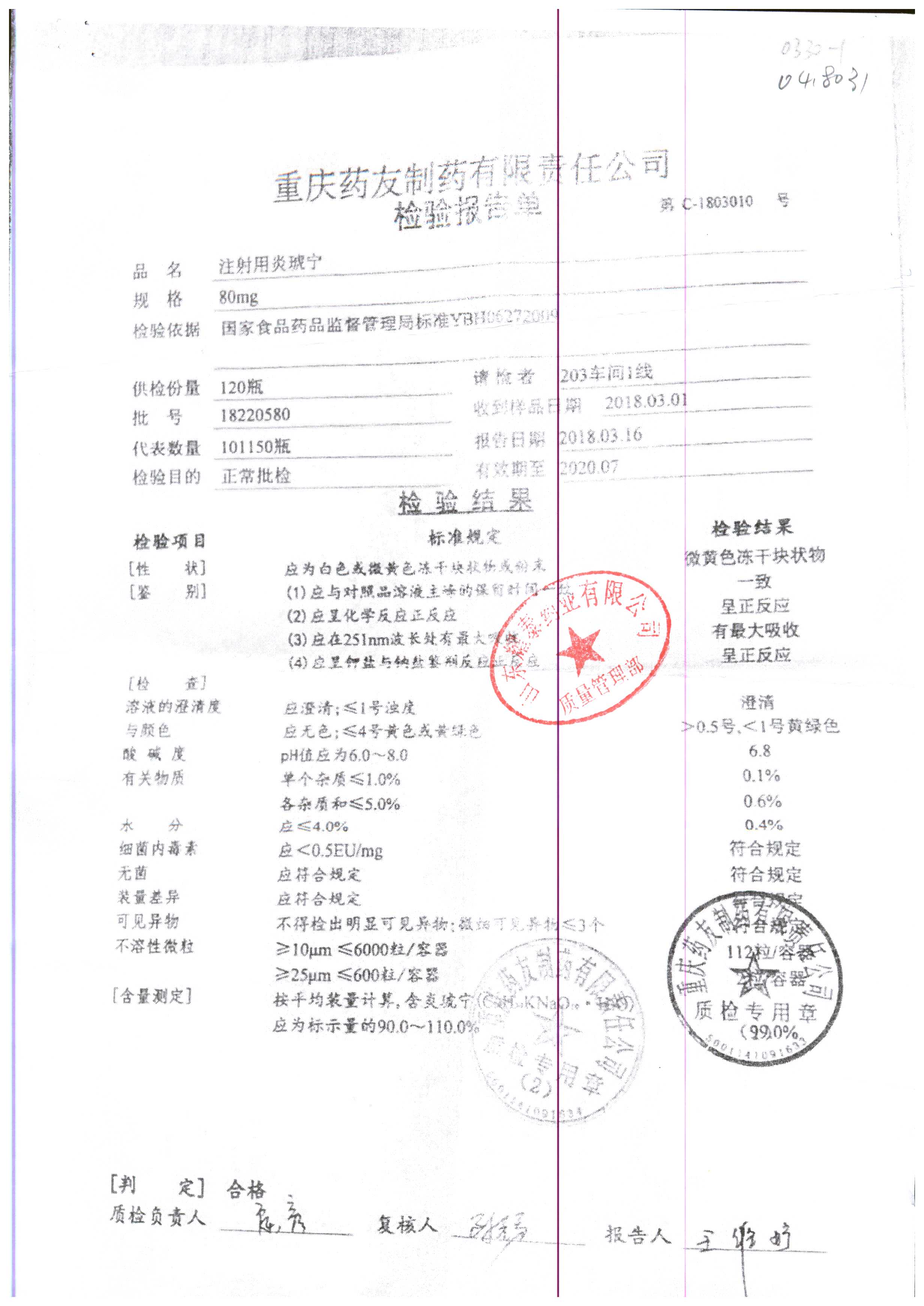 | 名稱 | 規(guī)格 | 批號(hào) | 藥檢報(bào)告 |