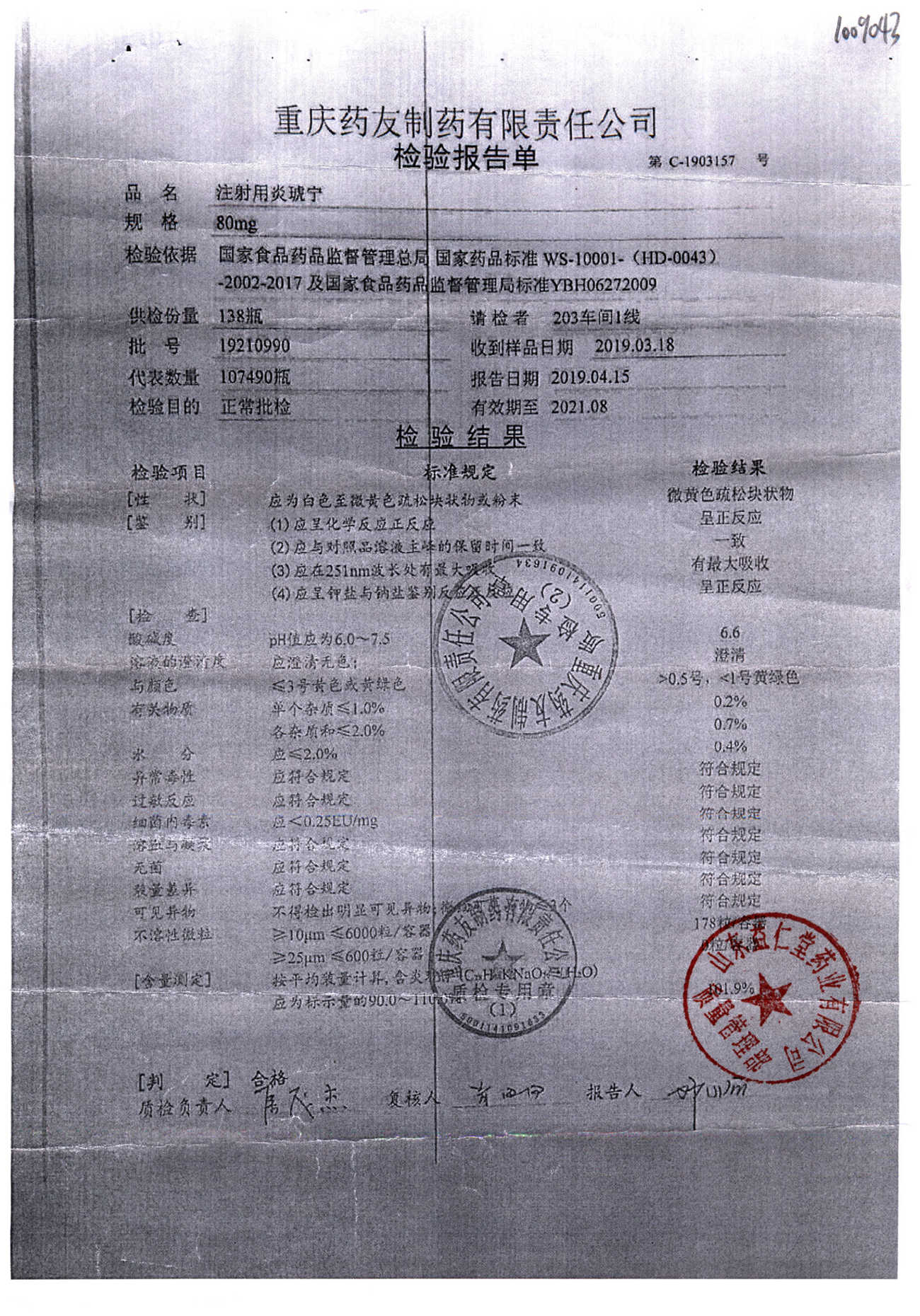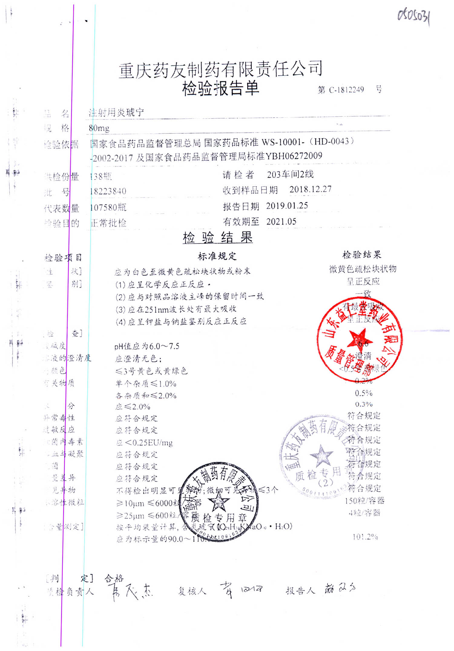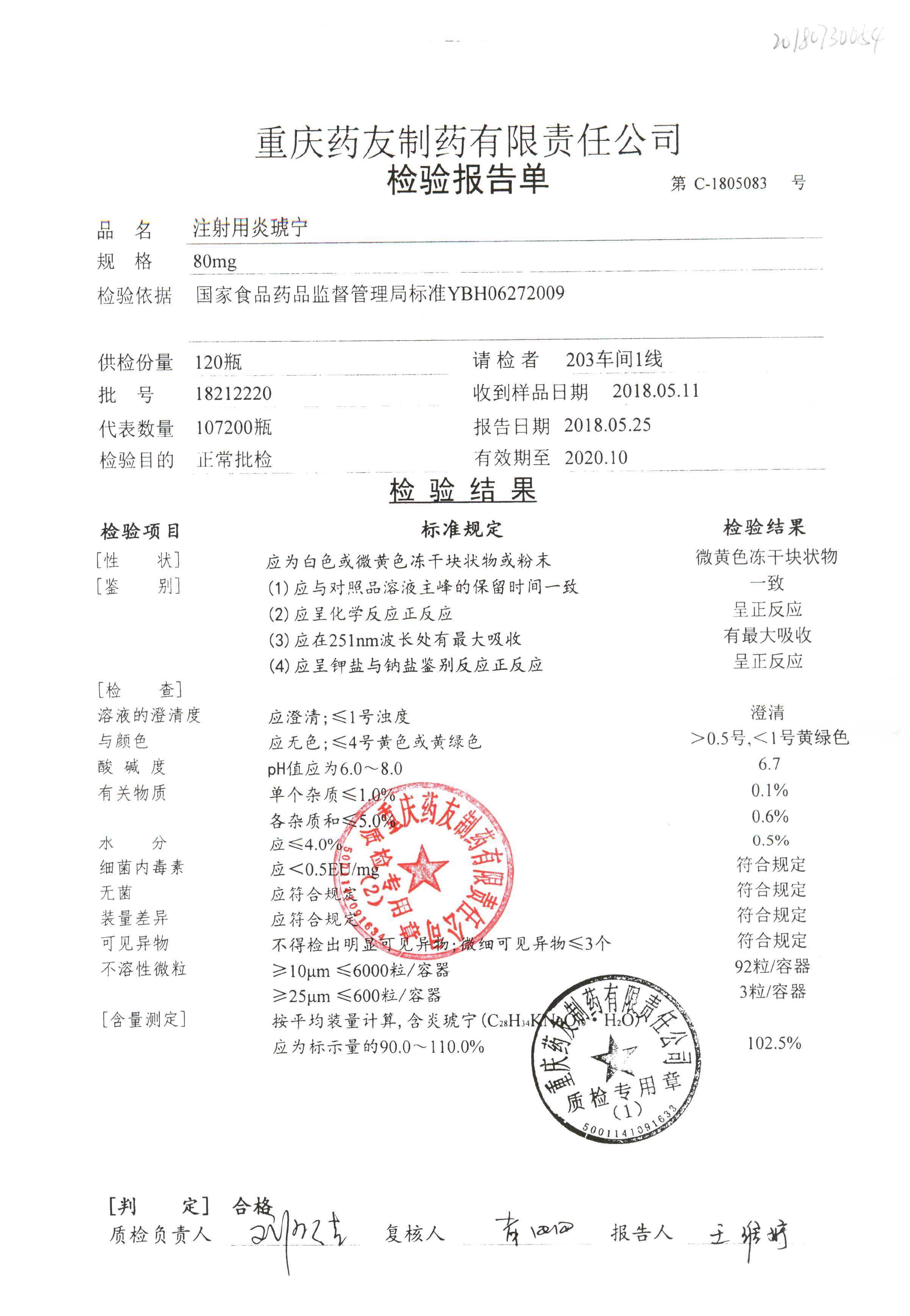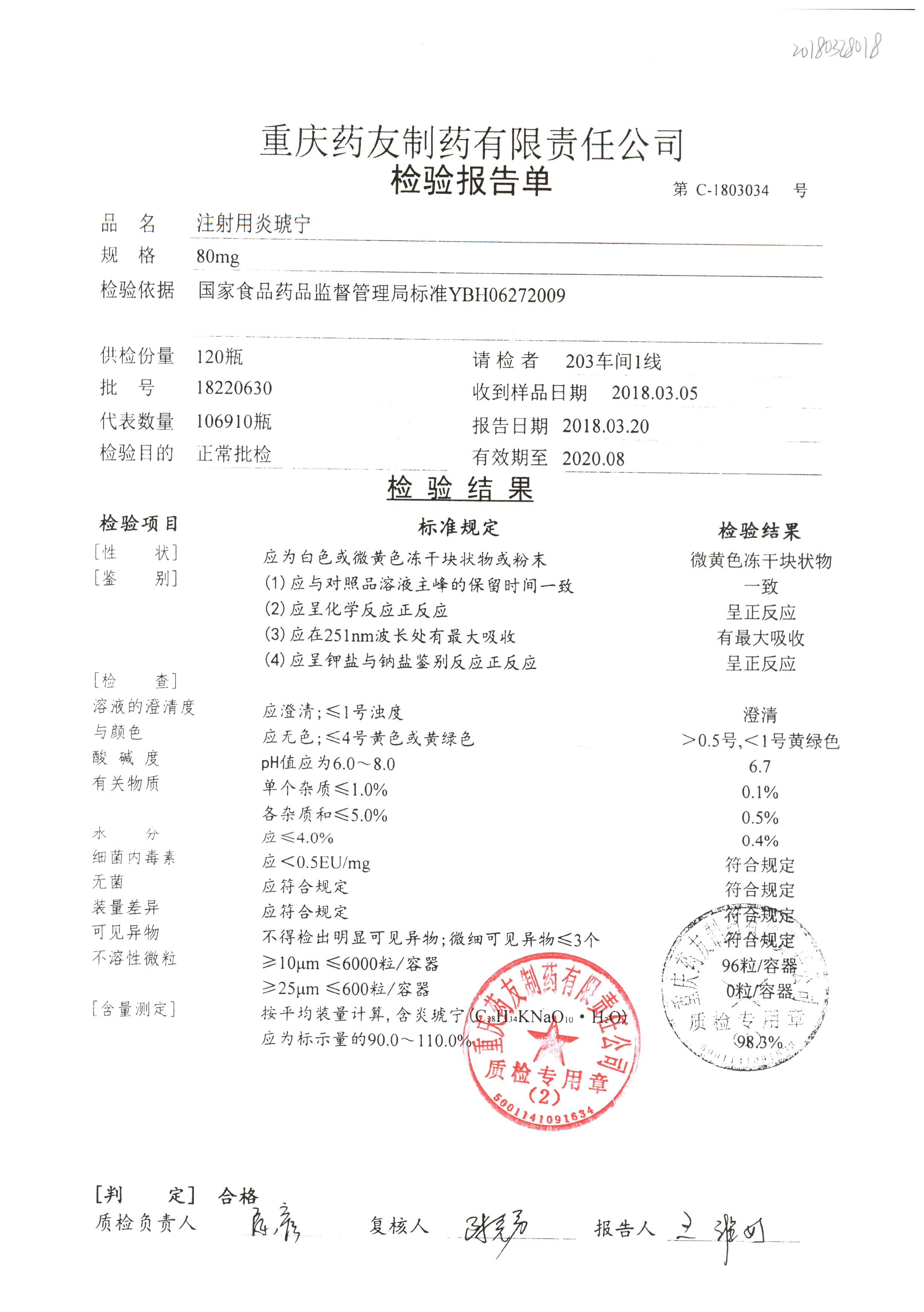 | 名稱 | 規(guī)格 | 批號(hào) | 藥檢報(bào)告 |