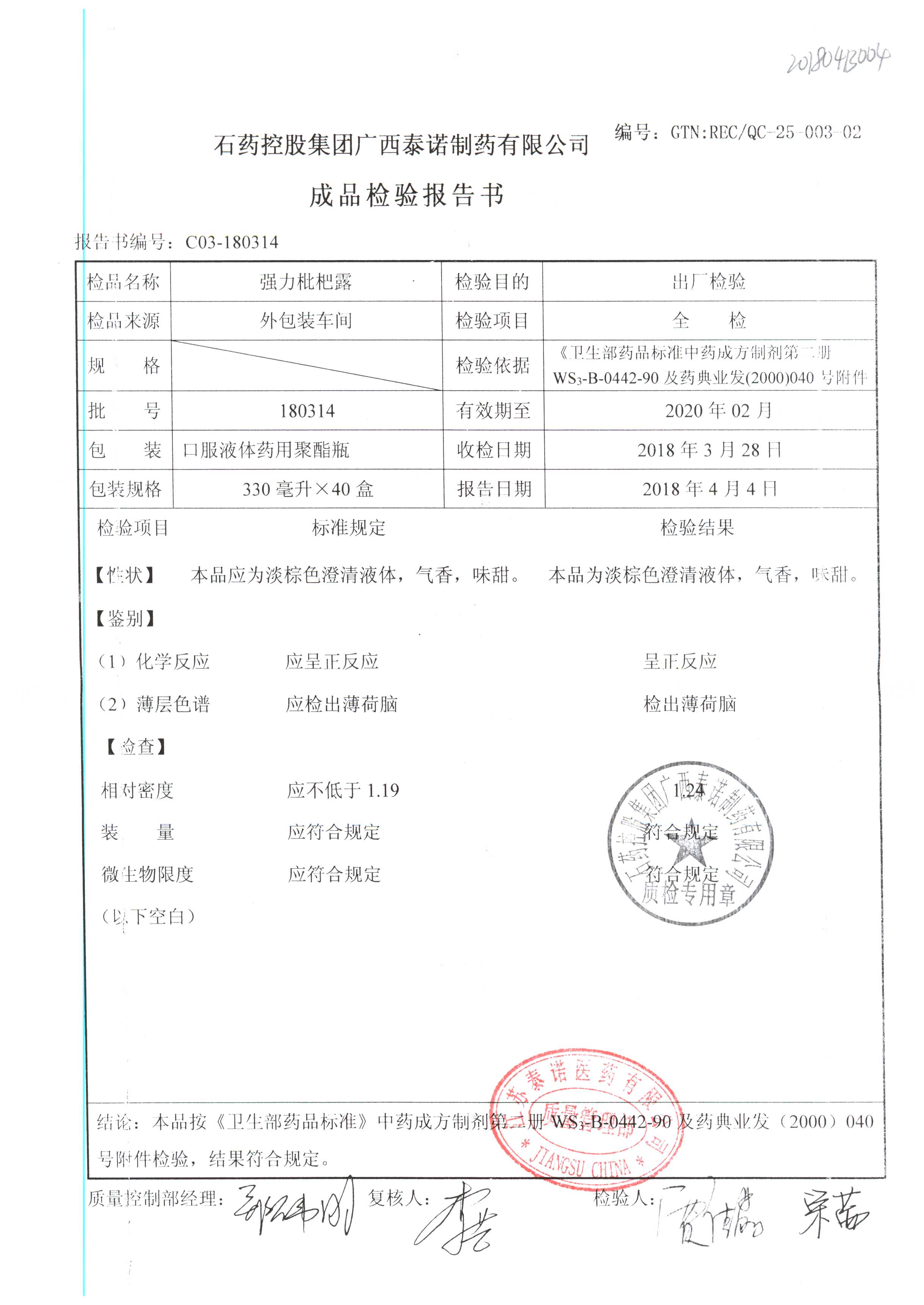 名稱 規(guī)格 批號 藥檢報告