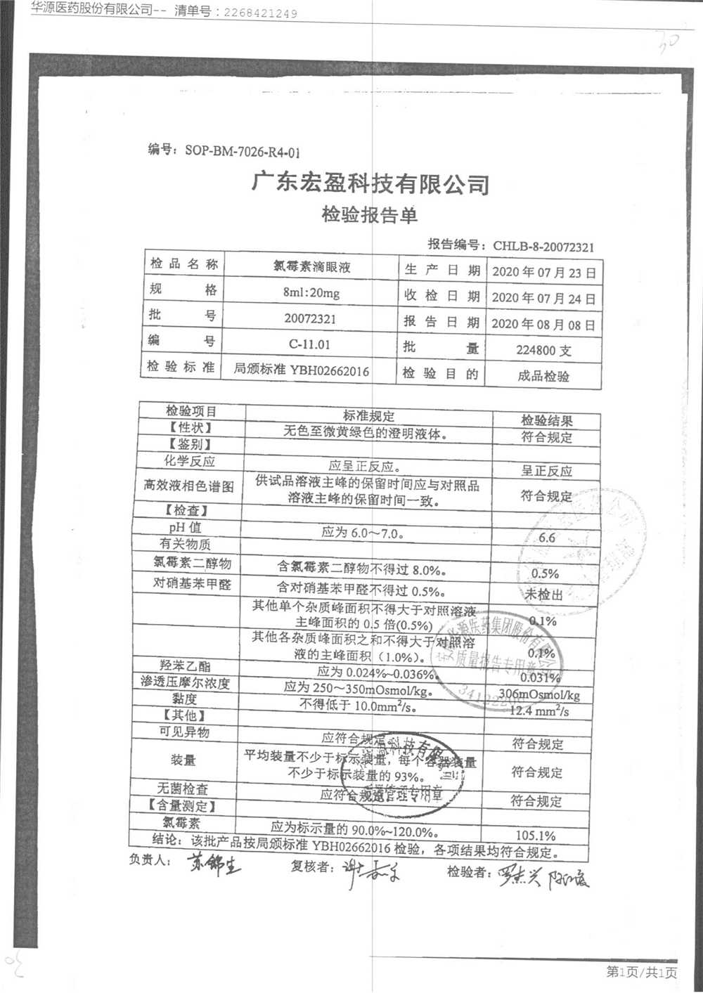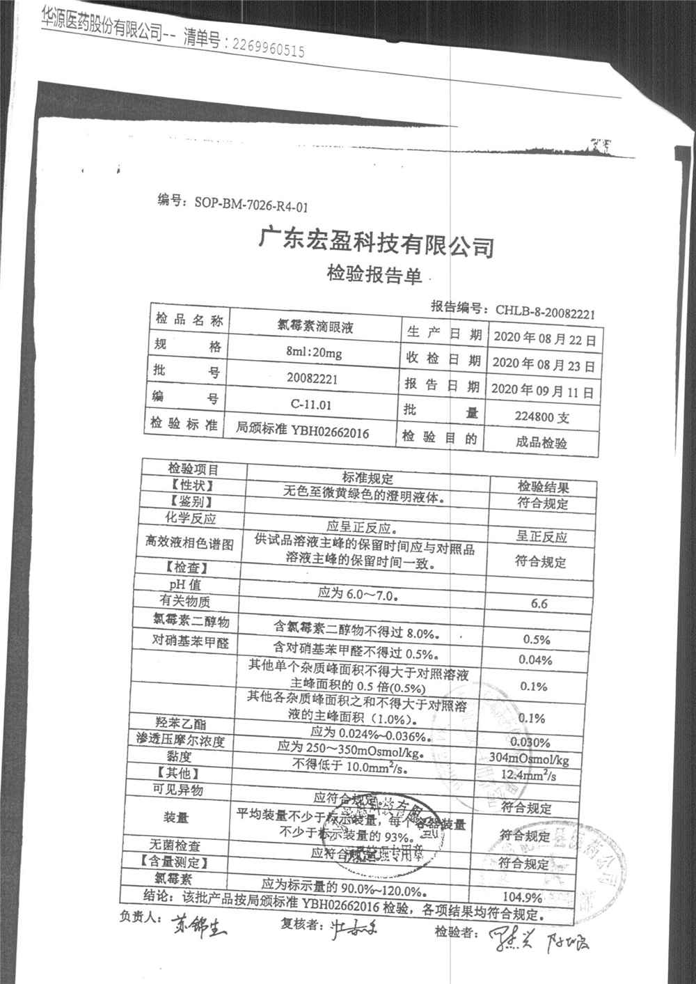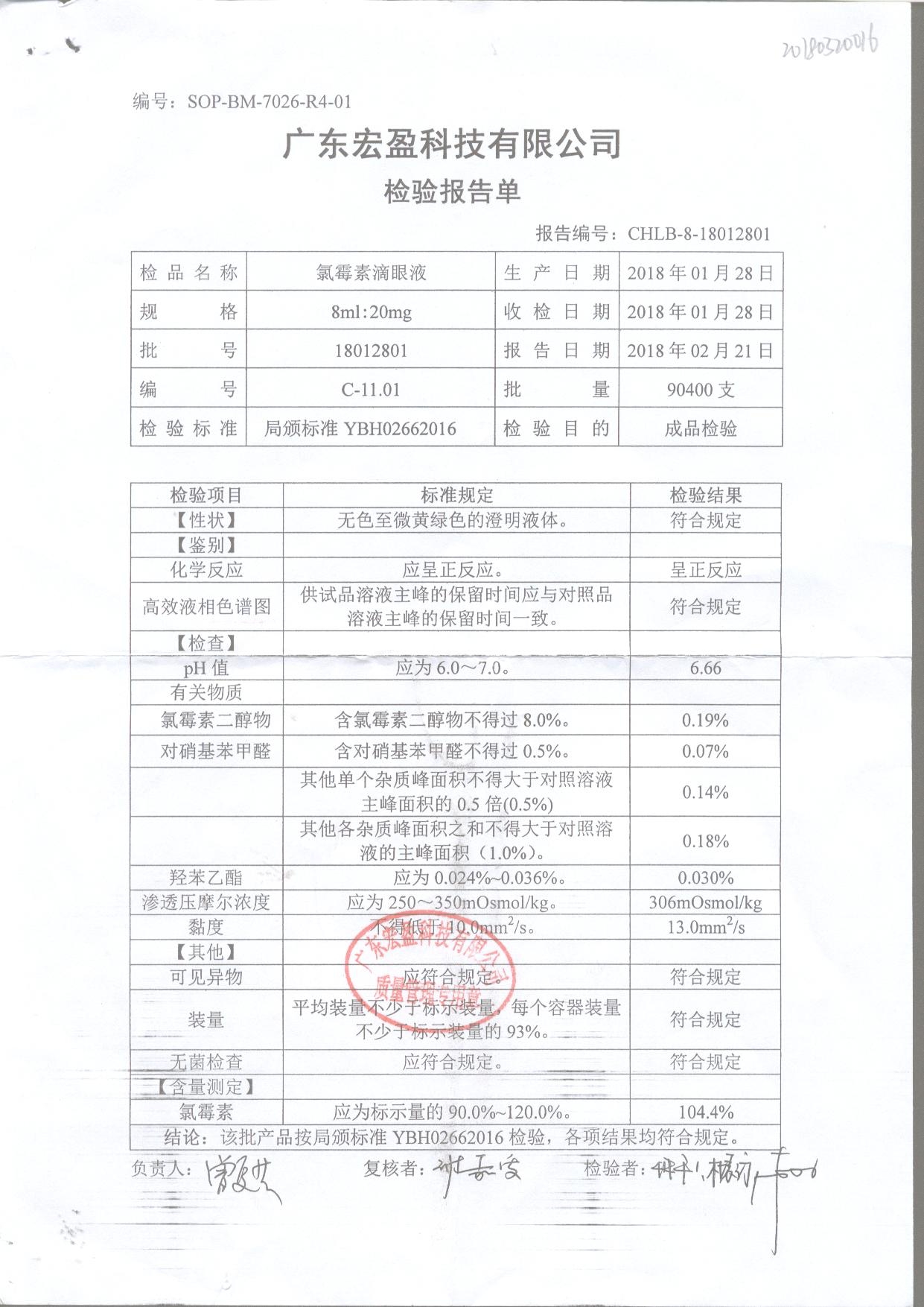 | 氯霉素滴眼液 | 8ml:20mg | 18012801 | 查看詳情 |