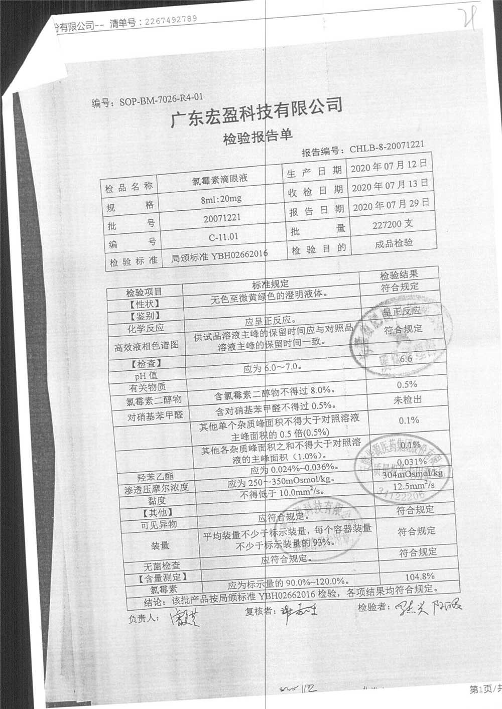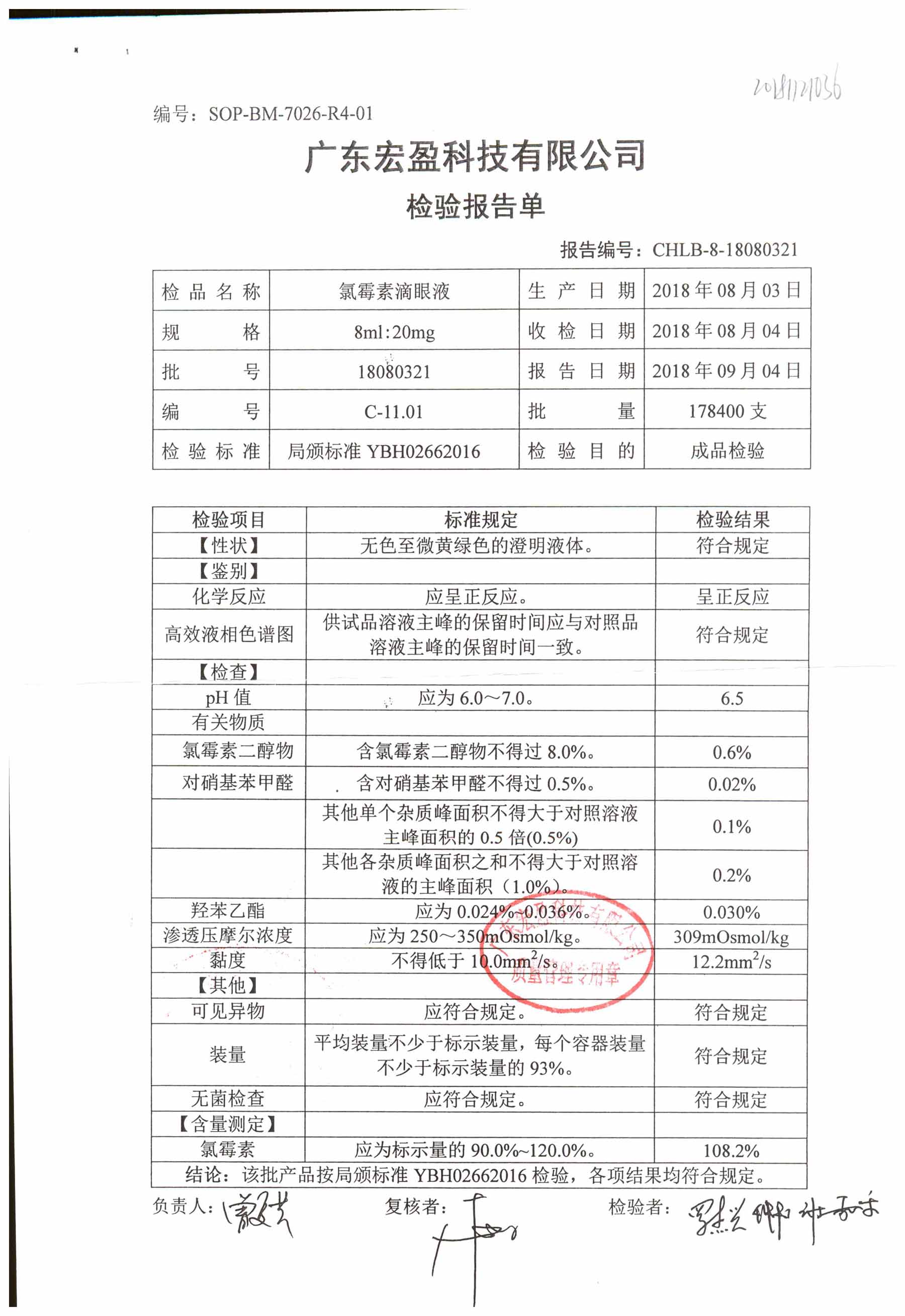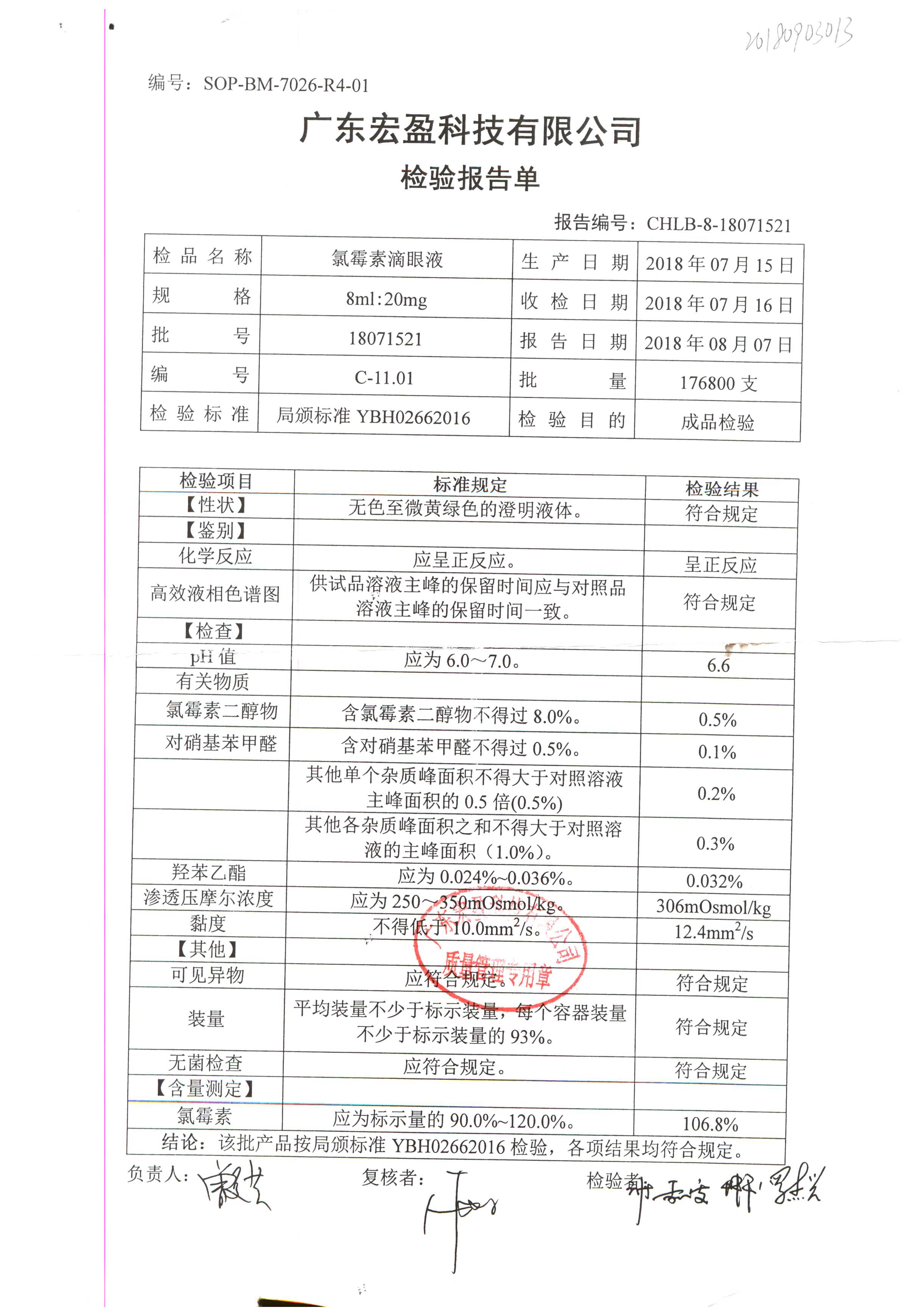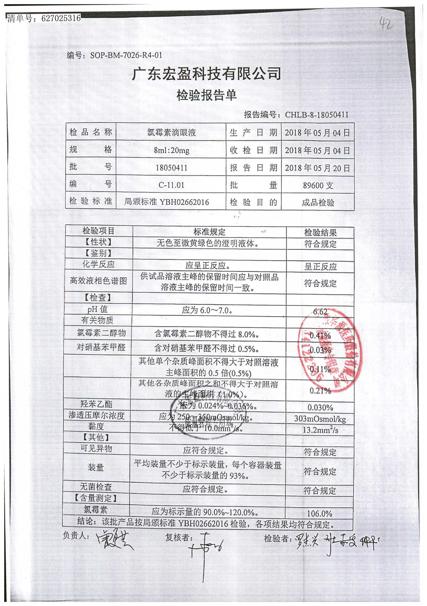 | 氯霉素滴眼液 | 8ml:20mg | 18012801 | 查看詳情 |