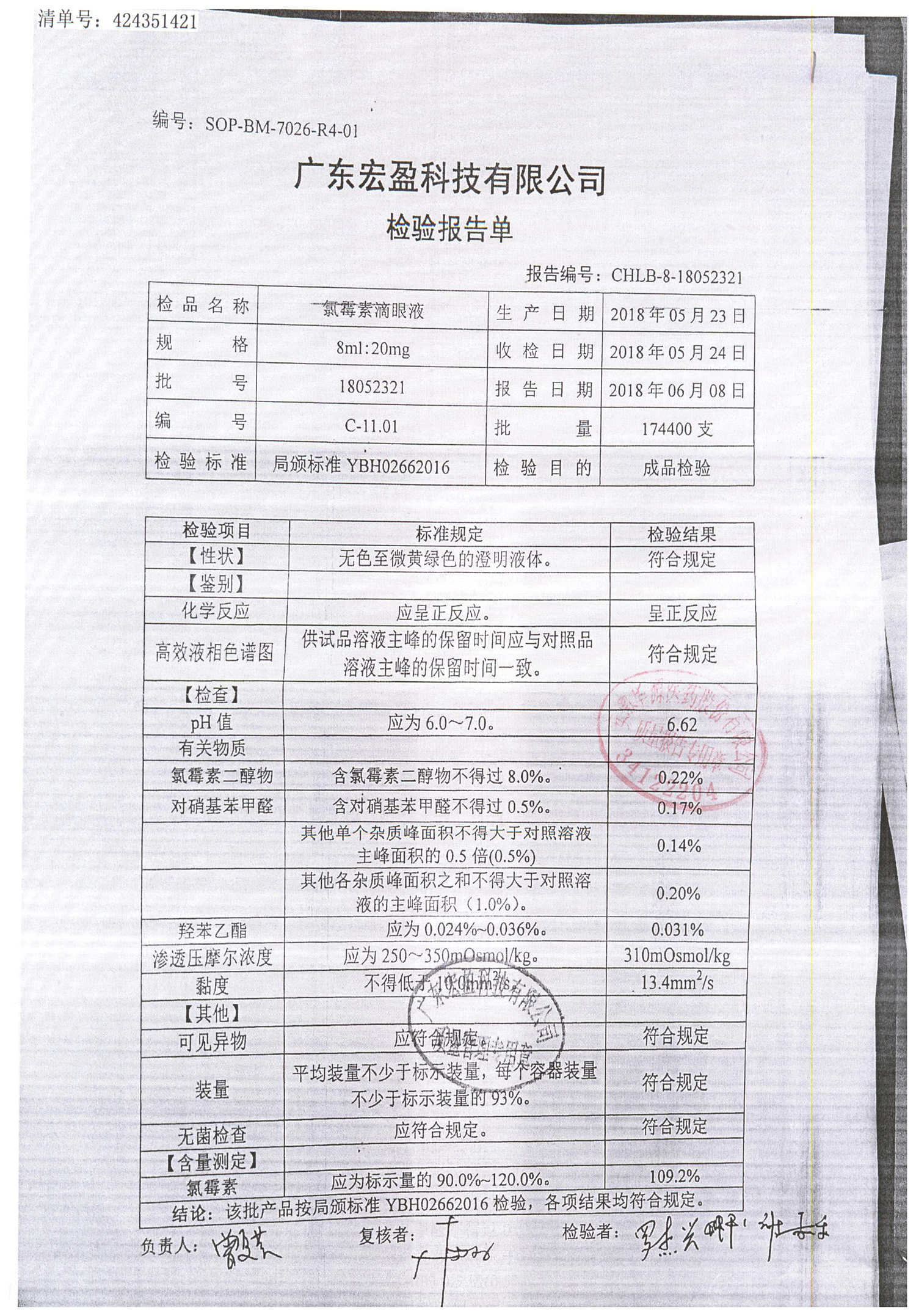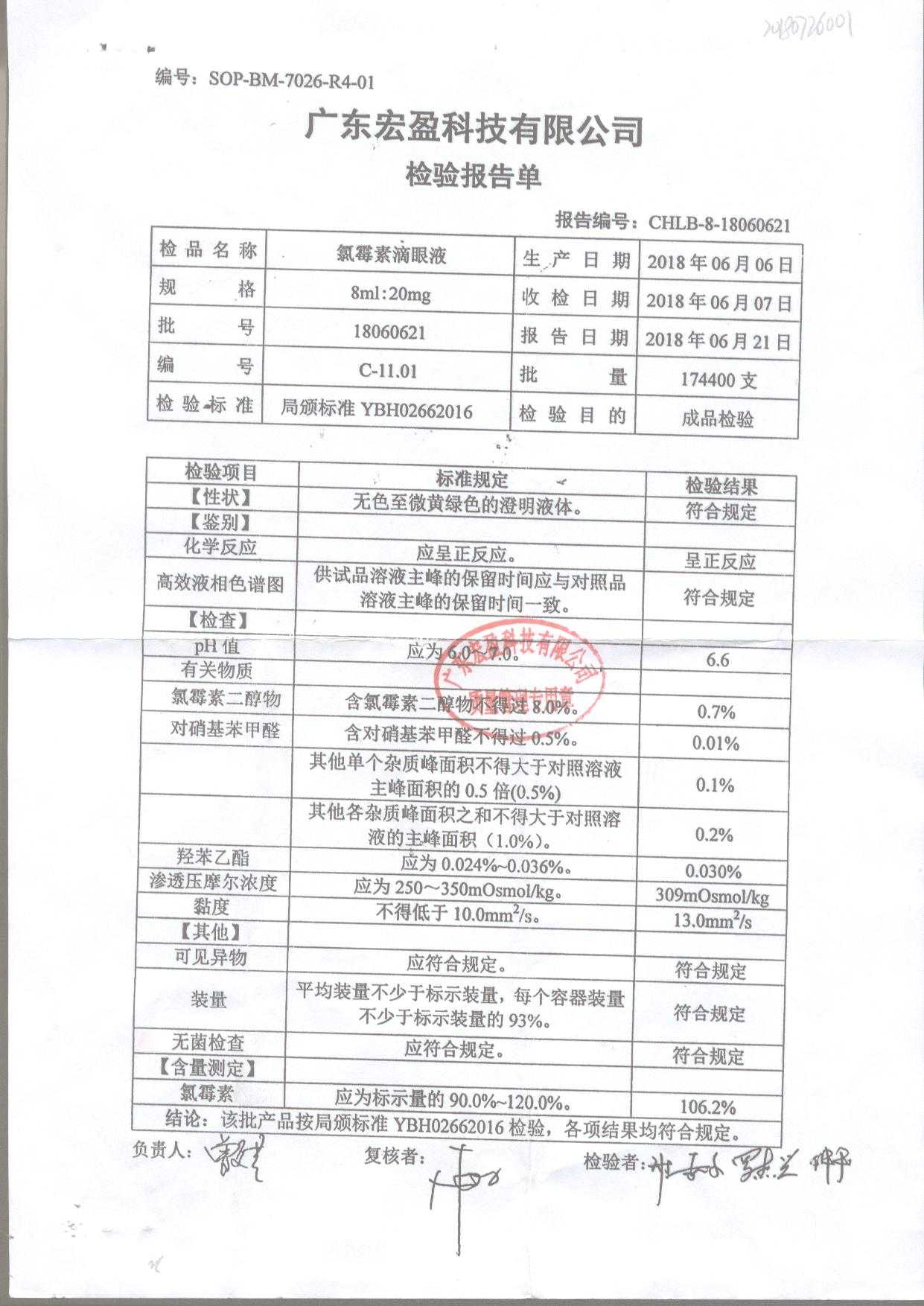| 氯霉素滴眼液 | 8ml:20mg | 18060621 | 查看詳情 |