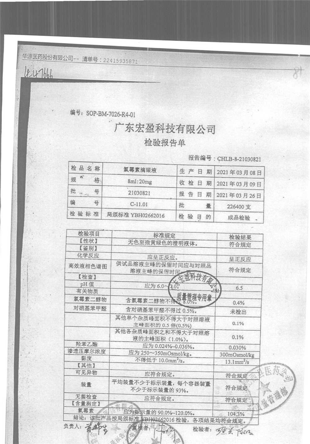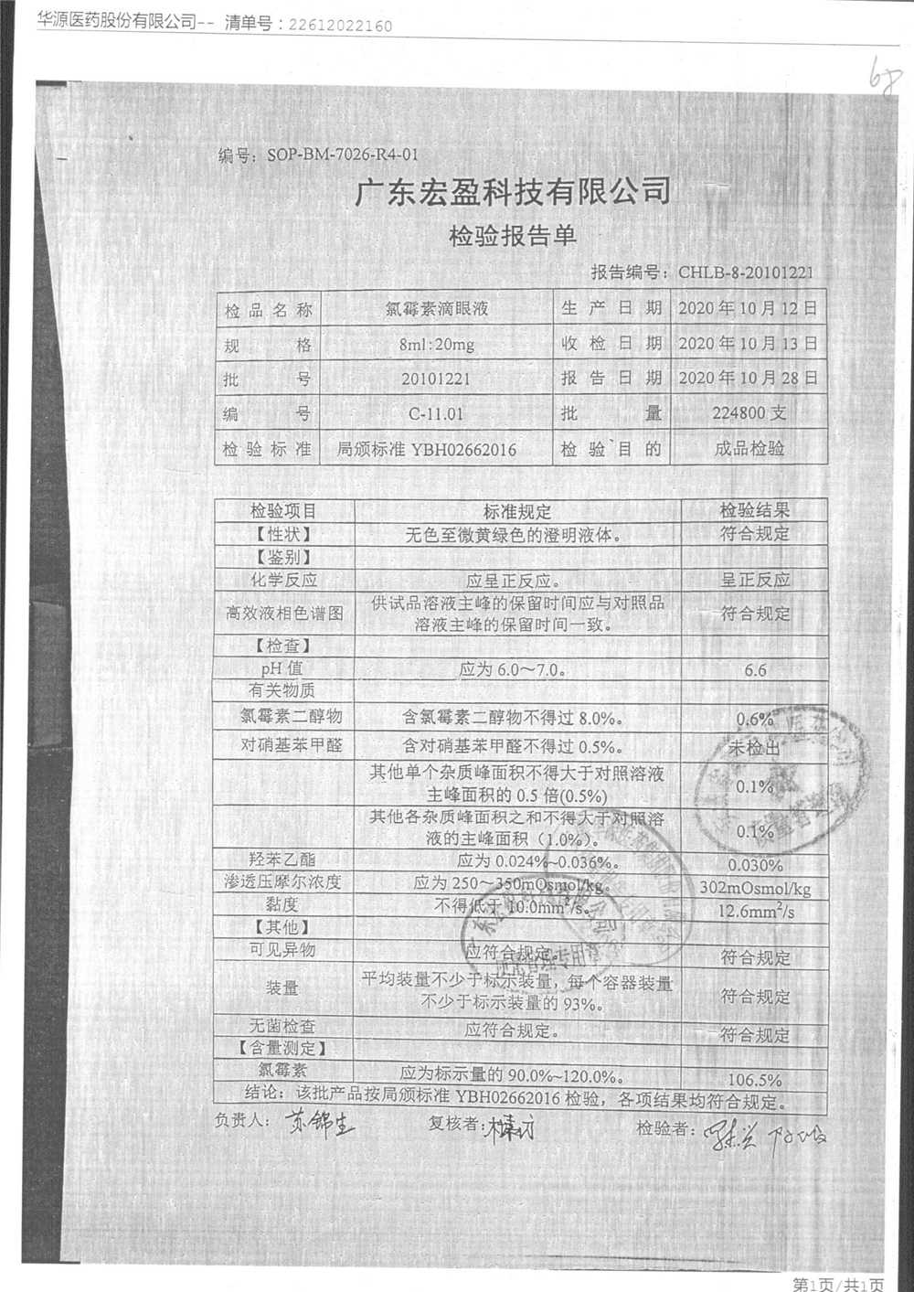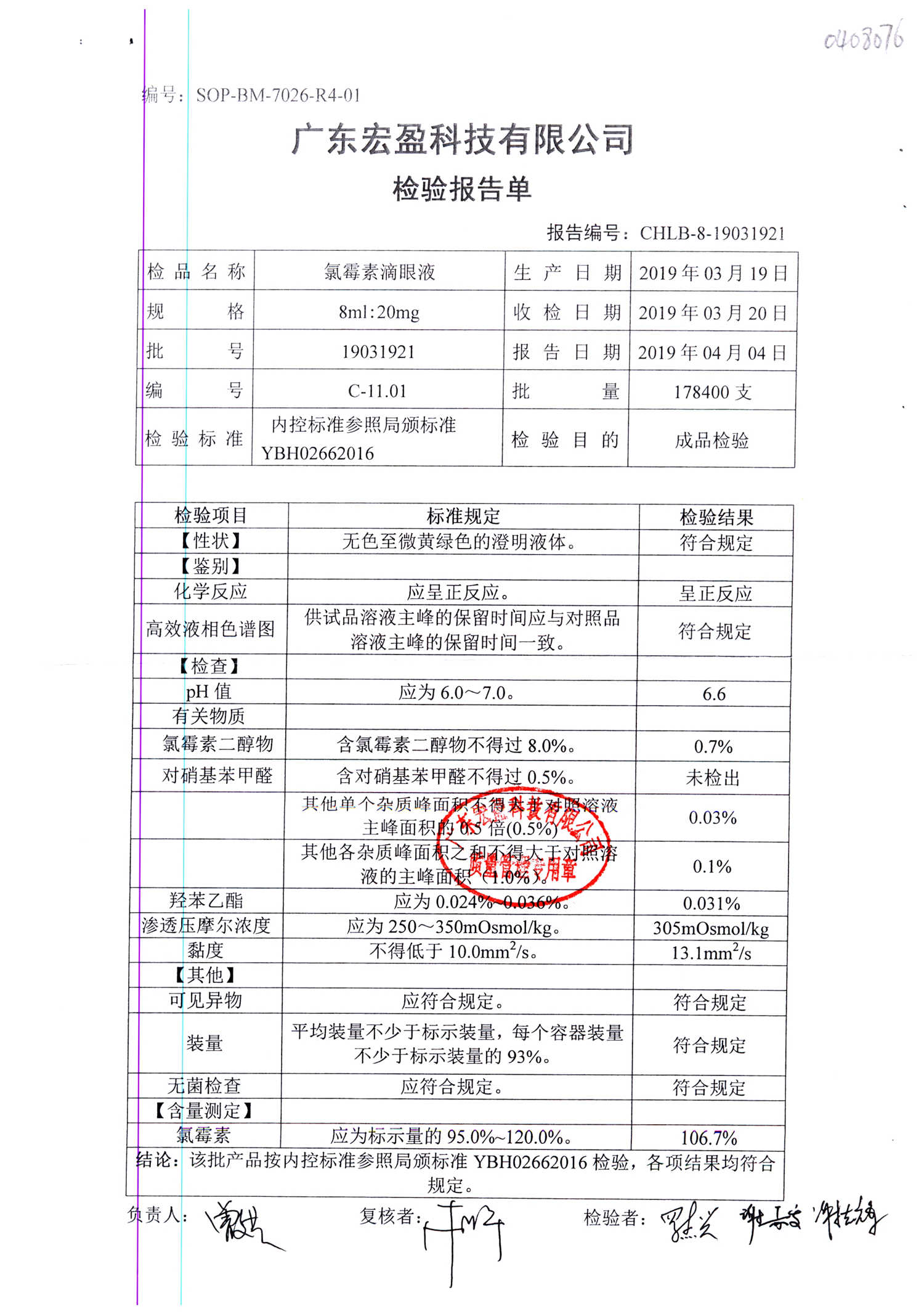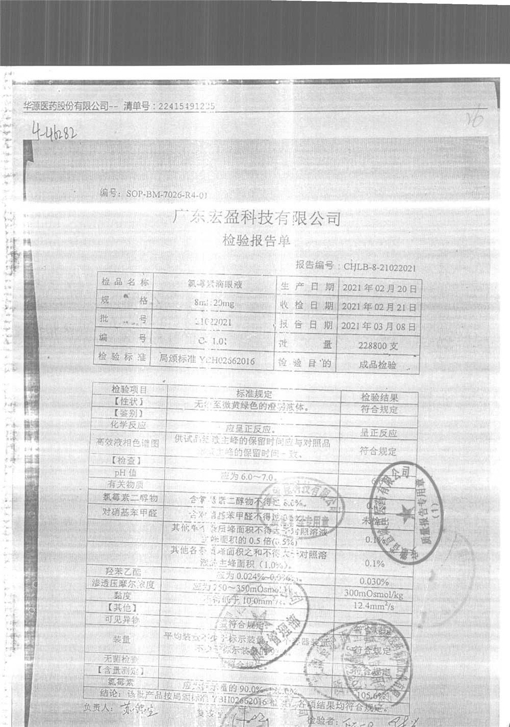 | 氯霉素滴眼液 | 8ml:20mg | 19010221 | 查看詳情 |