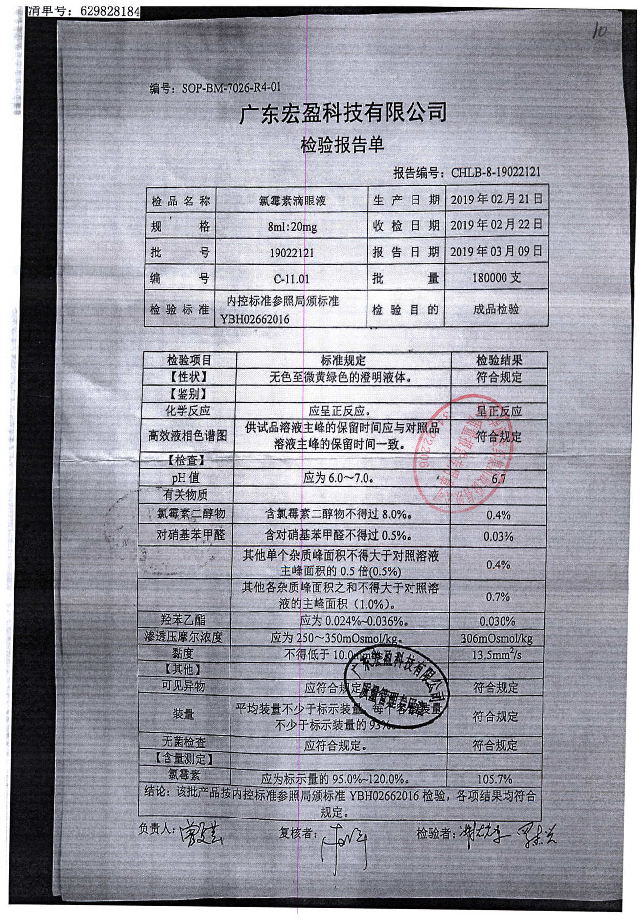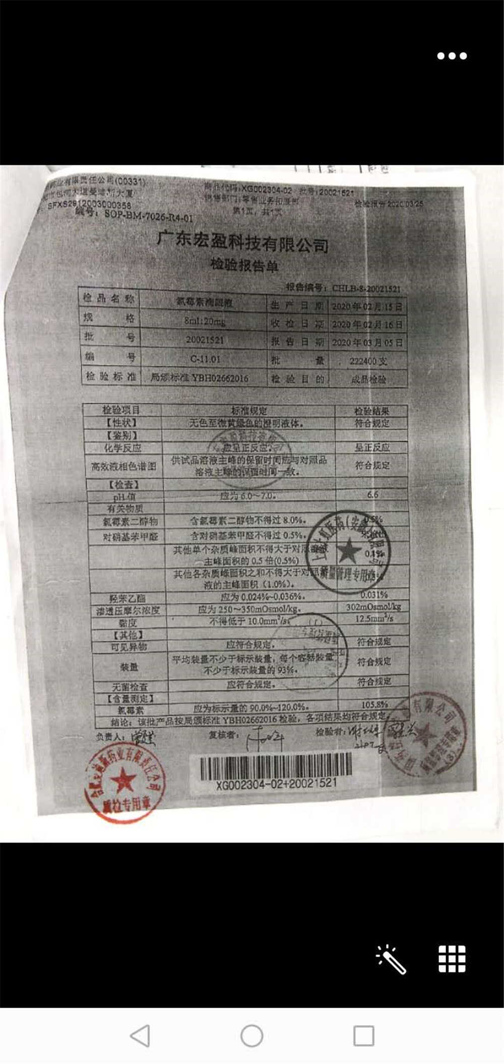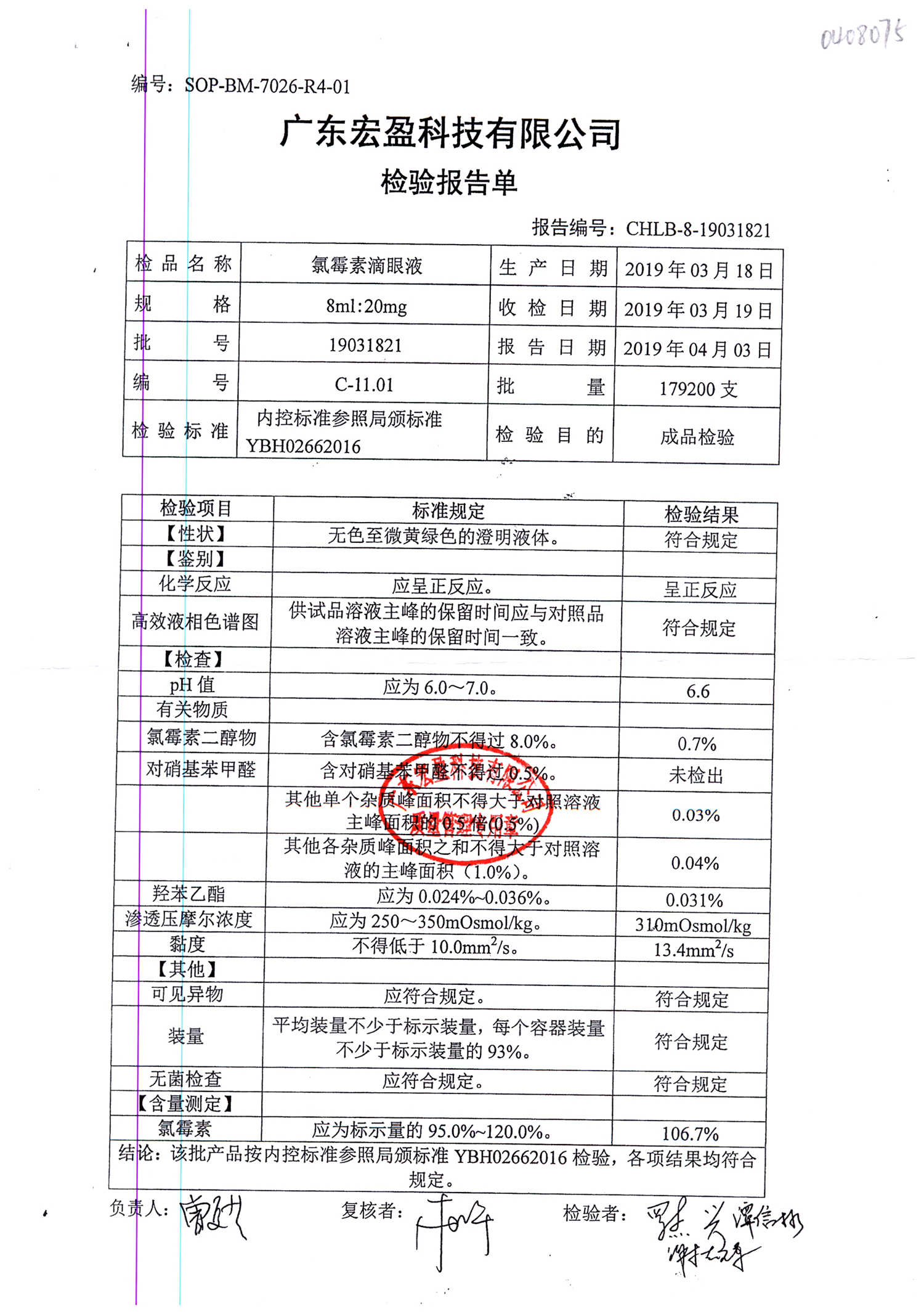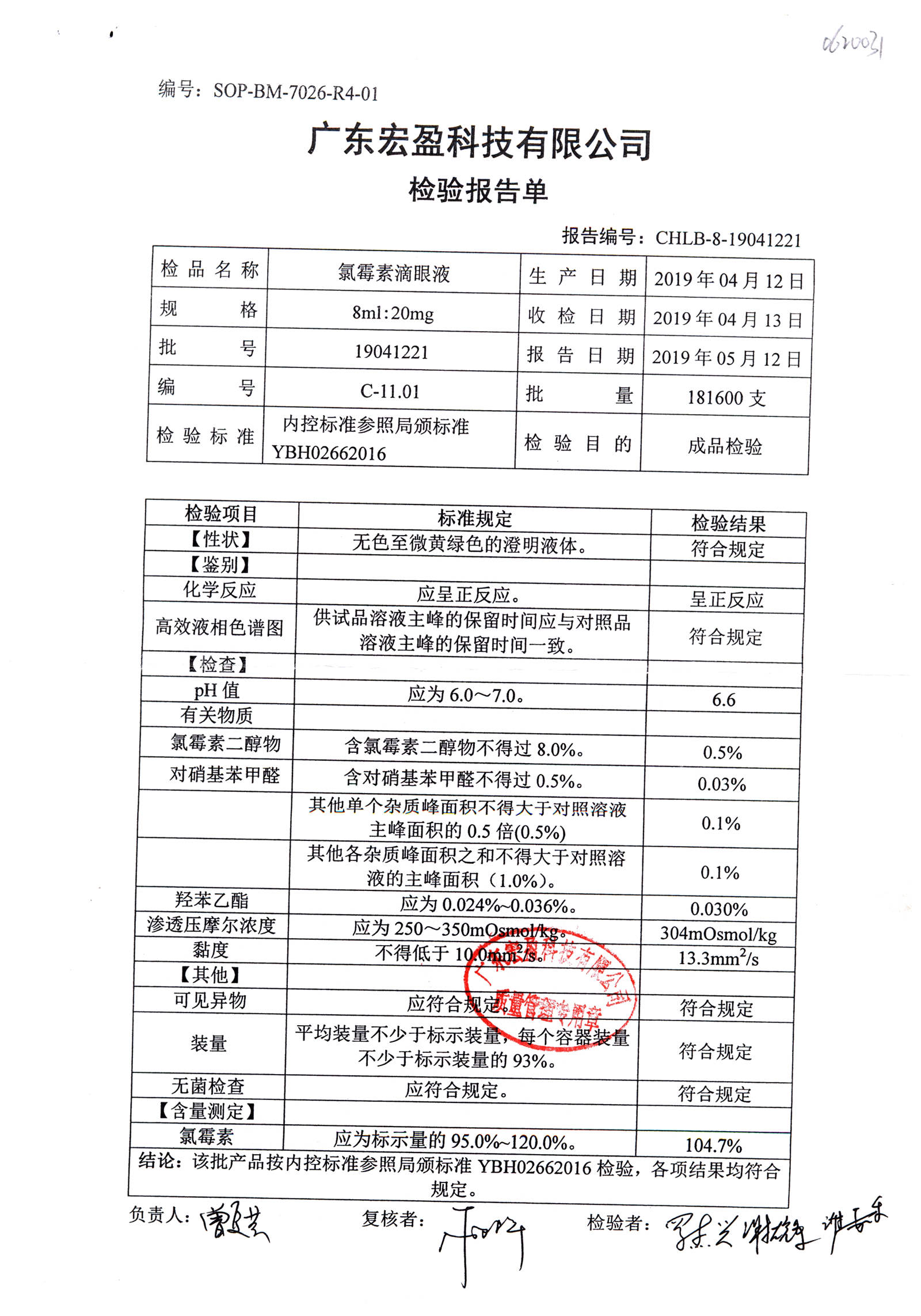 | 氯霉素滴眼液 | 8ml:20mg | 19010221 | 查看詳情 |