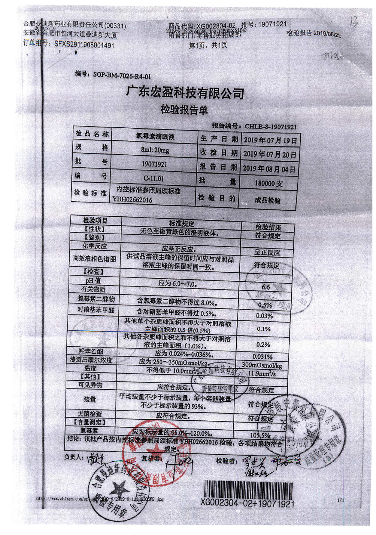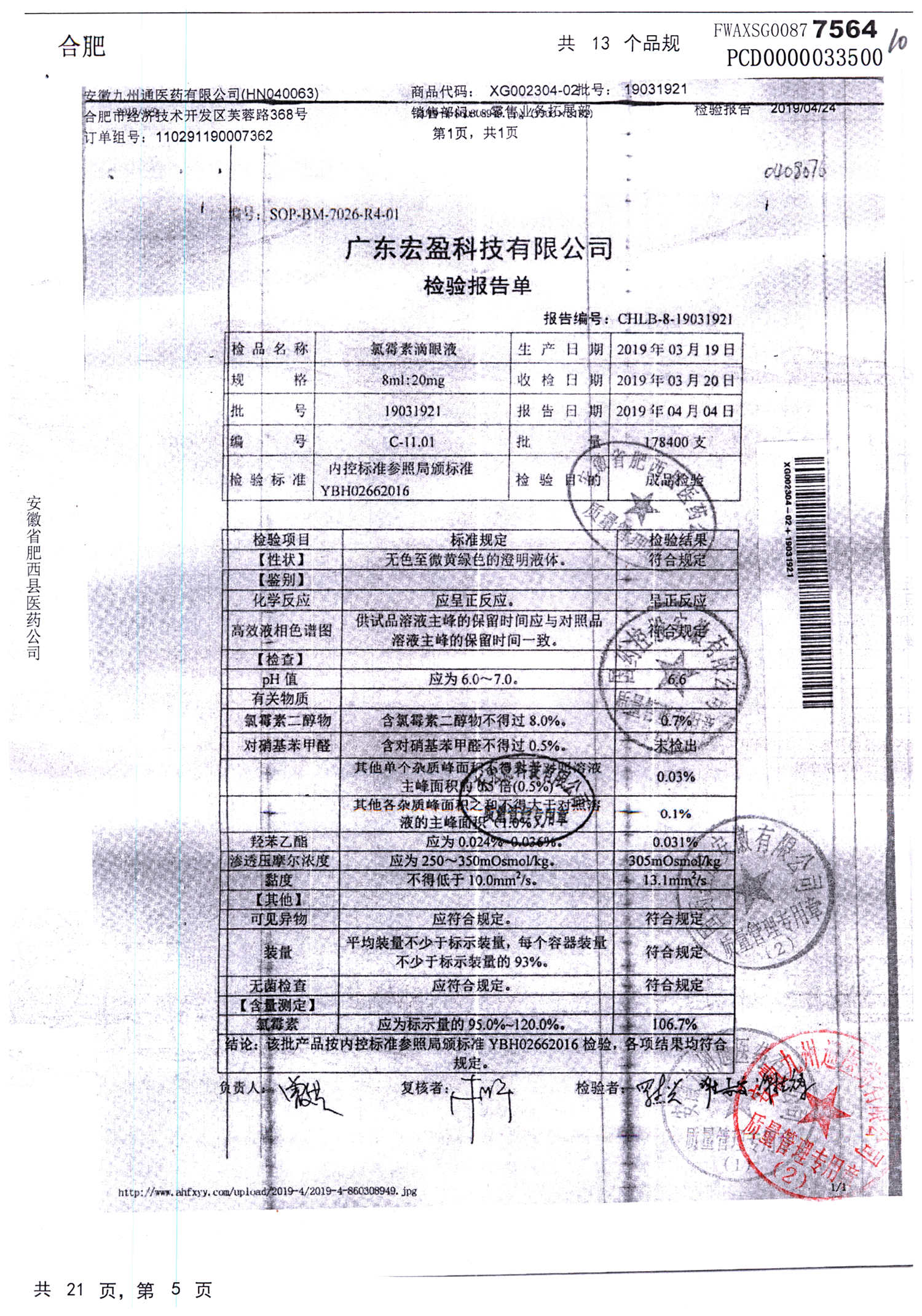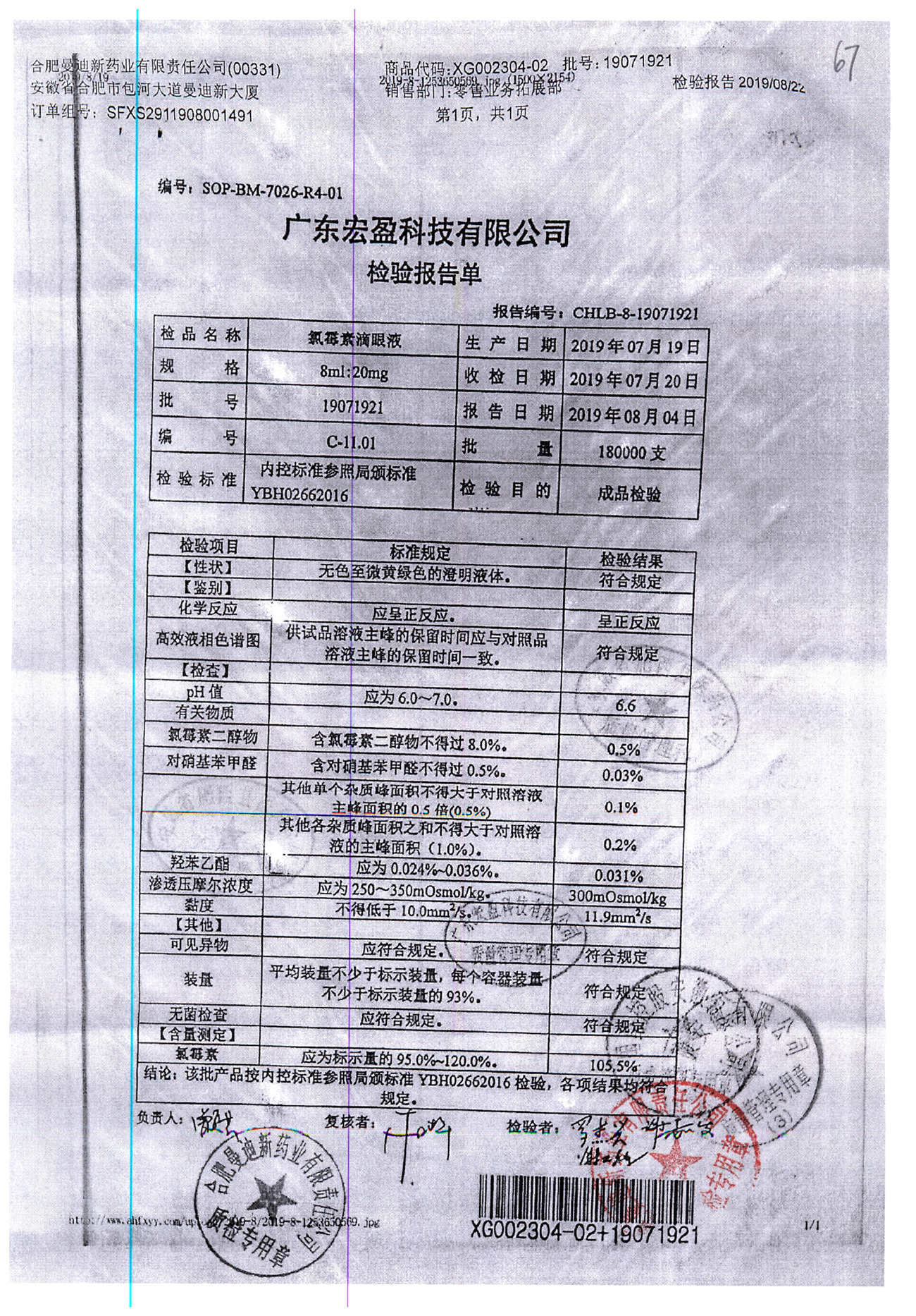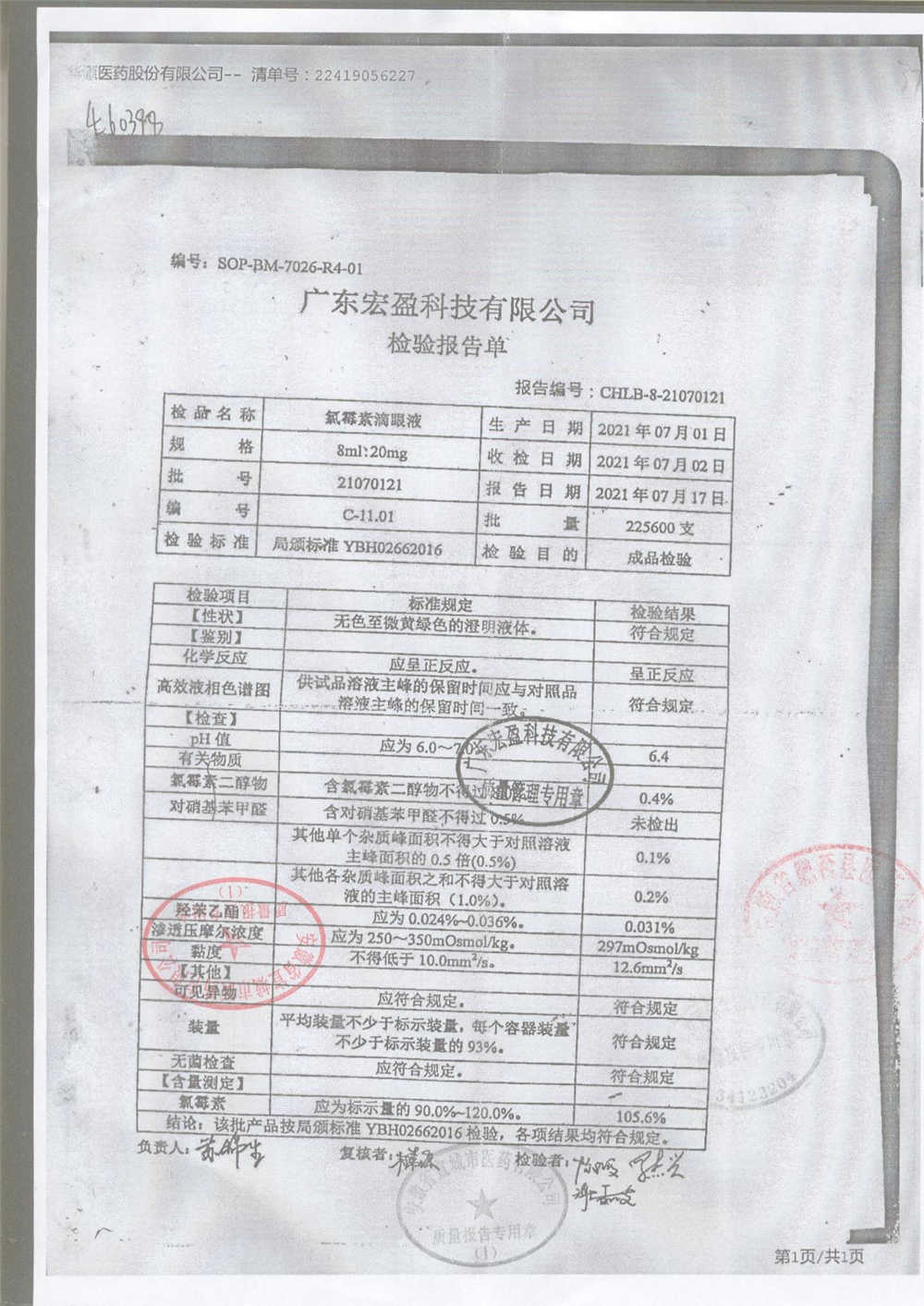 | 氯霉素滴眼液 | 8ml:20mg | 19010221 | 查看詳情 |