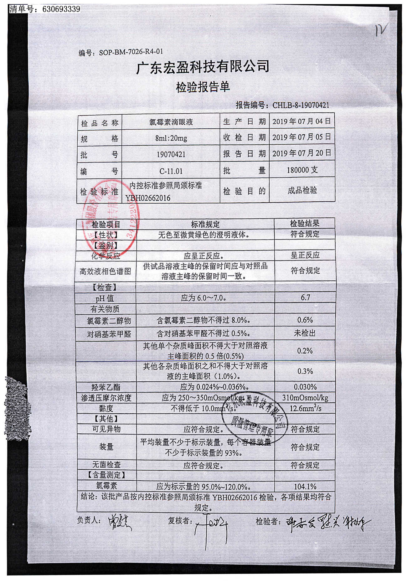 | 氯霉素滴眼液 | 8ml:20mg | 19070421 | 查看詳情 |