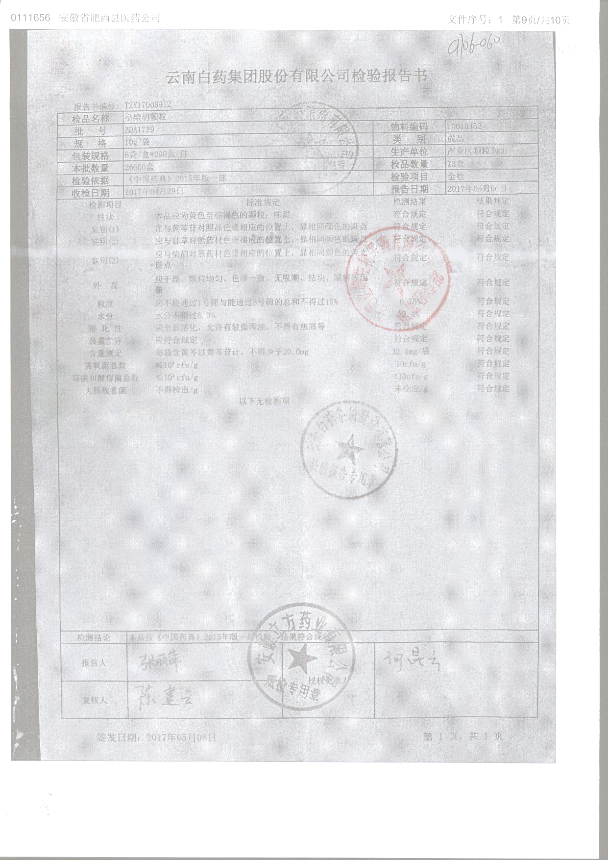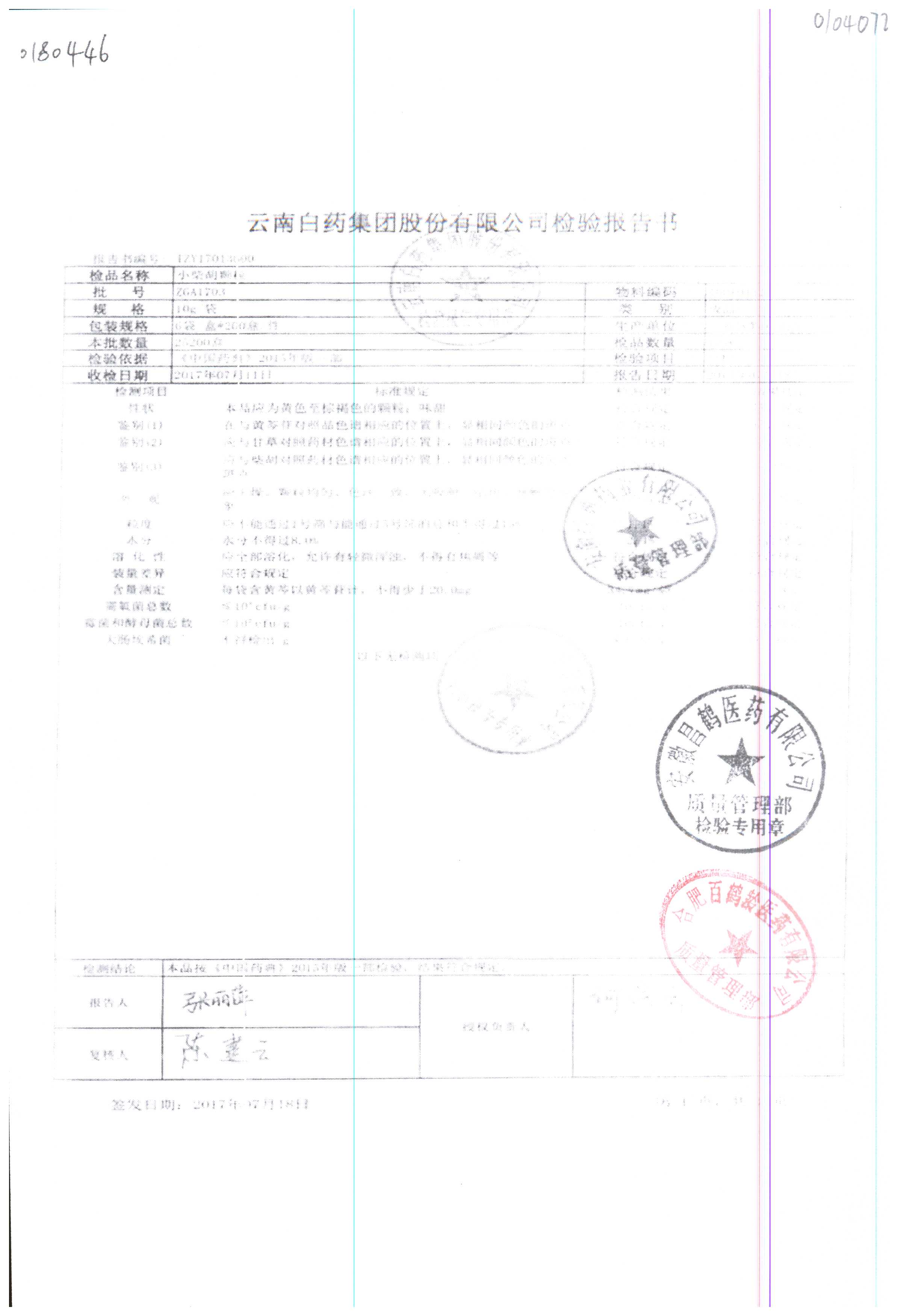 | 名稱 | 規(guī)格 | 批號 | 藥檢報(bào)告 |