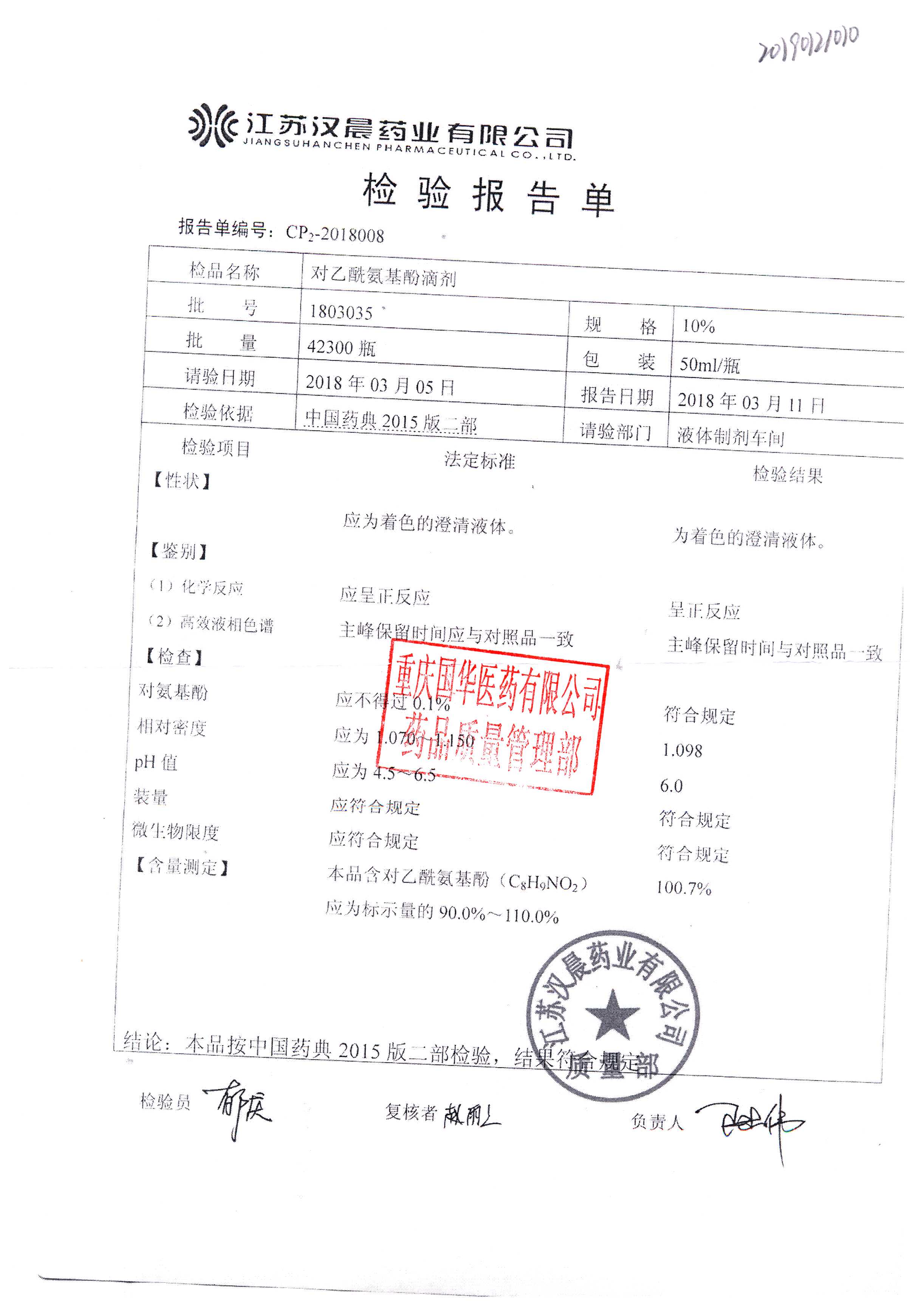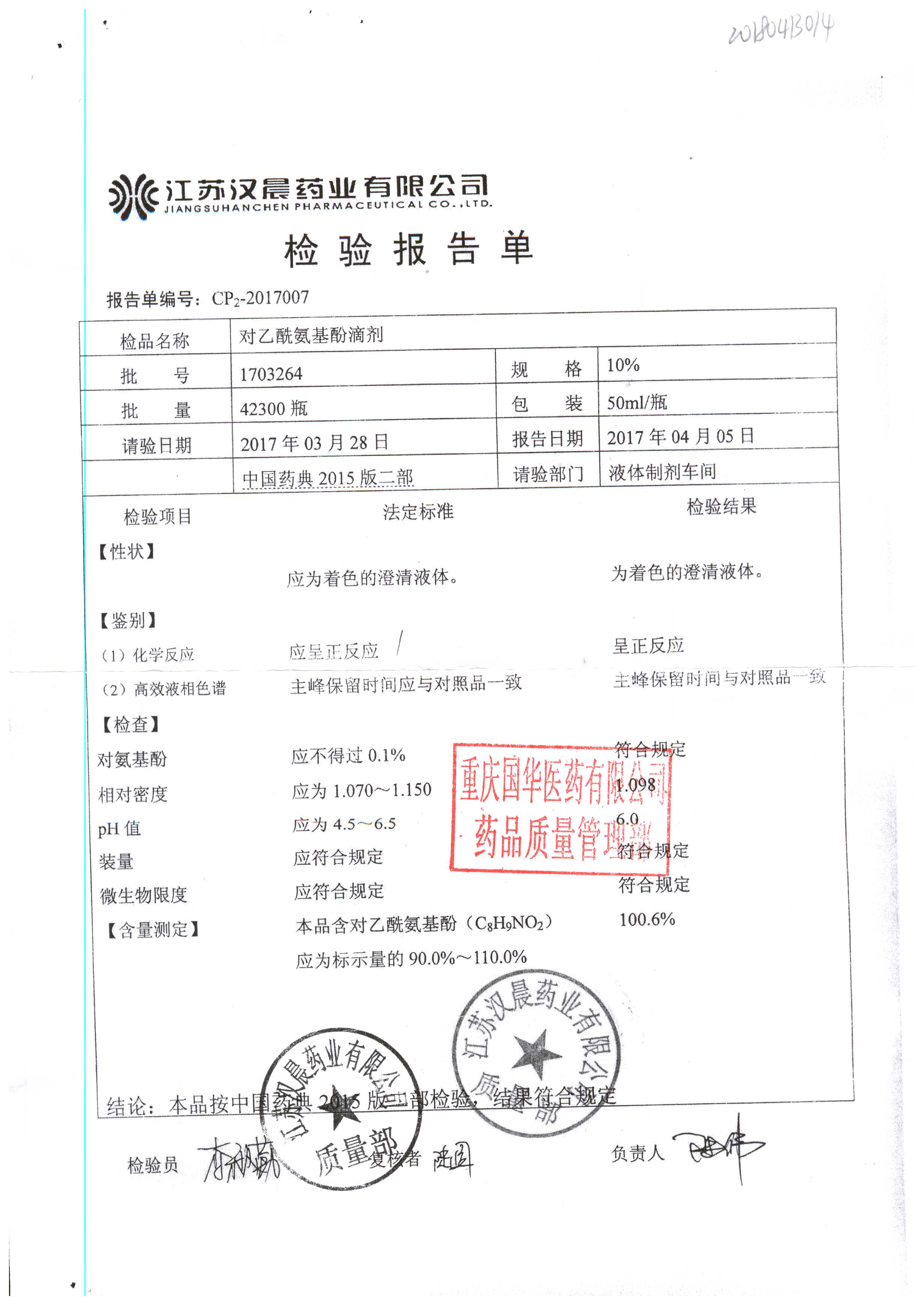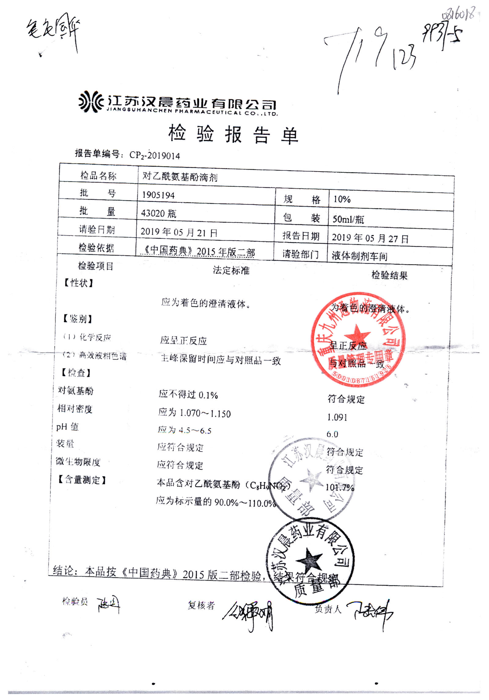 | 對乙酰氨基酚滴劑 | 50ml | 1803035 | 查看詳情 |