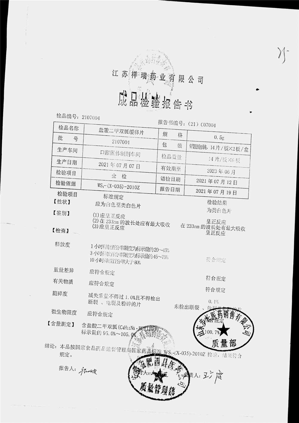 | 名稱 | 規(guī)格 | 批號 | 藥檢報告 |