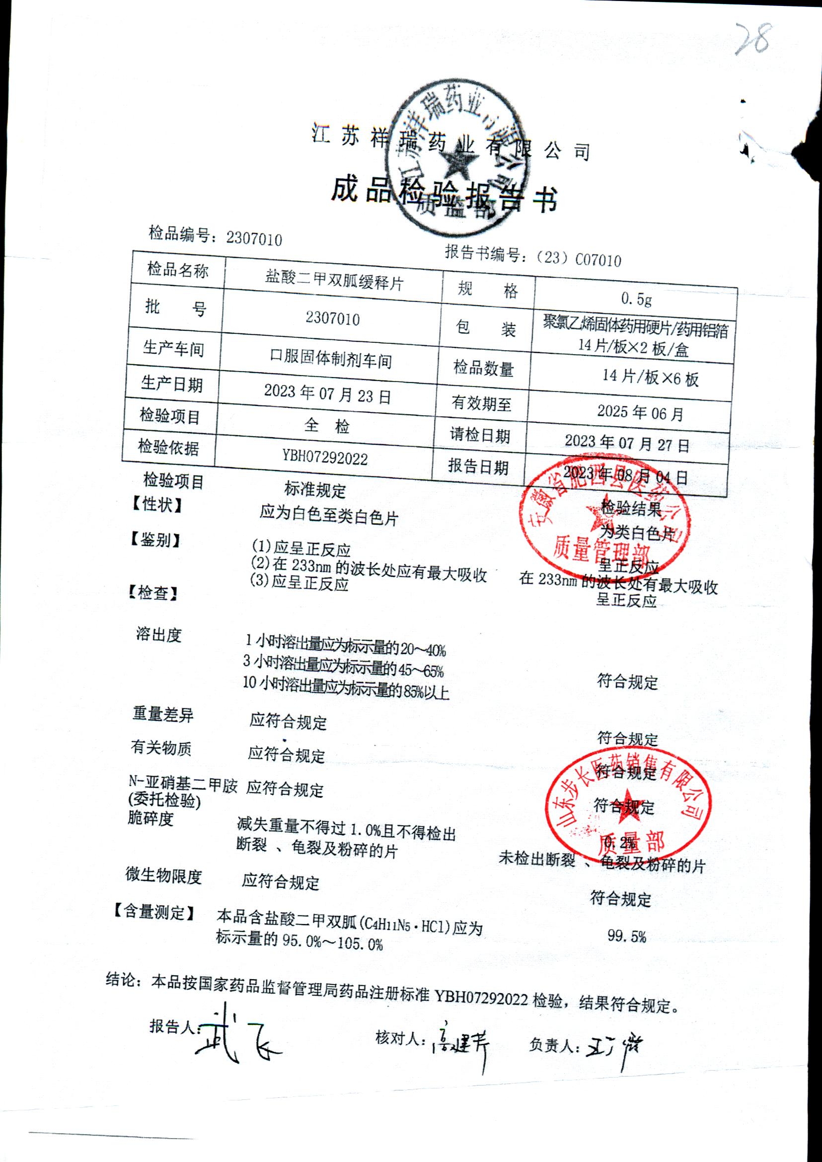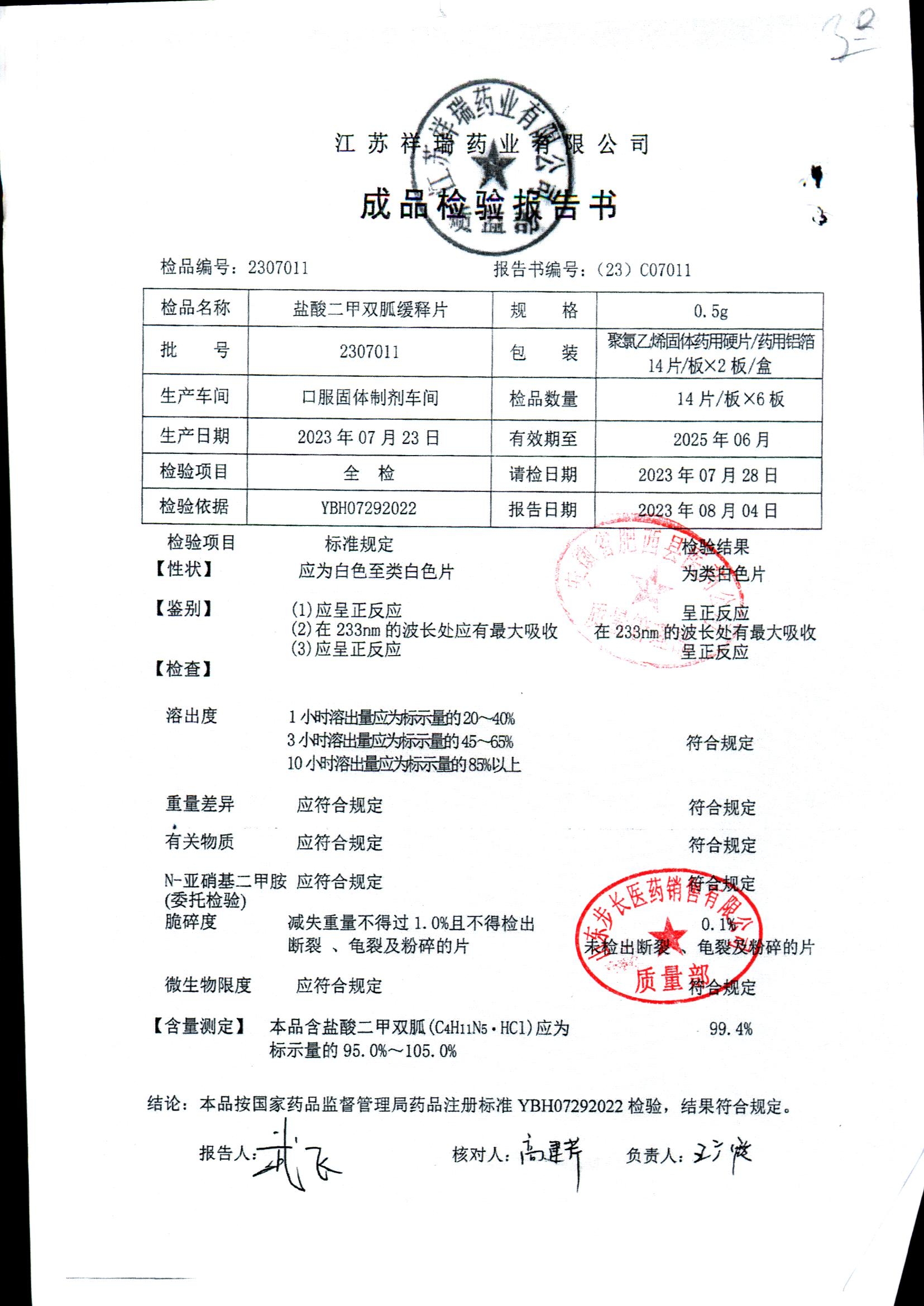 | 鹽酸二甲雙胍緩釋片 | 0.5g*28片 | 2302024 | 查看詳情 |