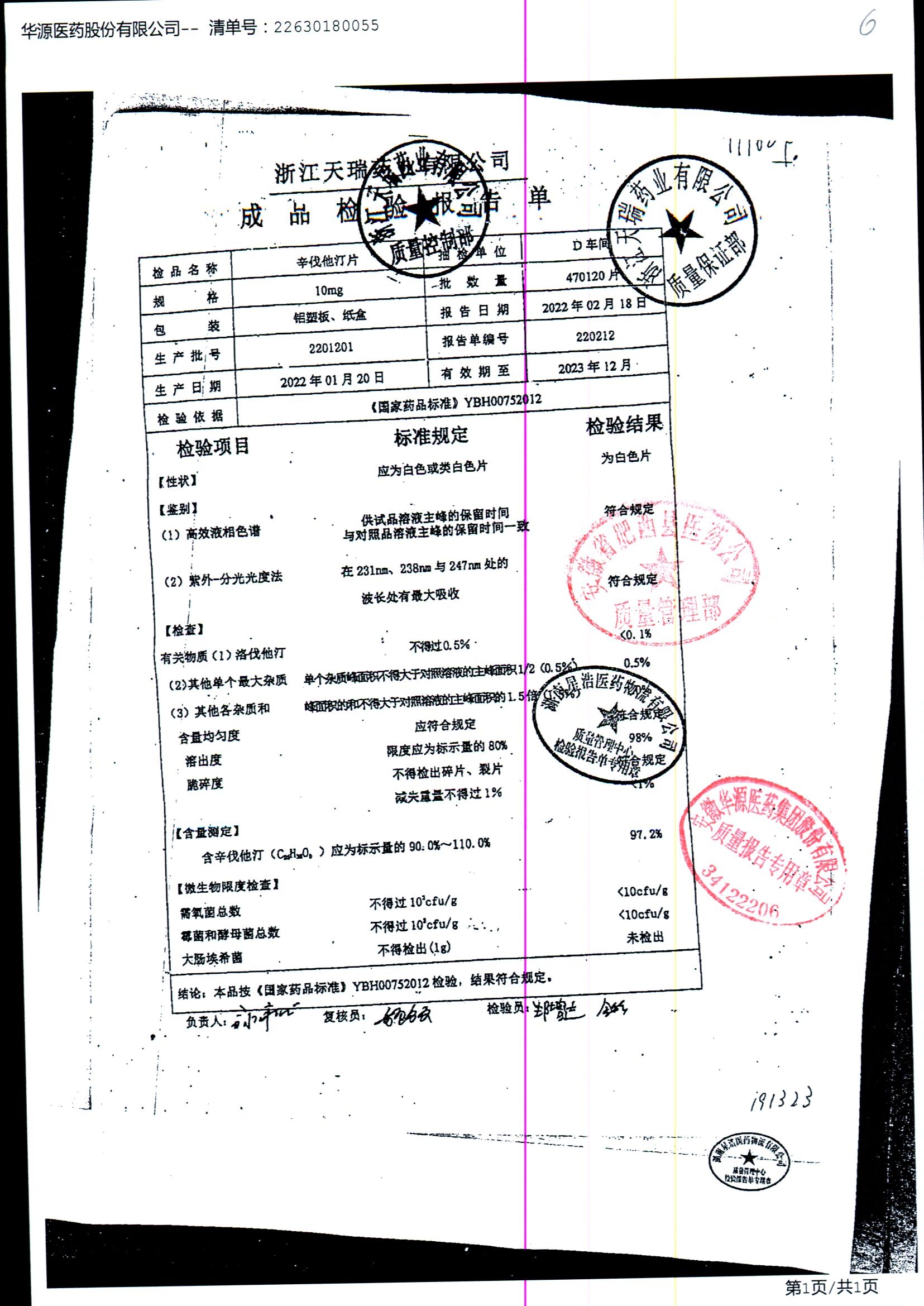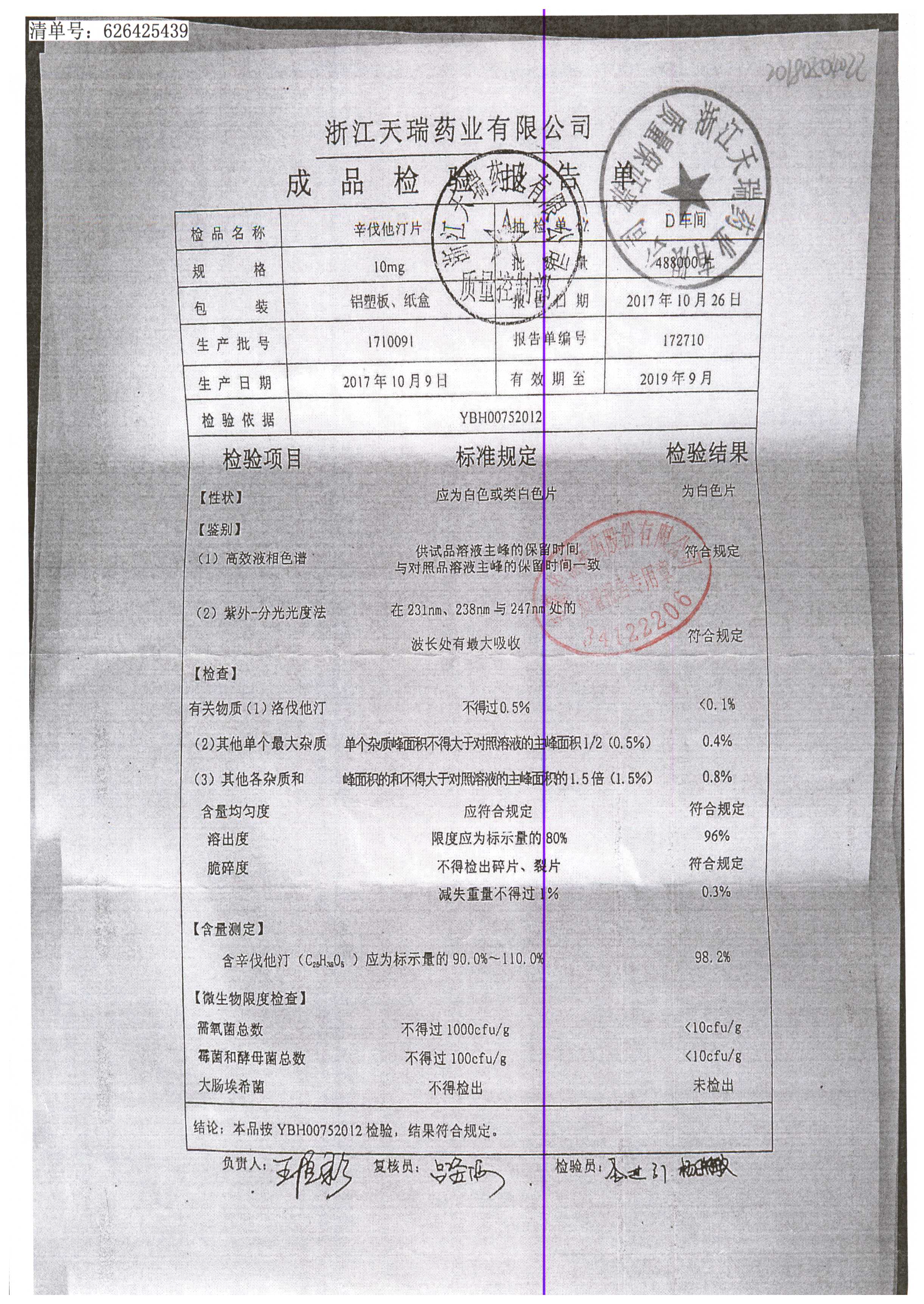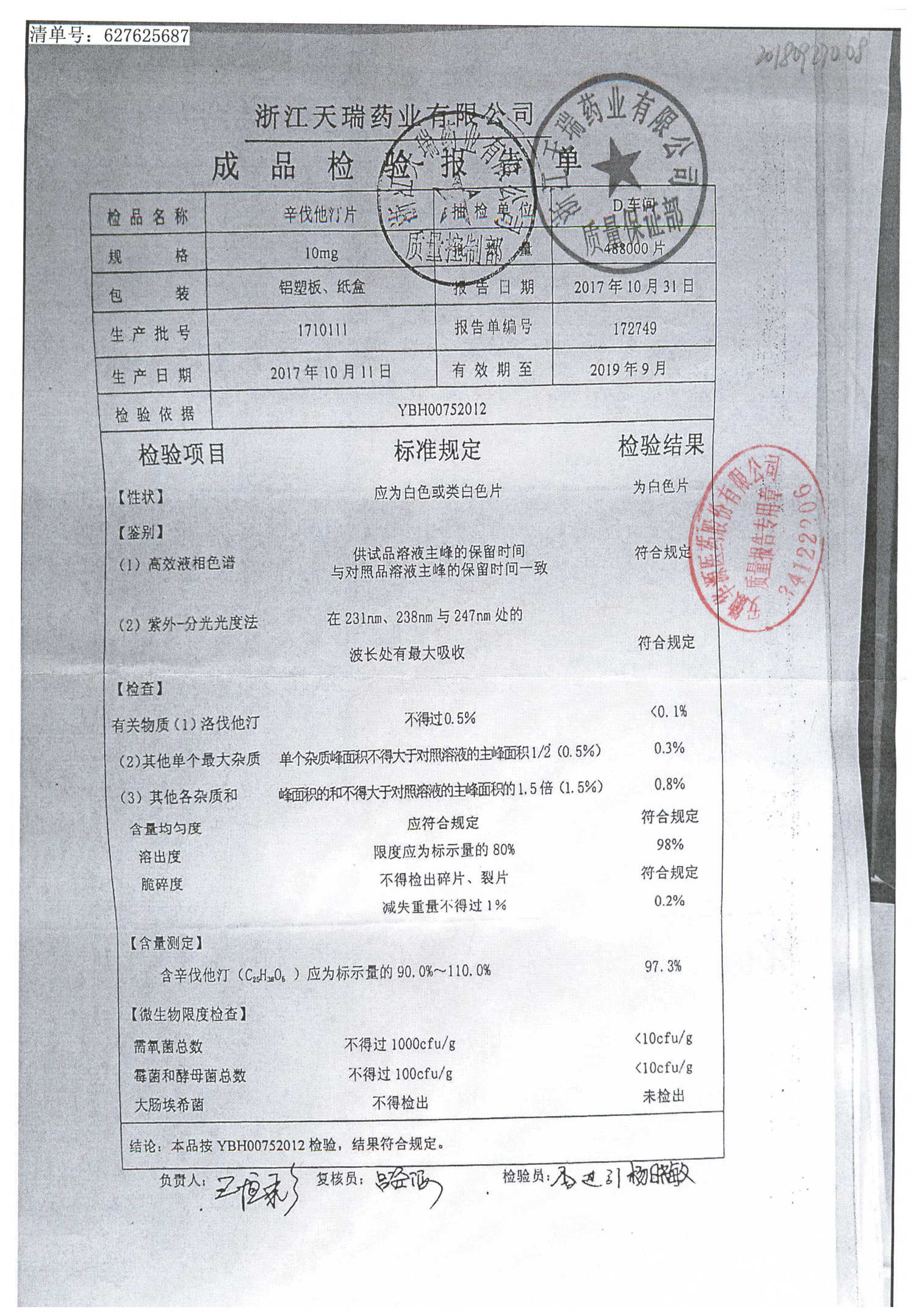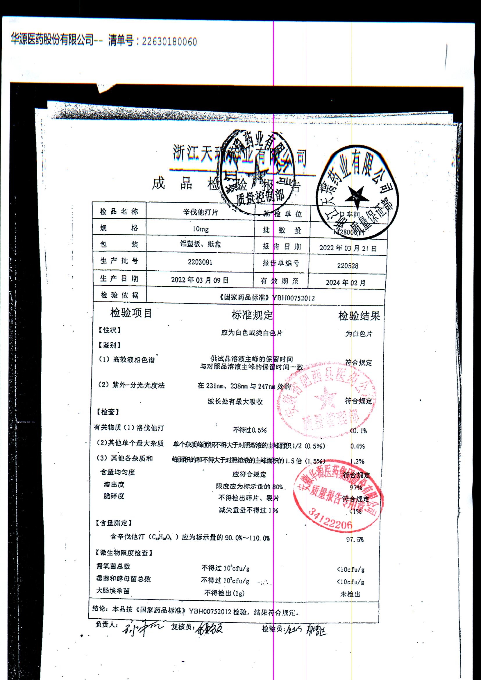 | 辛伐他汀片 | 10mg | 1909021 | 查看詳情 |