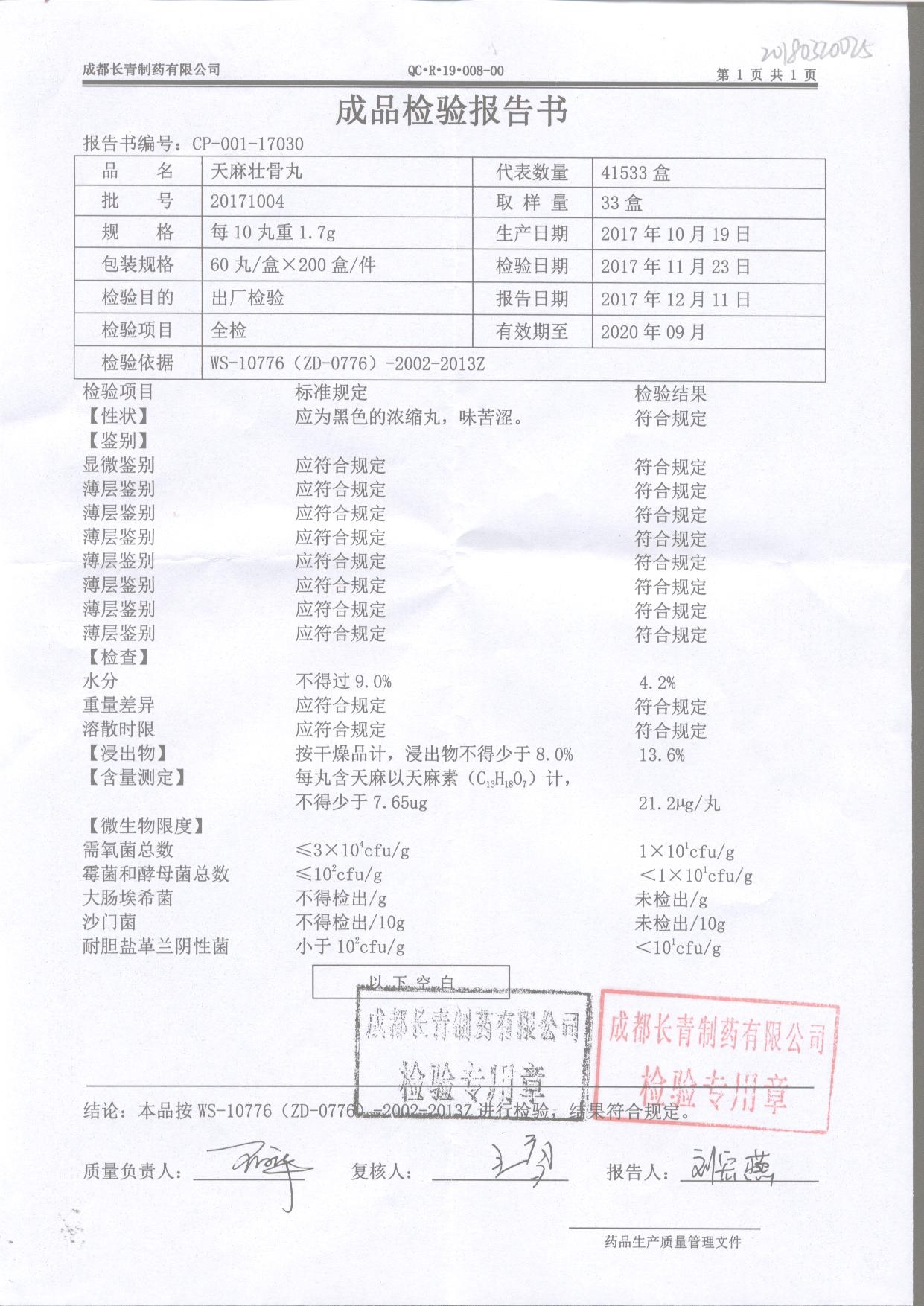 天麻壯骨丸 1.7g 20171004 查看詳情