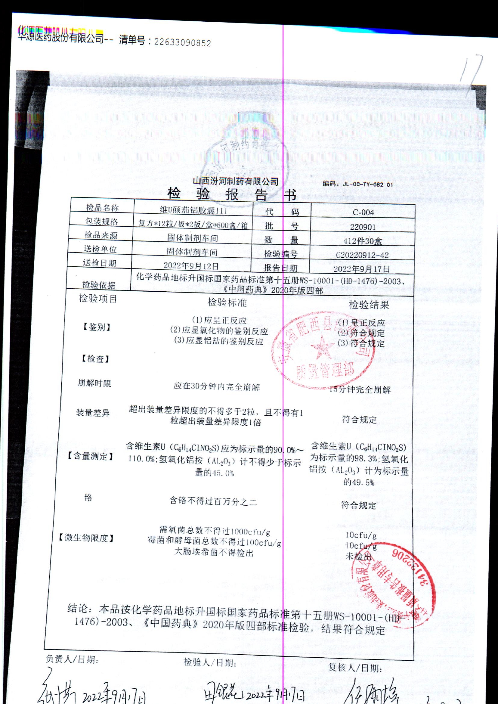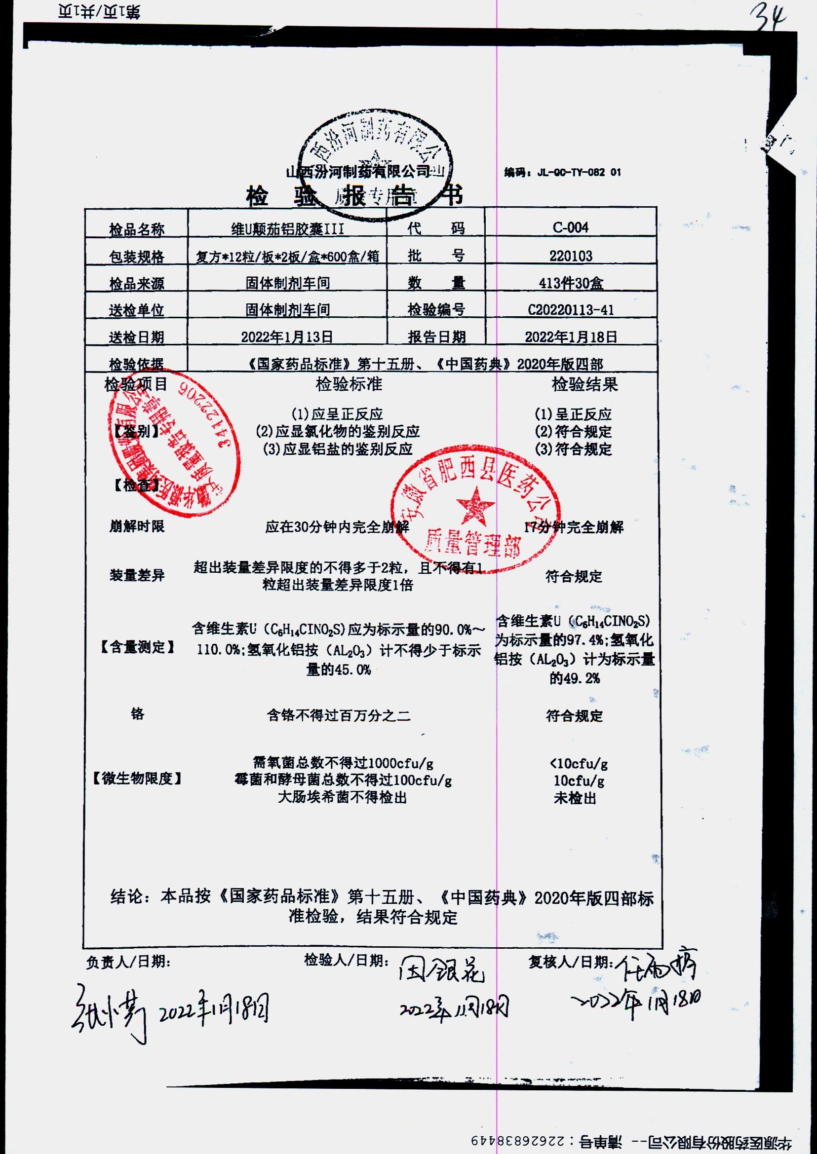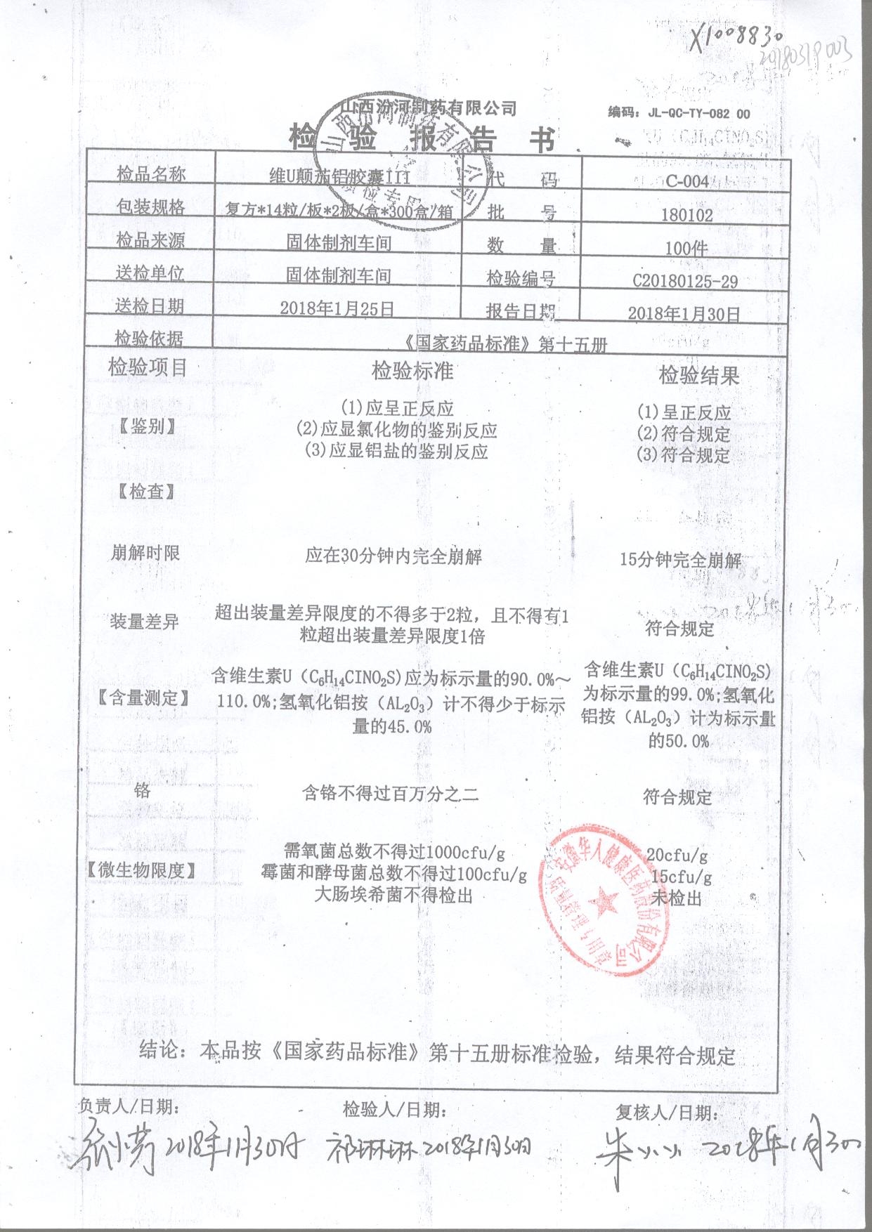 | 名稱 | 規(guī)格 | 批號 | 藥檢報告 |
