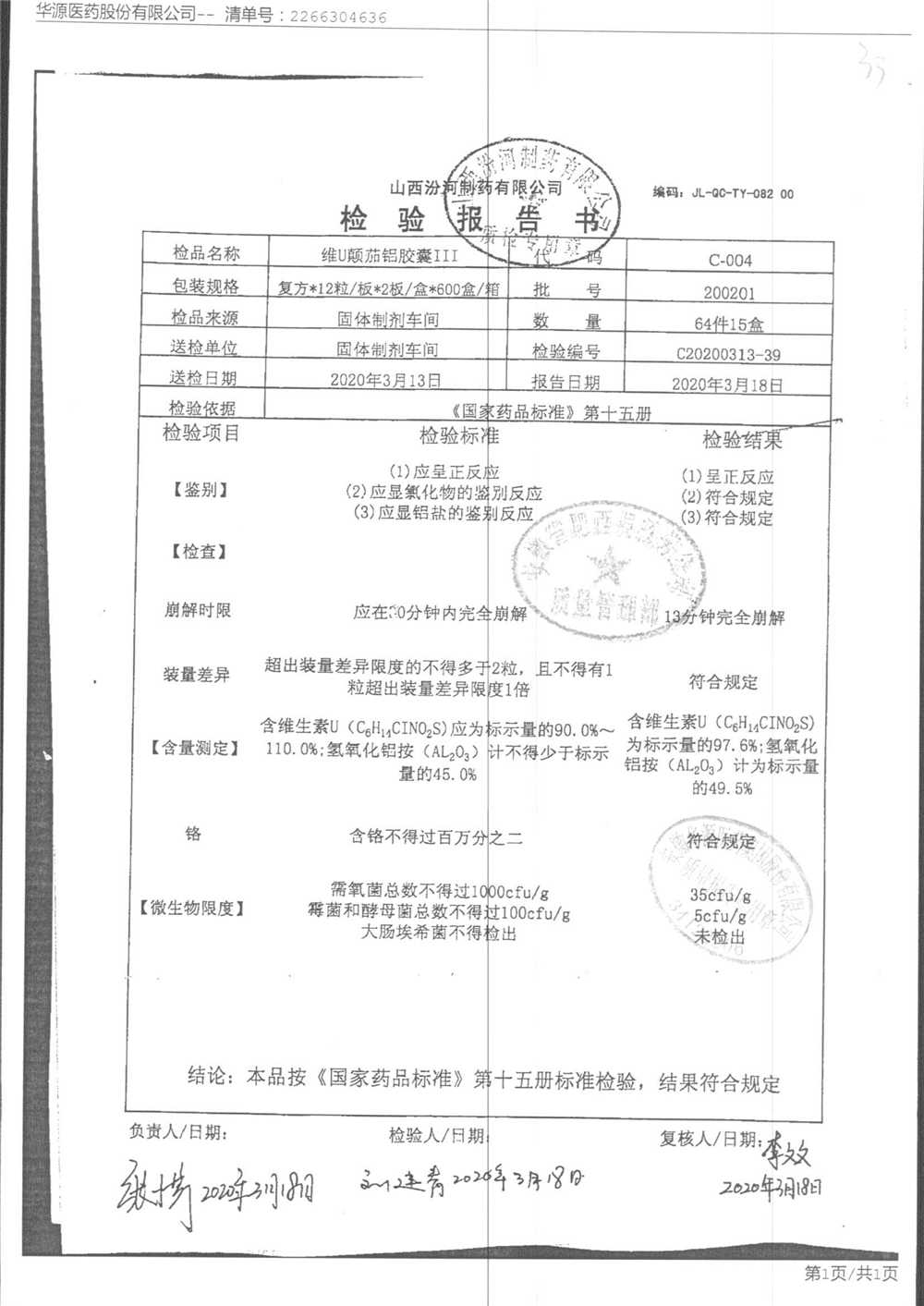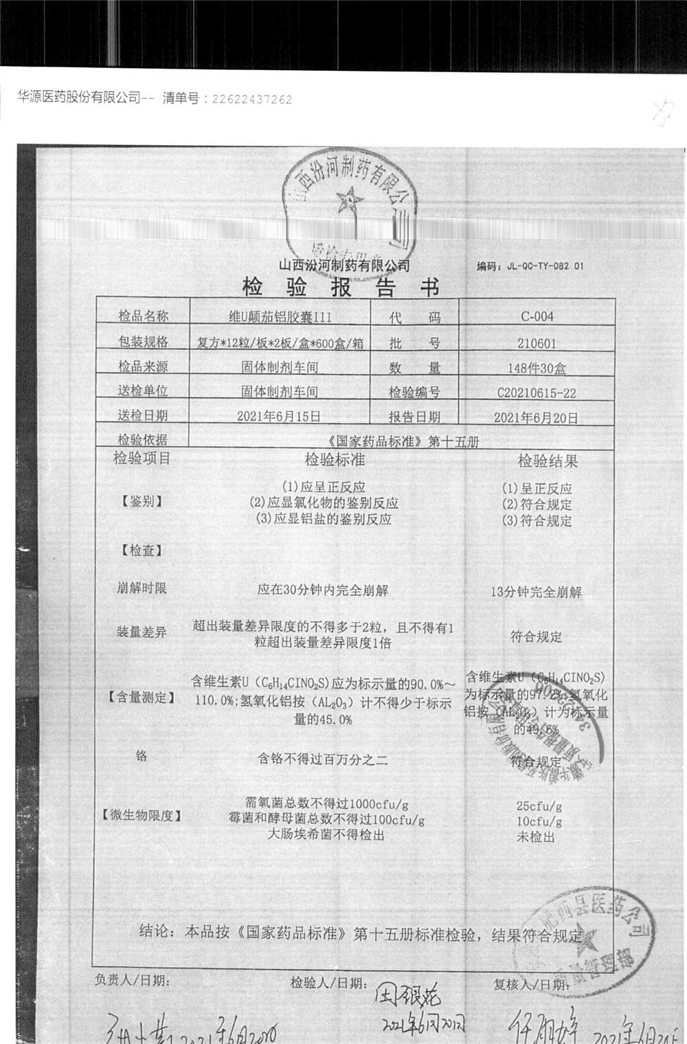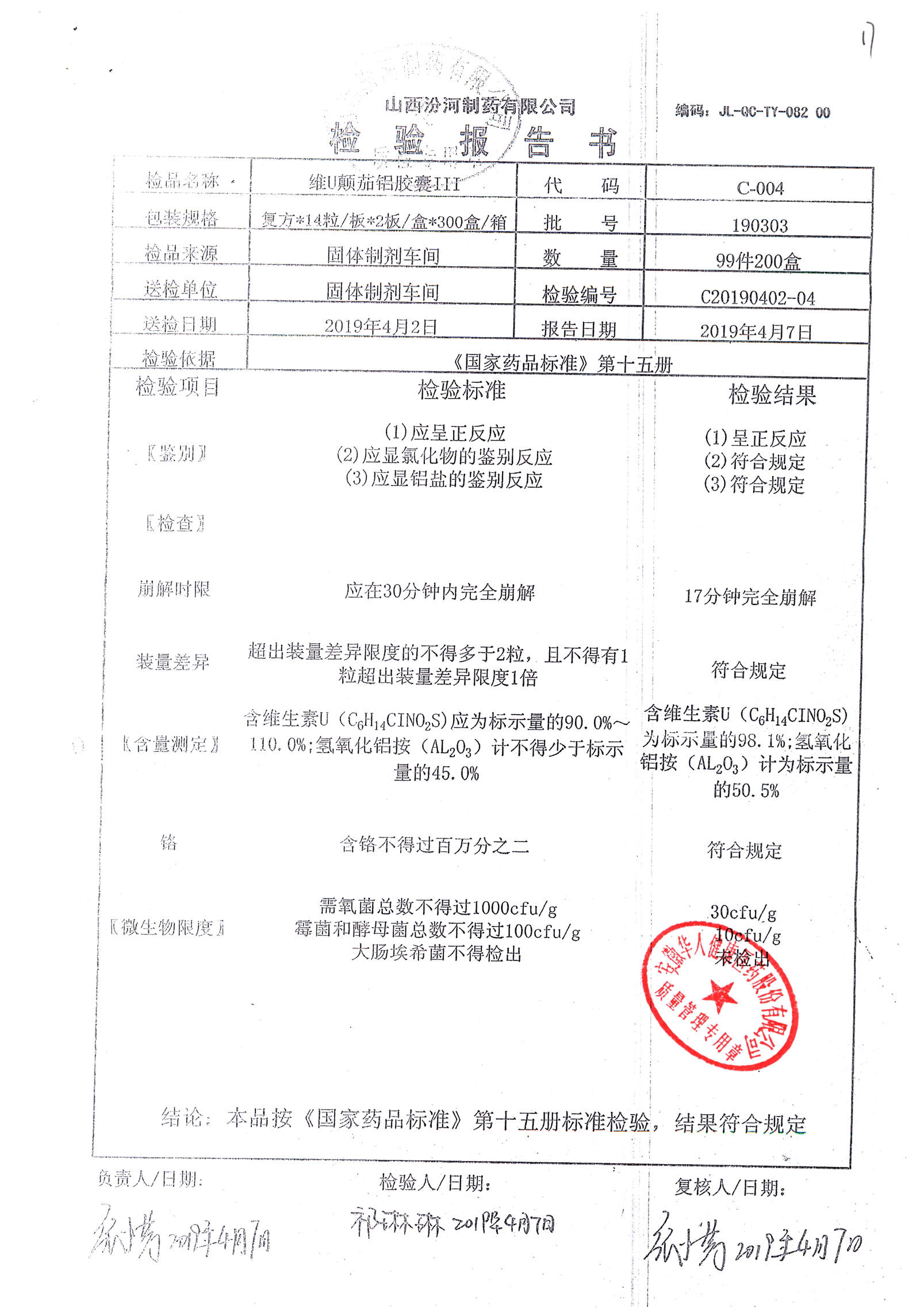 | 名稱 | 規(guī)格 | 批號 | 藥檢報告 |