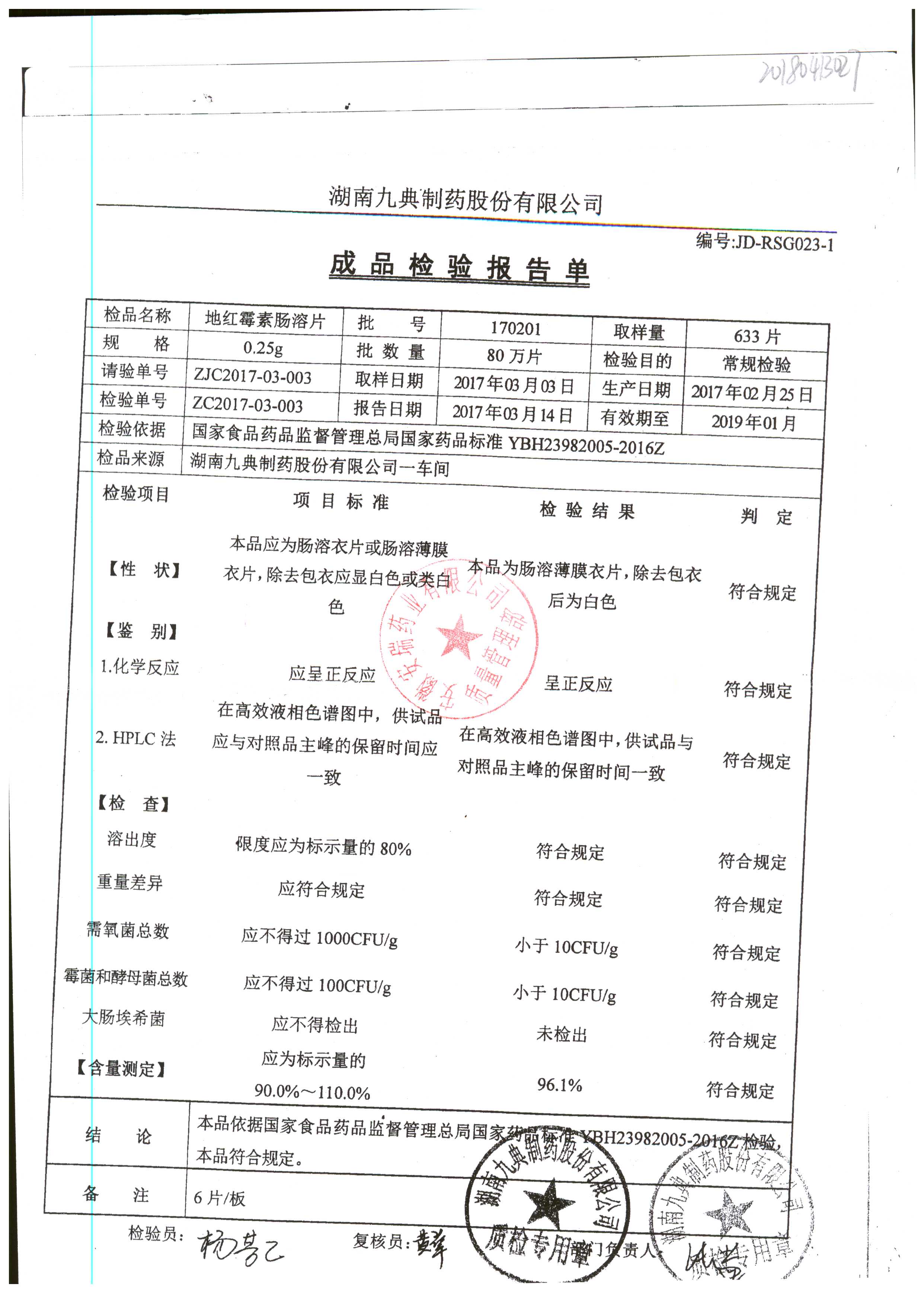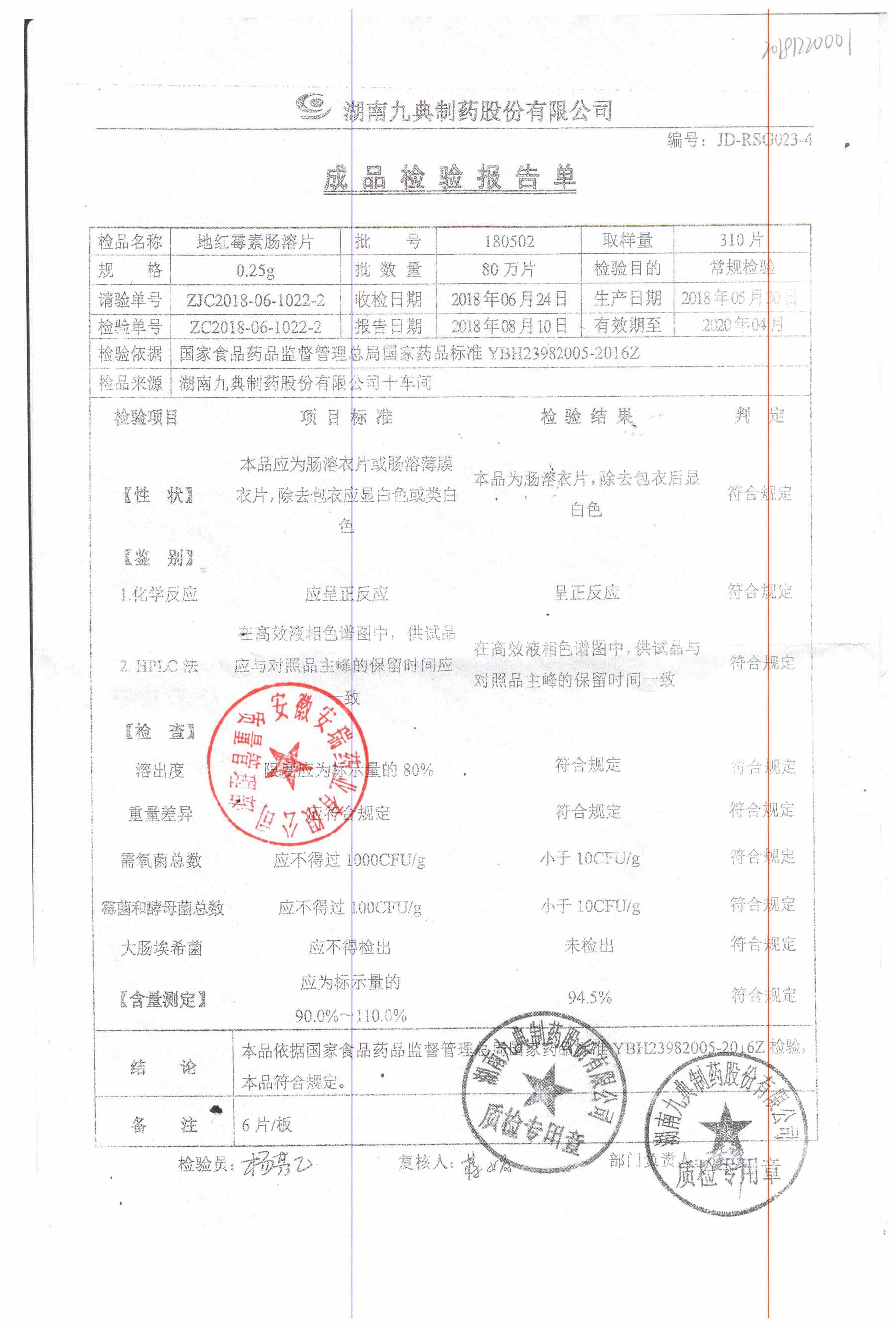 地紅霉素腸溶片 0.25g 180502 查看詳情
