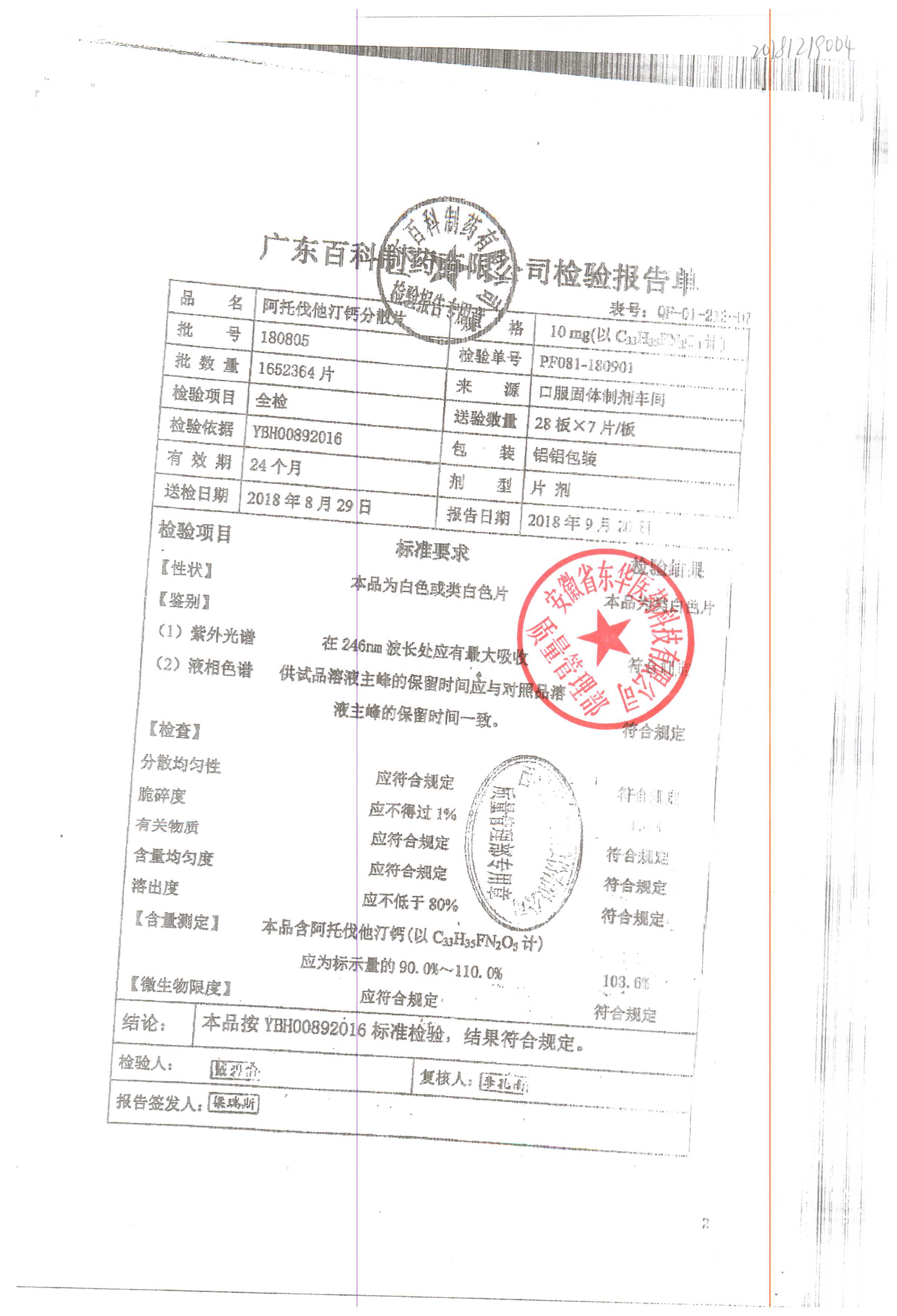 | 阿托伐他汀鈣分散片 | 10mg*7片 | 180805 | 查看詳情 |