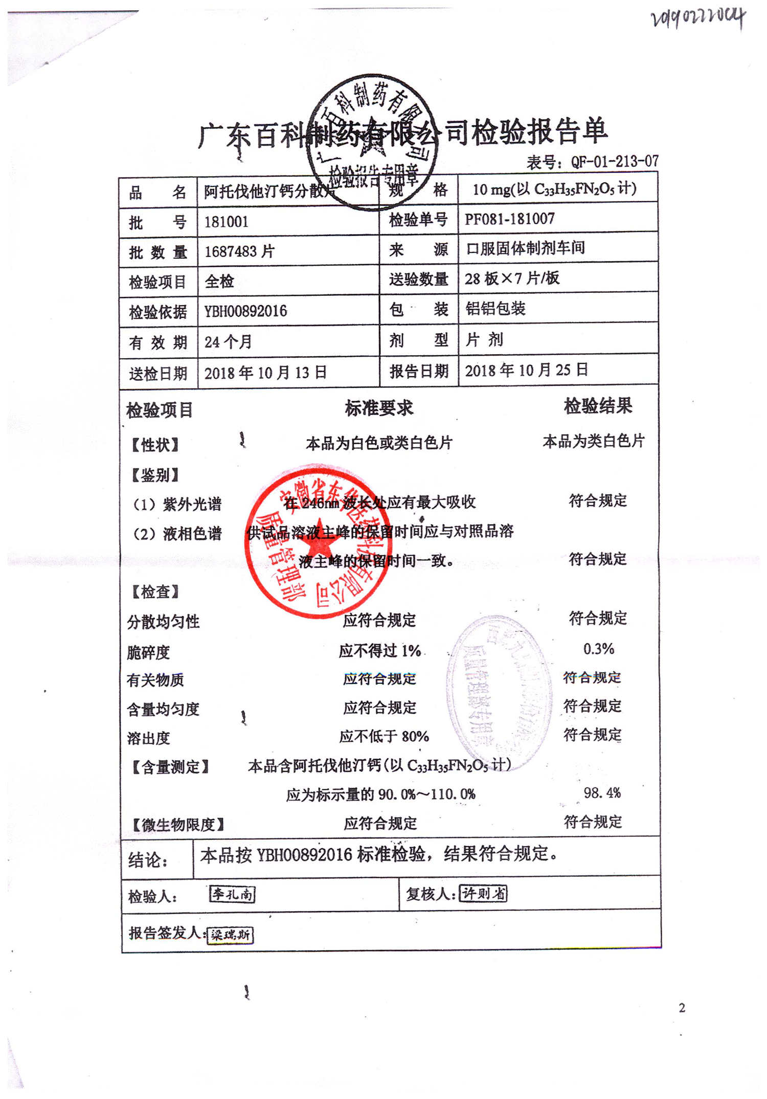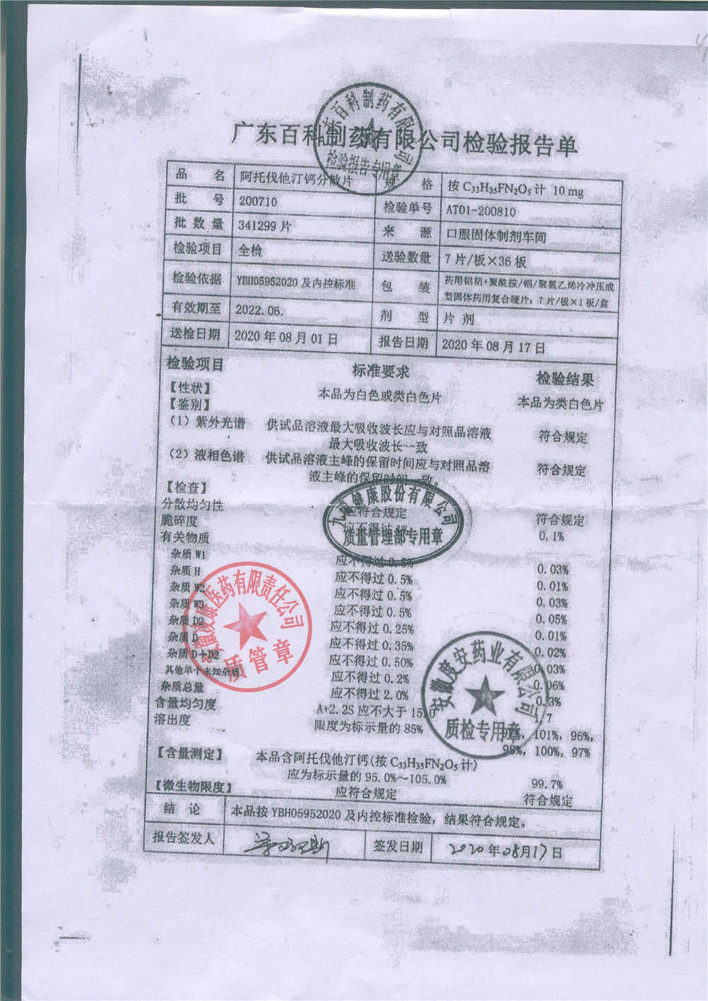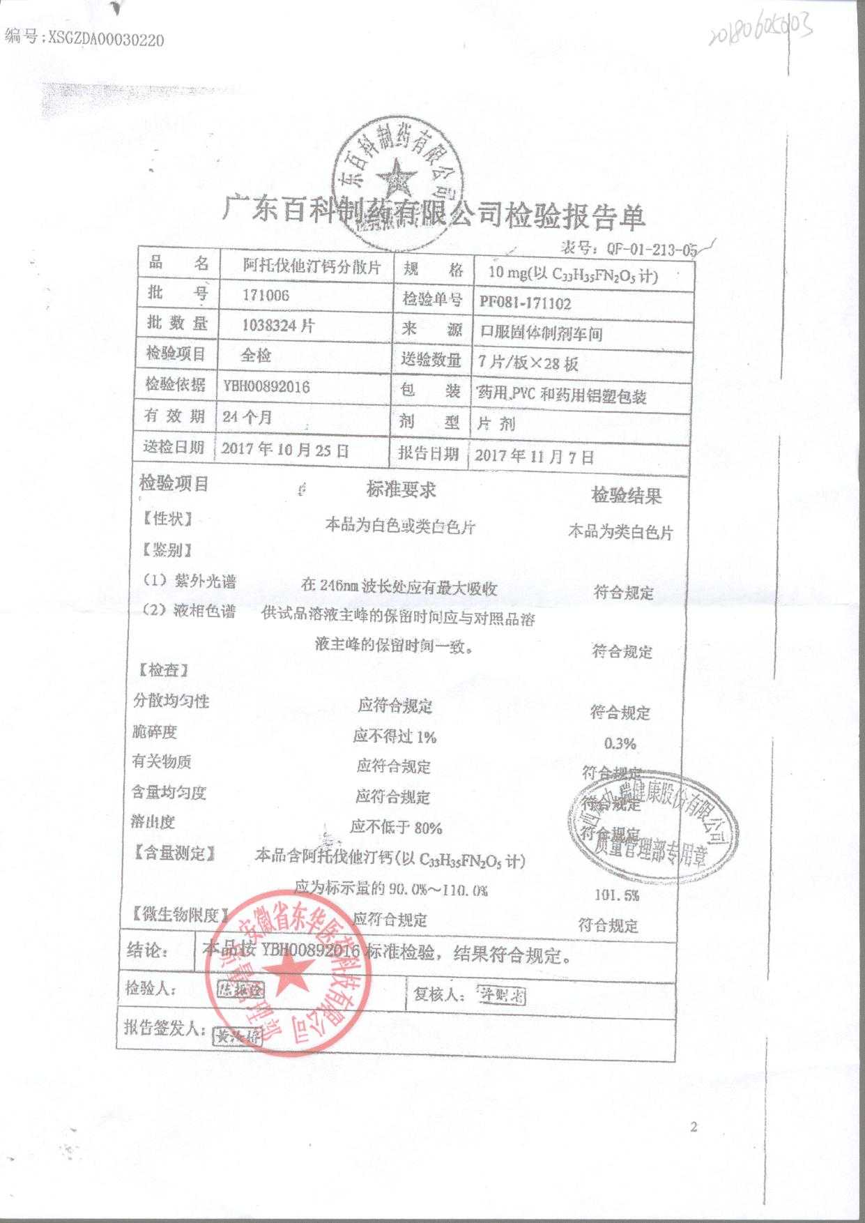 | 阿托伐他汀鈣分散片 | 10mg*7片 | 180601 | 查看詳情 |