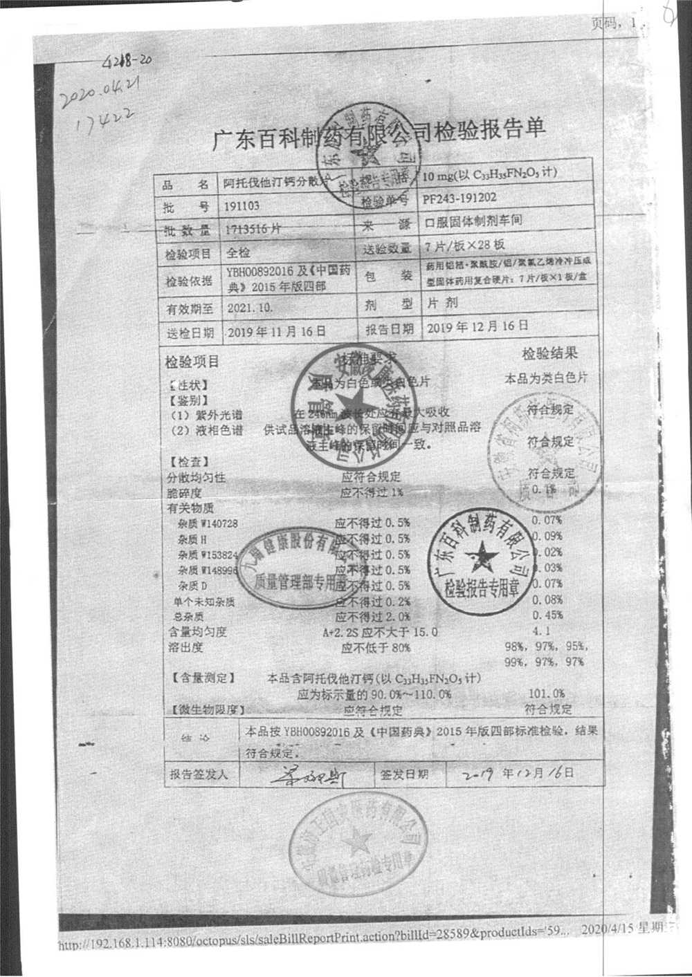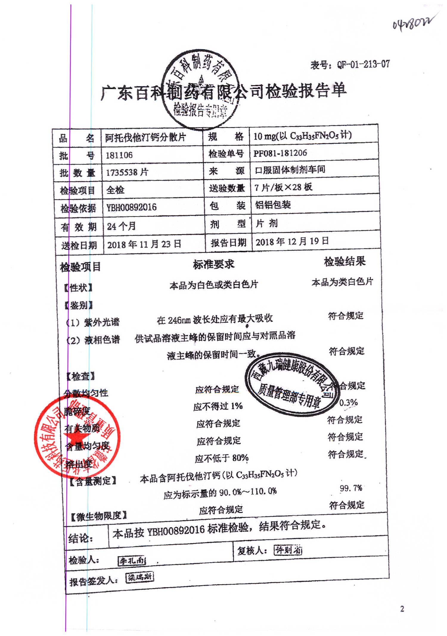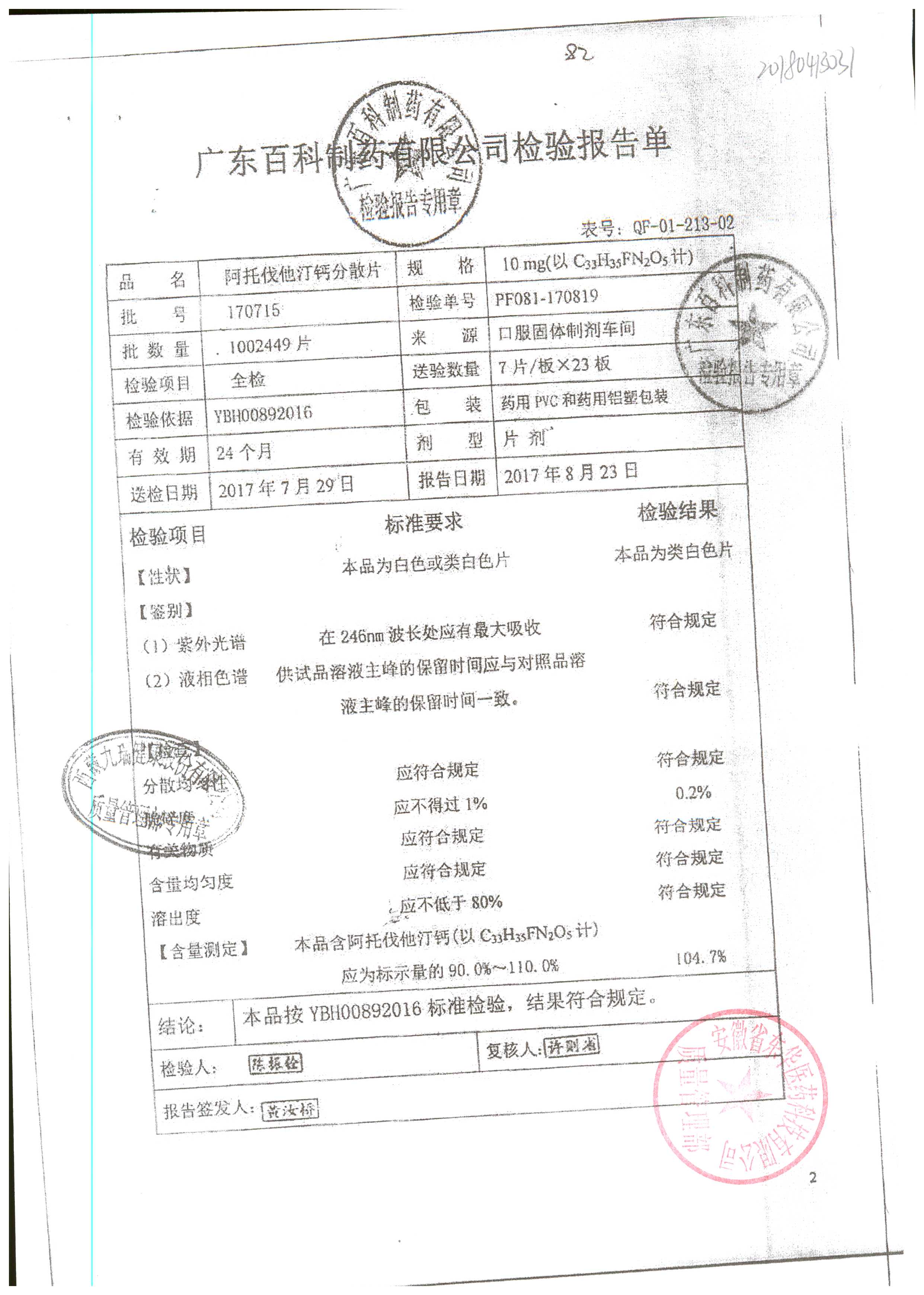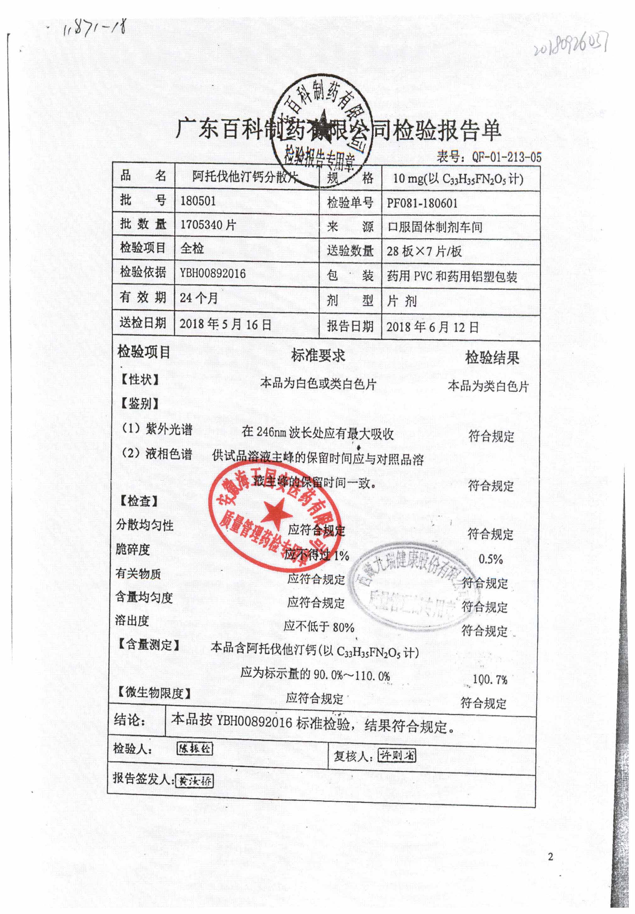 | 阿托伐他汀鈣分散片 | 10mg*7片 | 180601 | 查看詳情 |