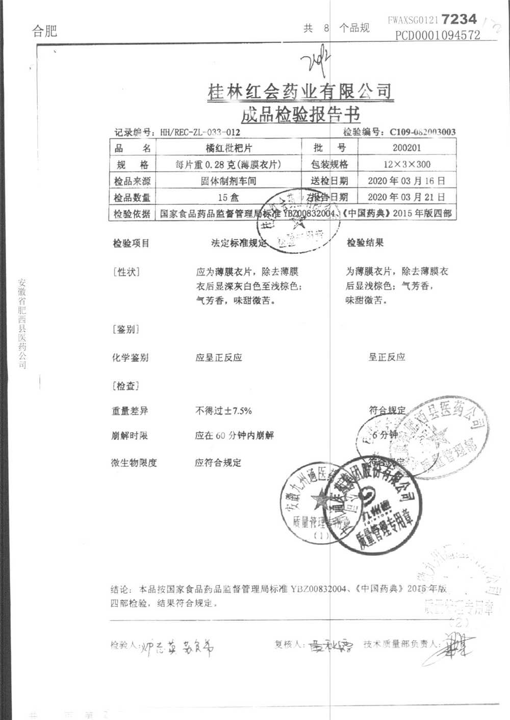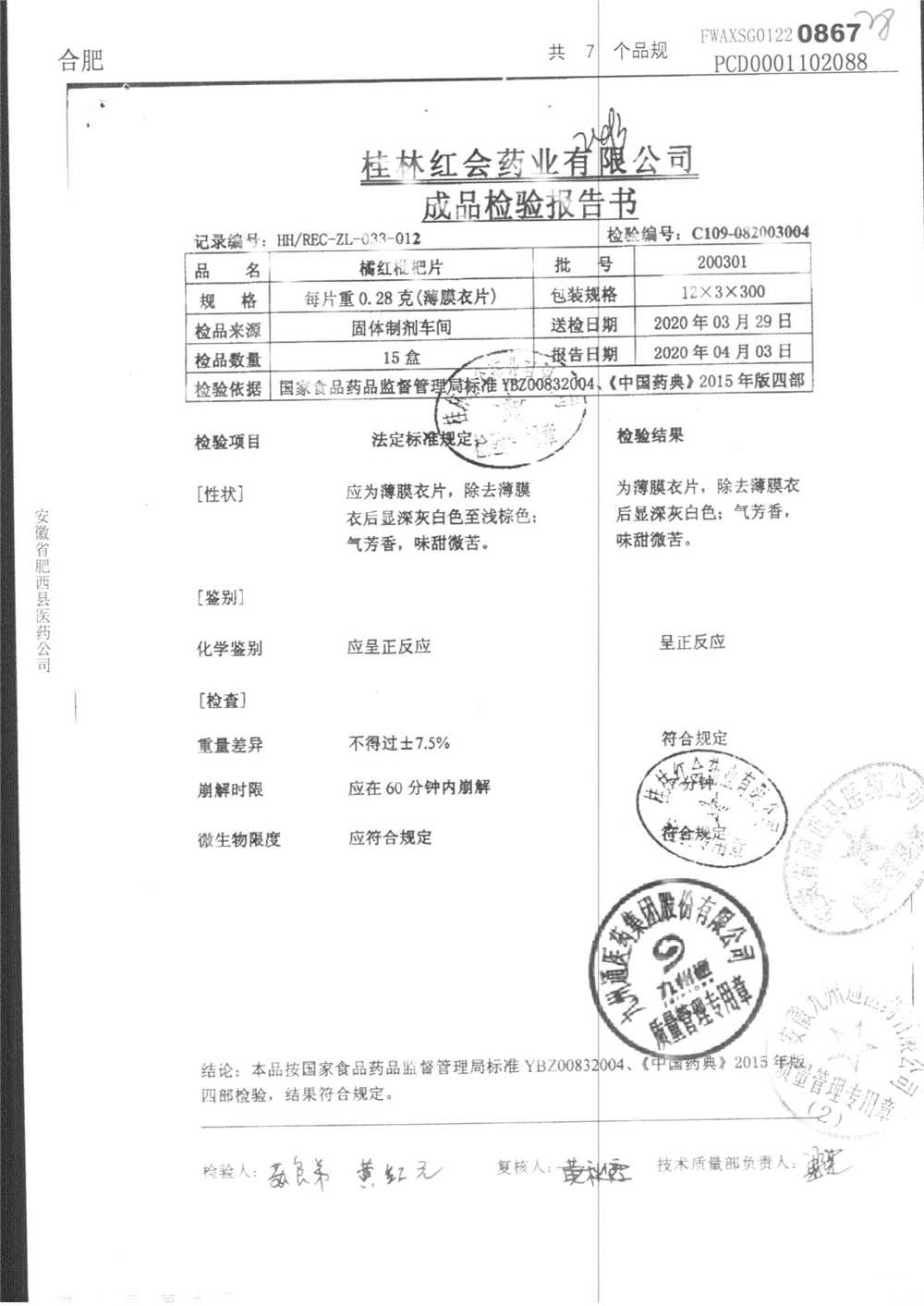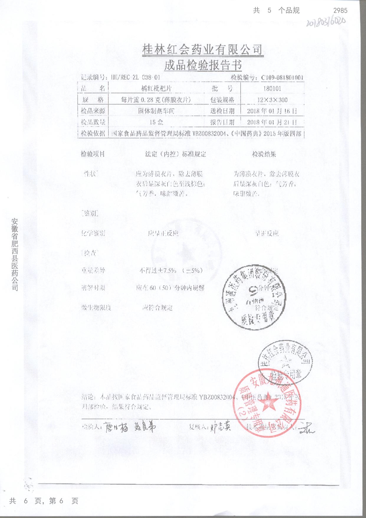 名稱 規(guī)格 批號 藥檢報告