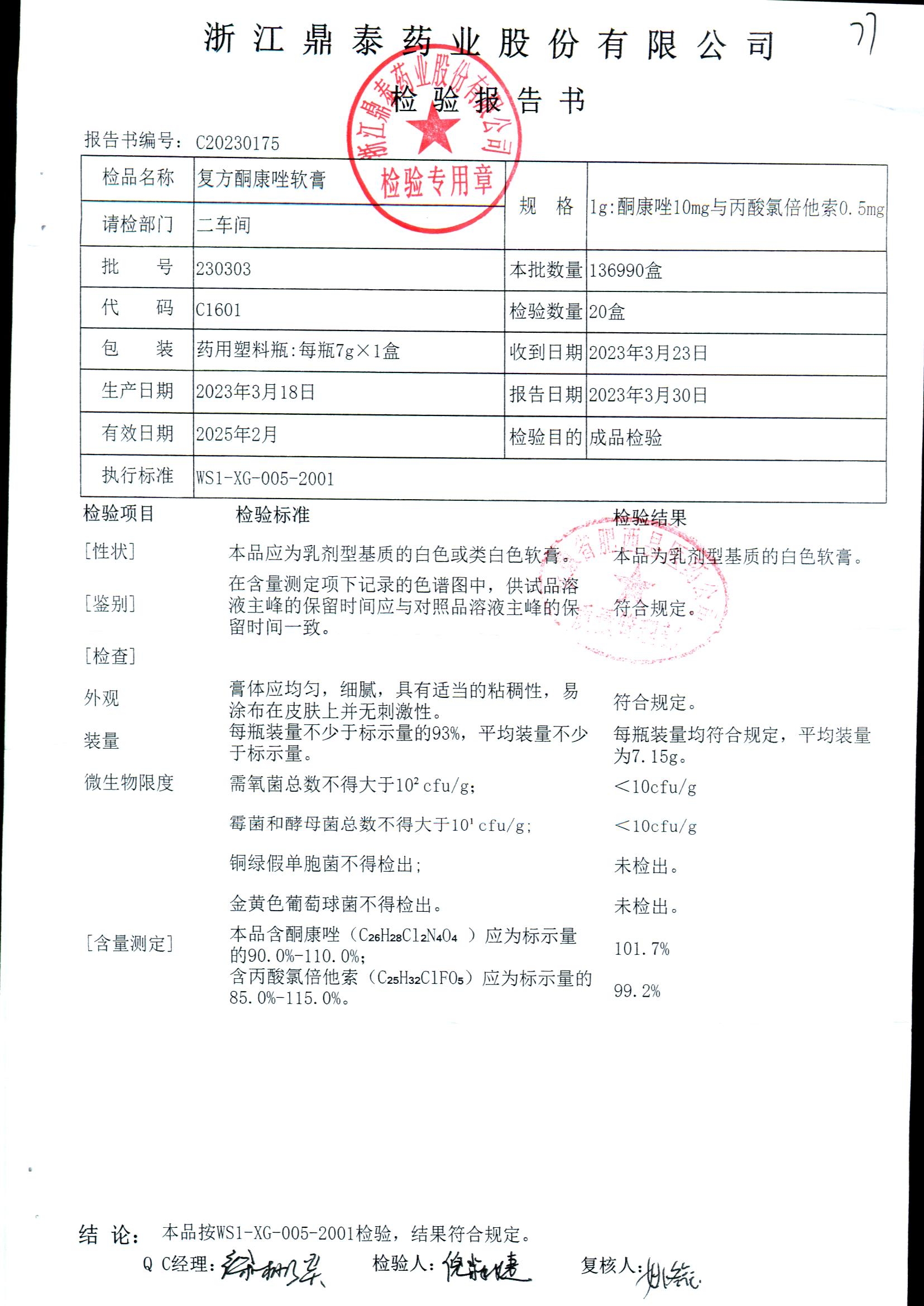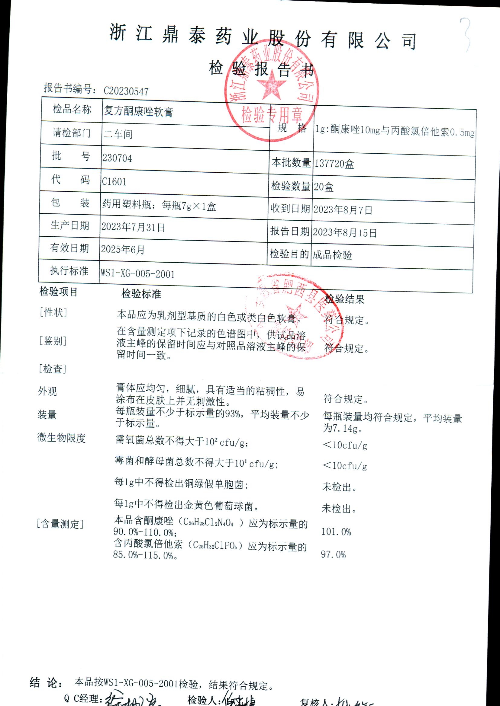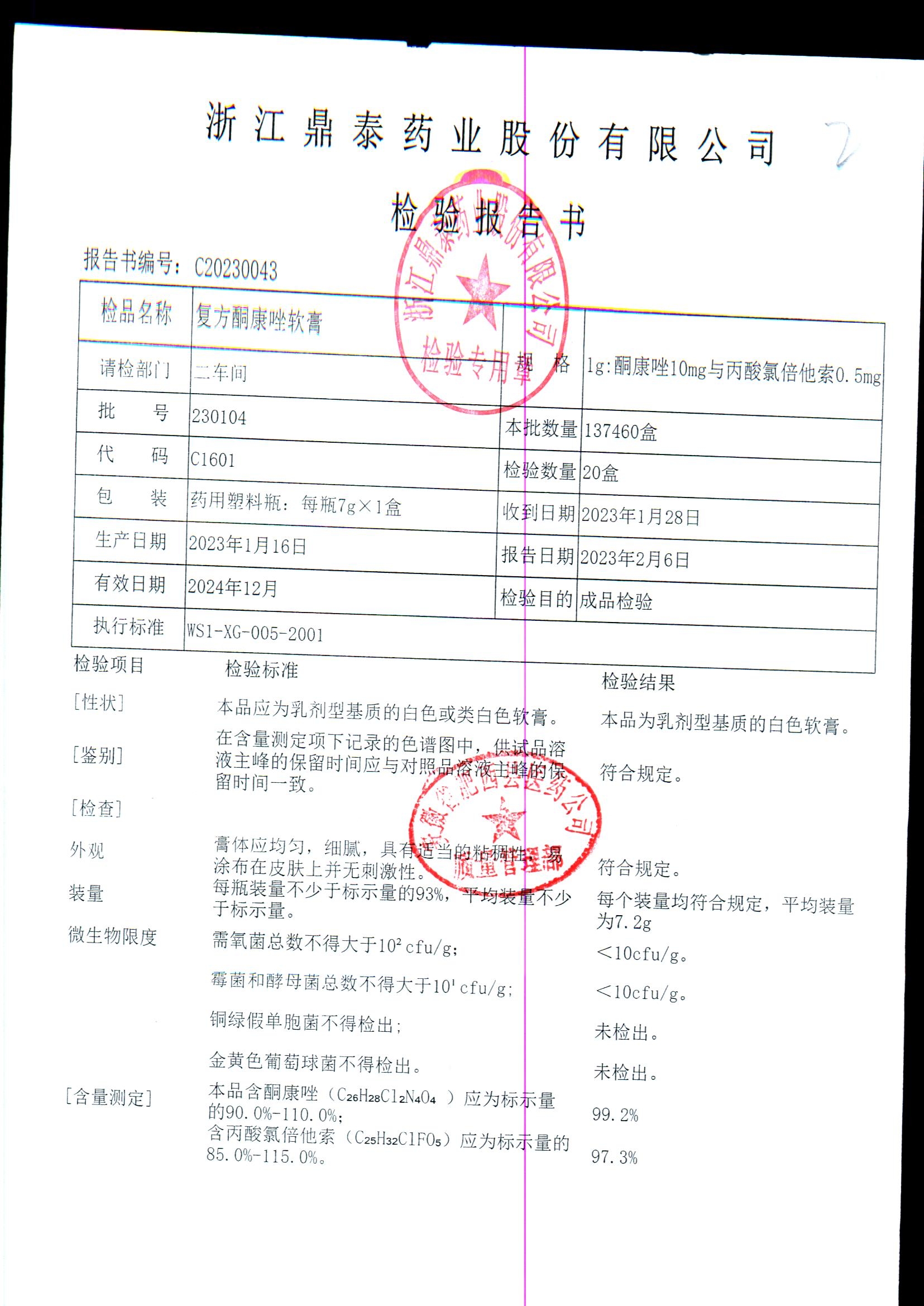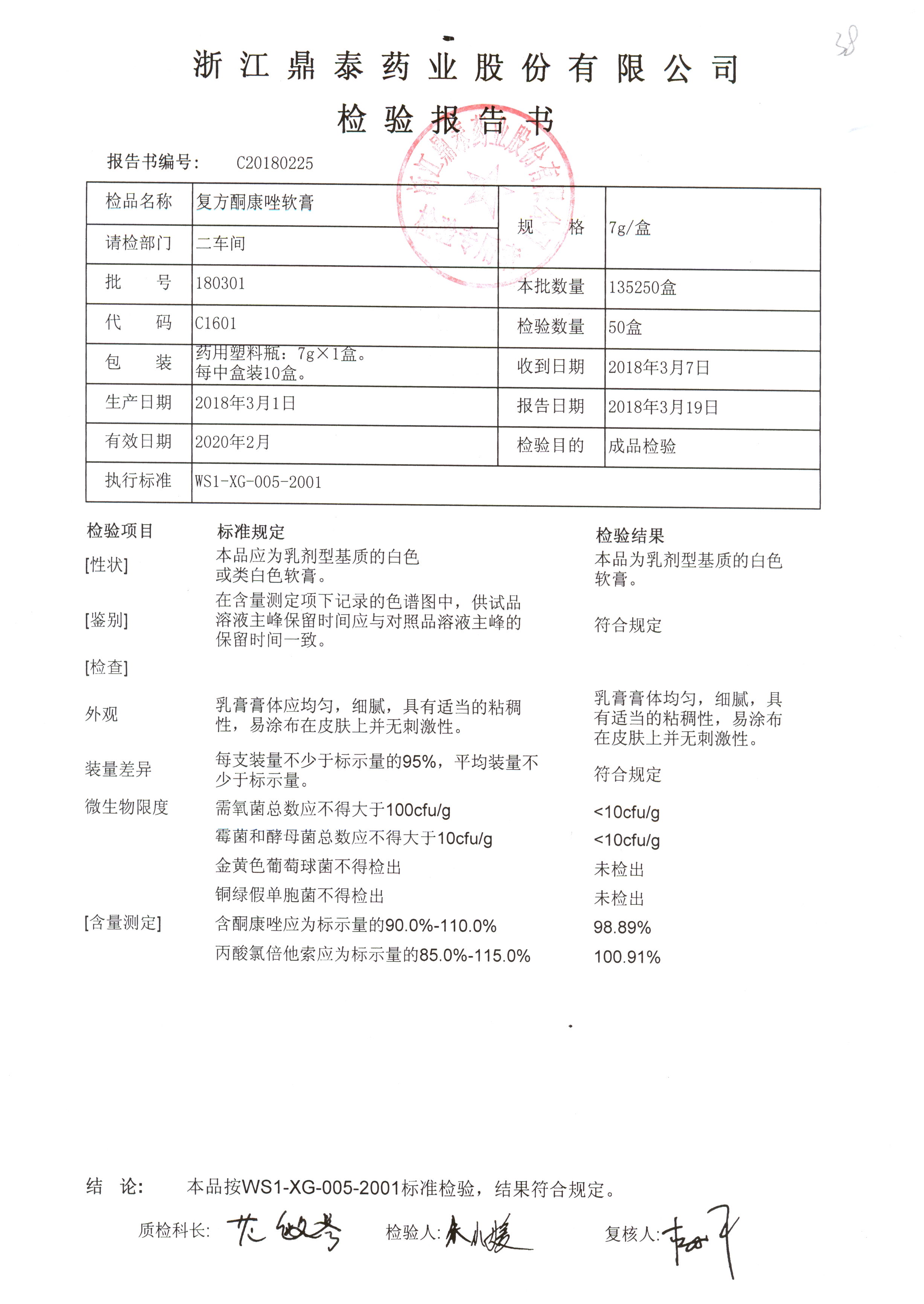 | 復(fù)方酮康唑軟膏 | 1g | 181001 | 查看詳情 |
