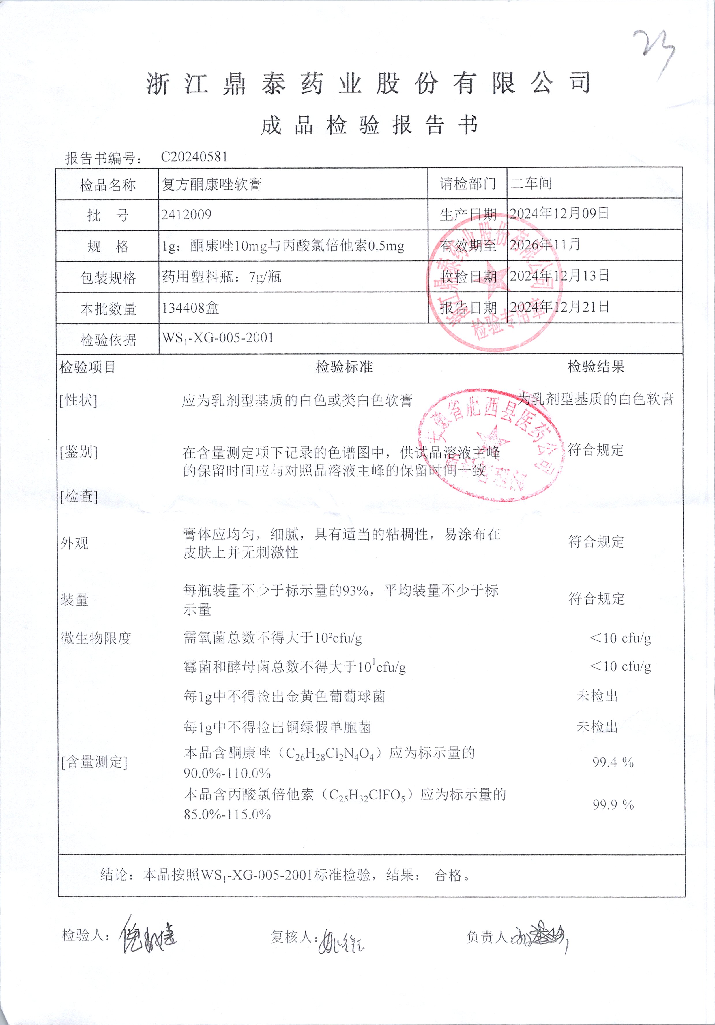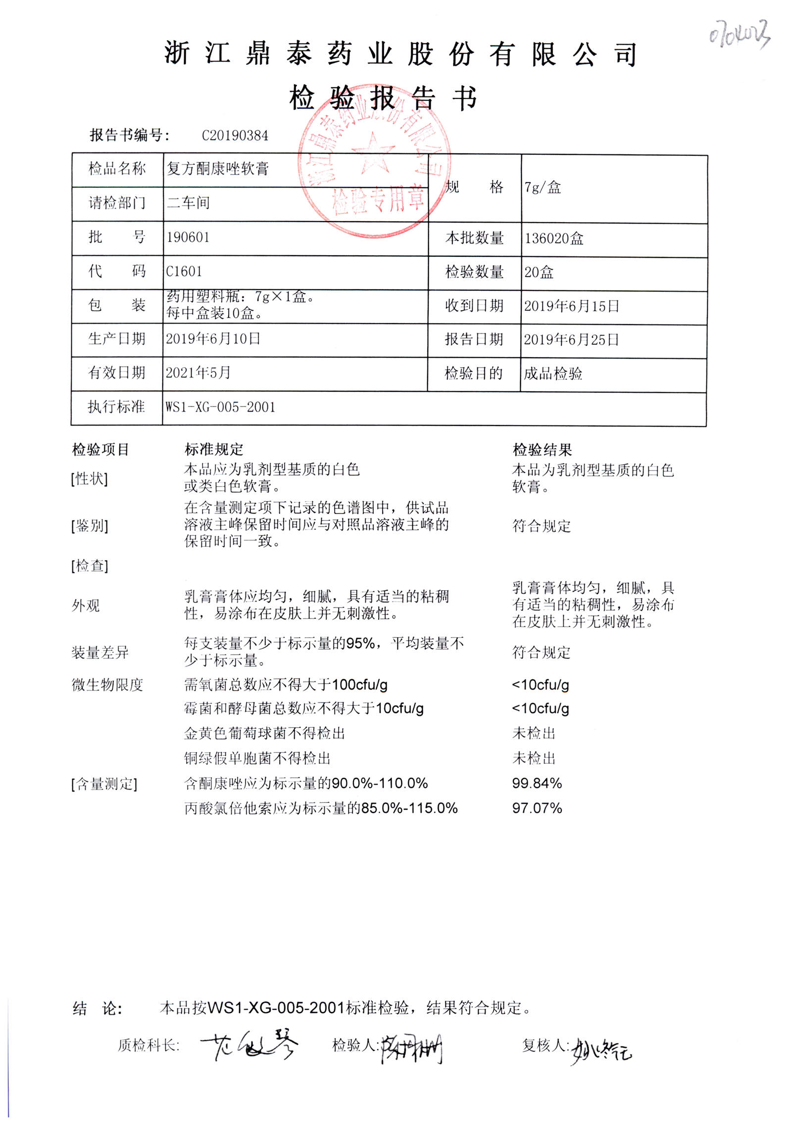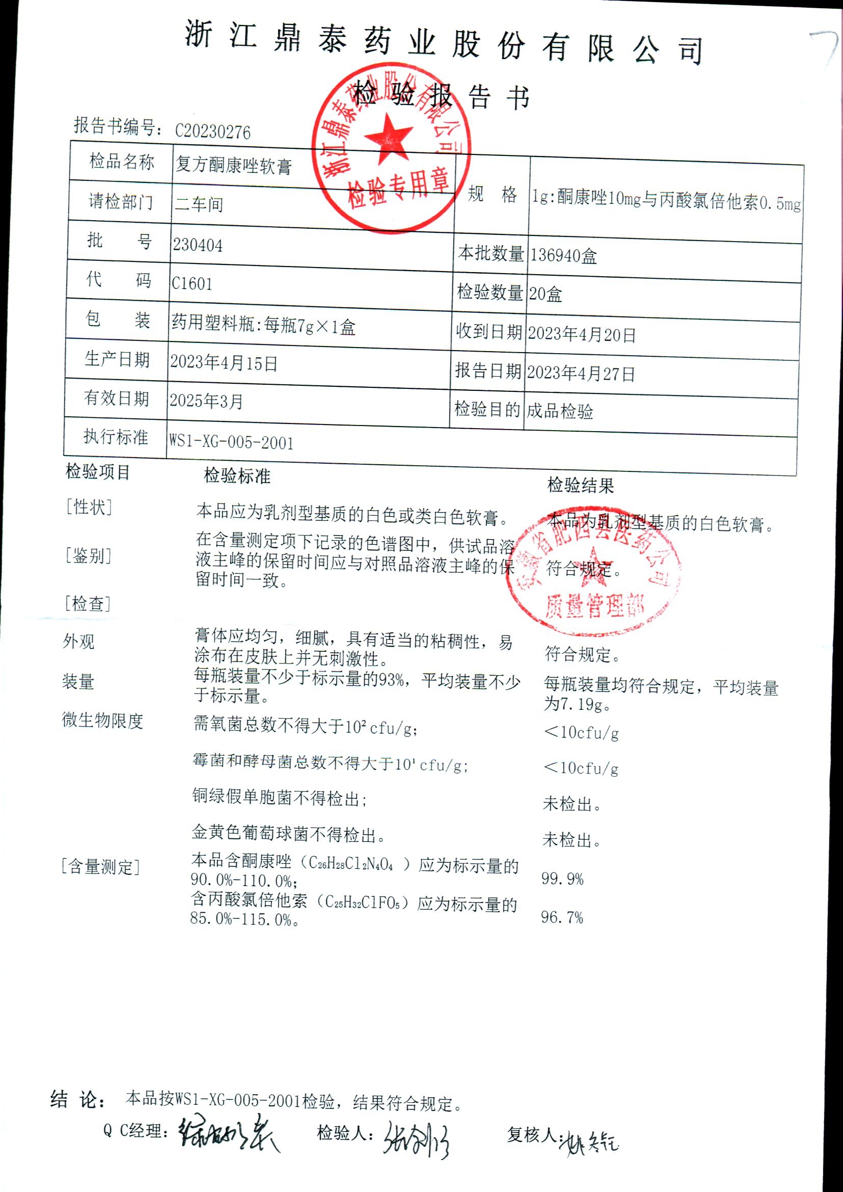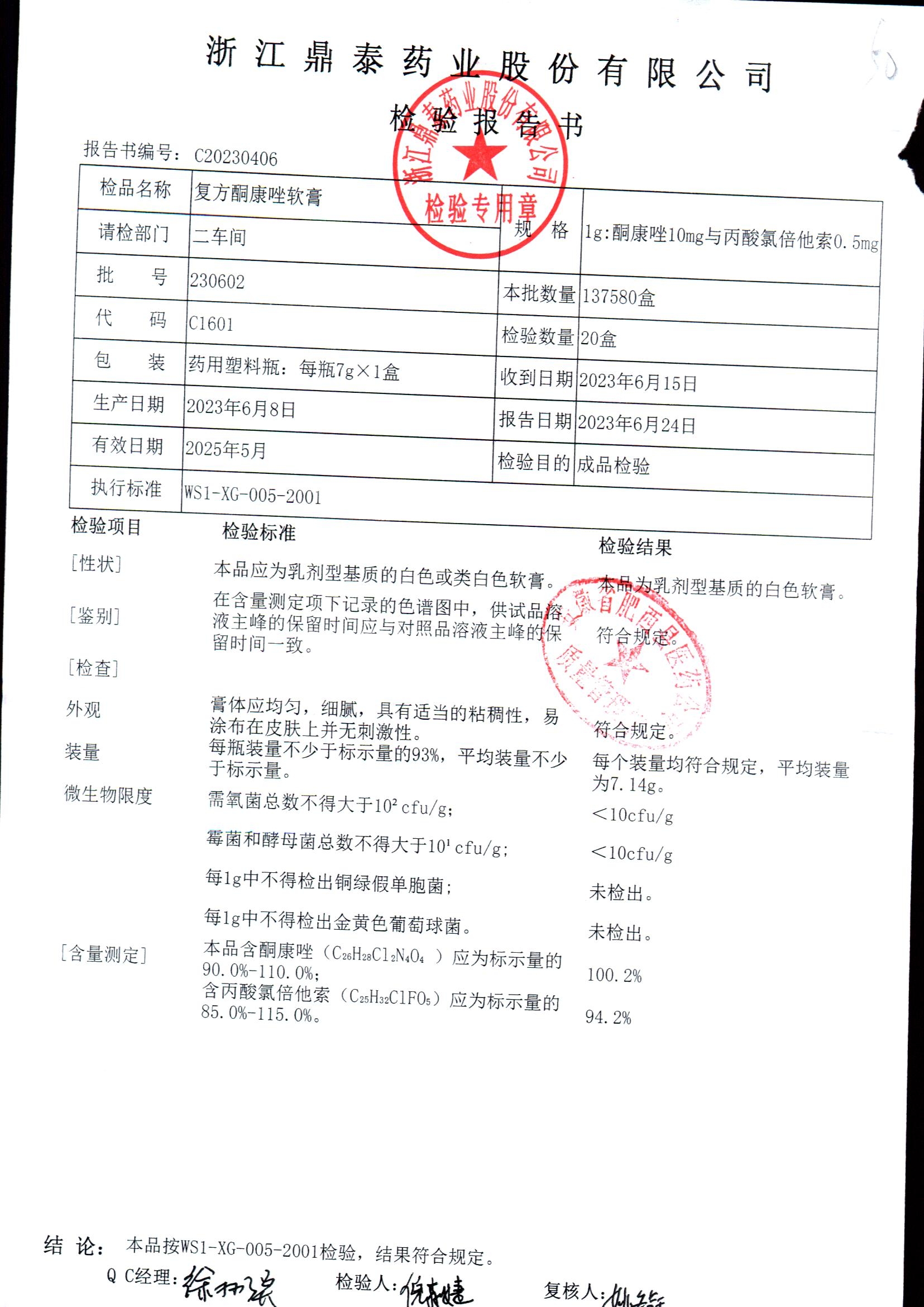| 復(fù)方酮康唑軟膏 | 1g | 181001 | 查看詳情 |