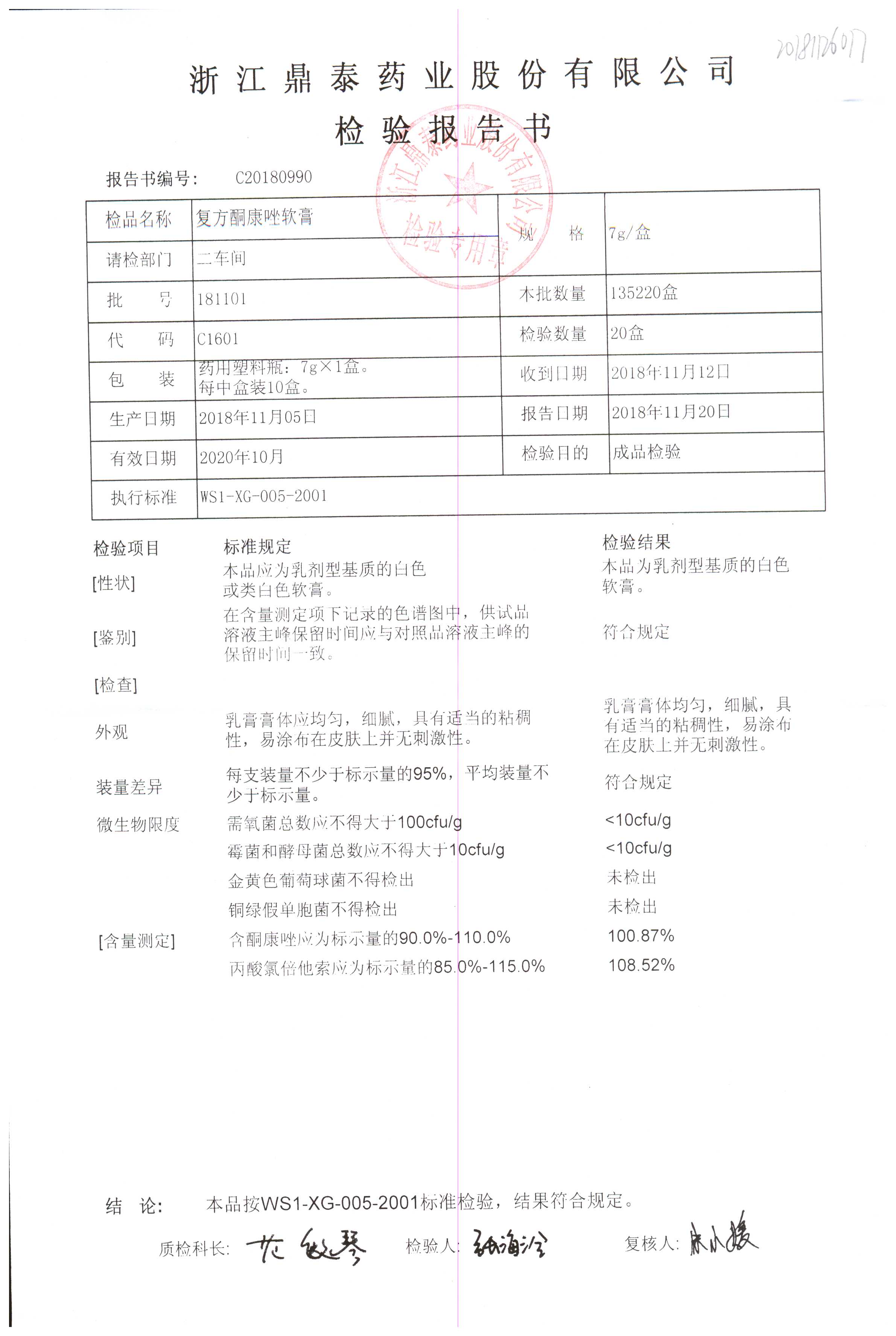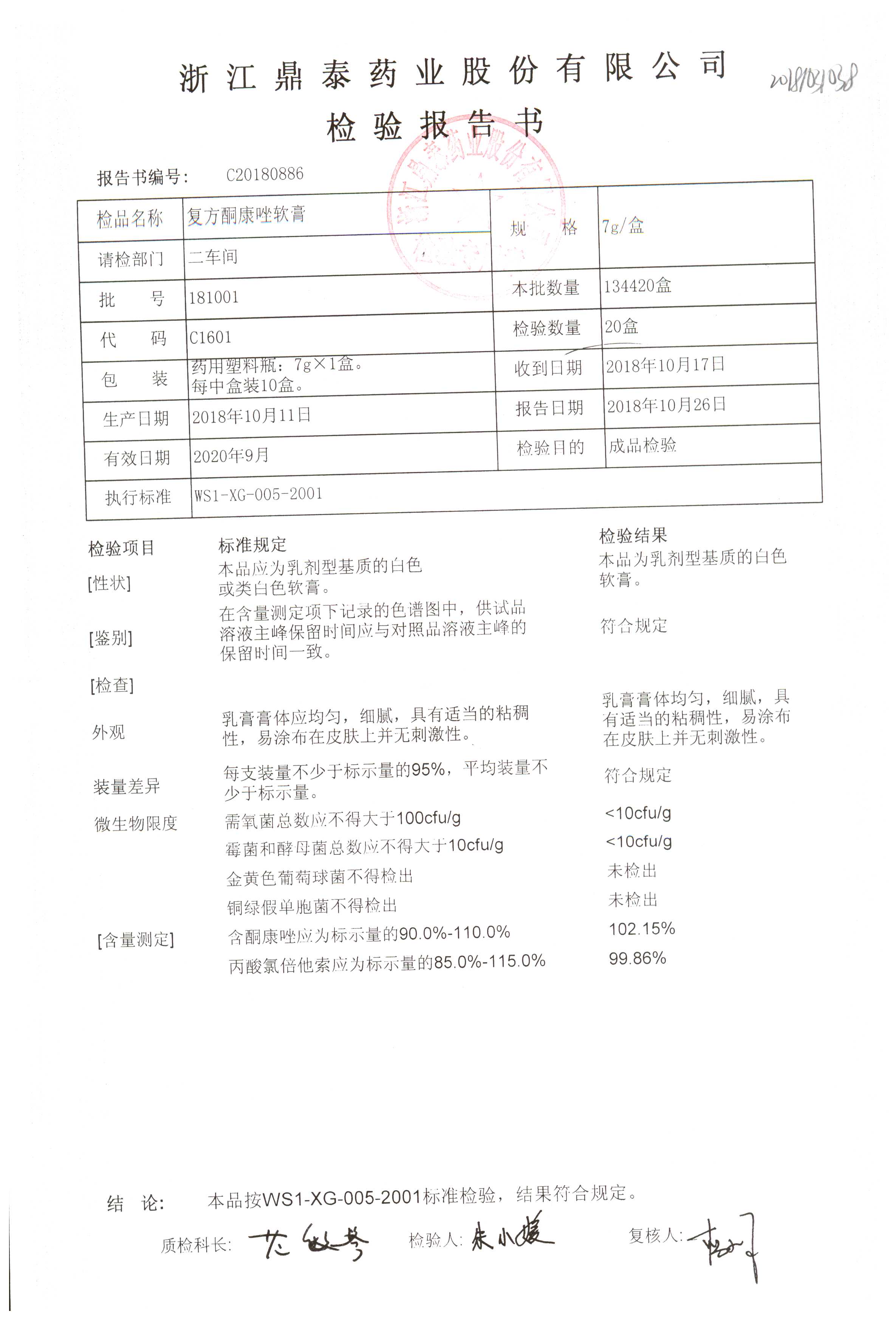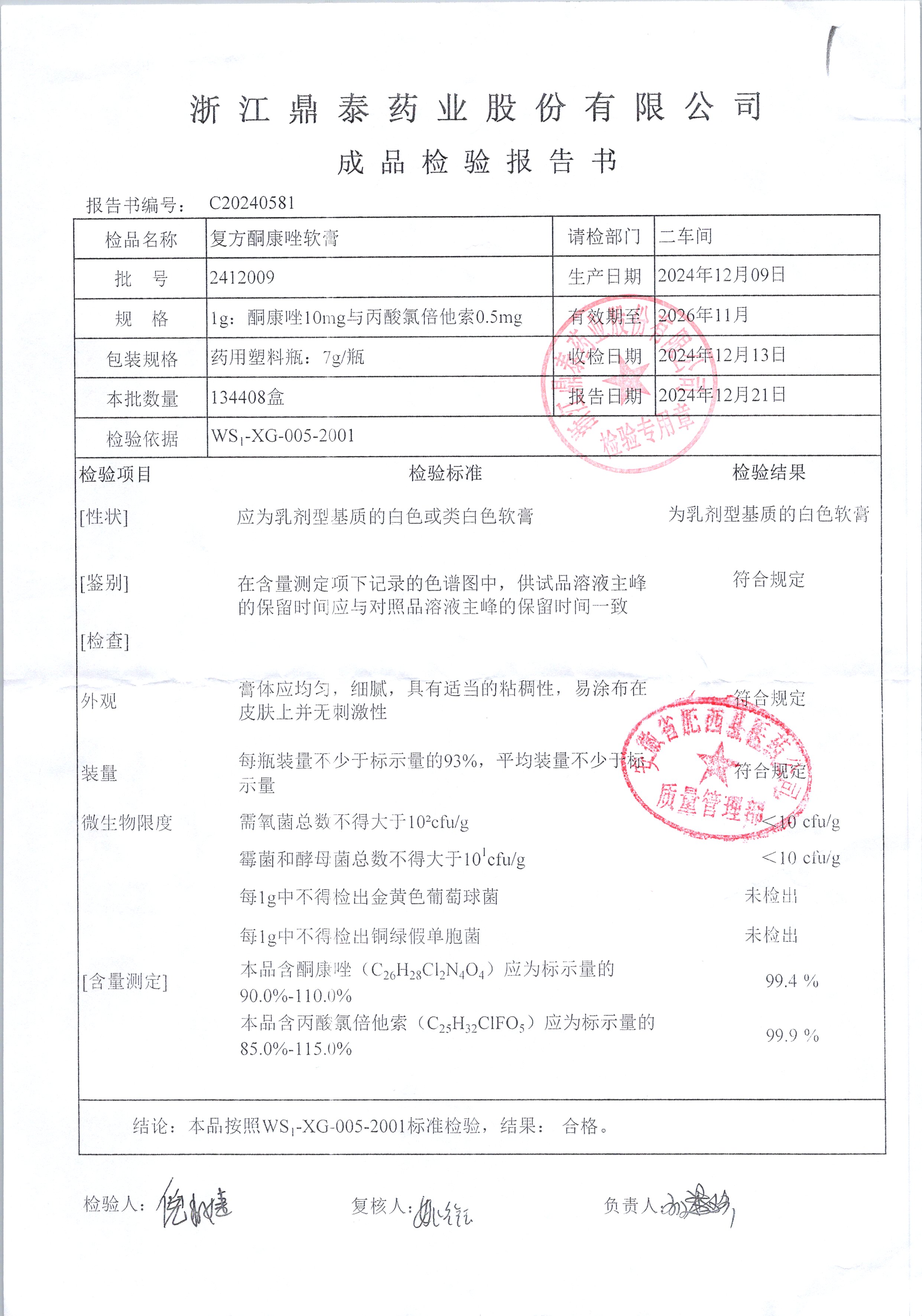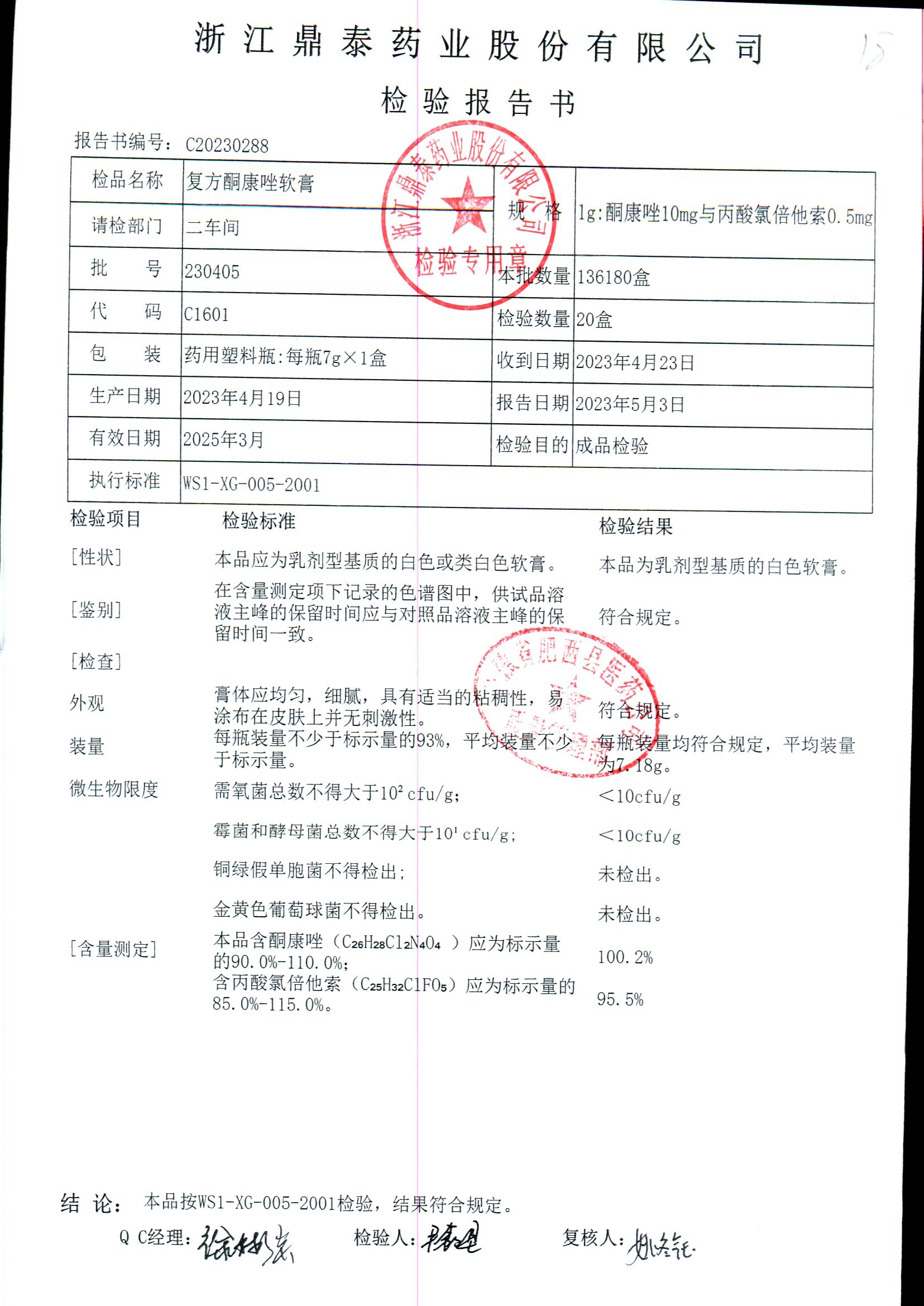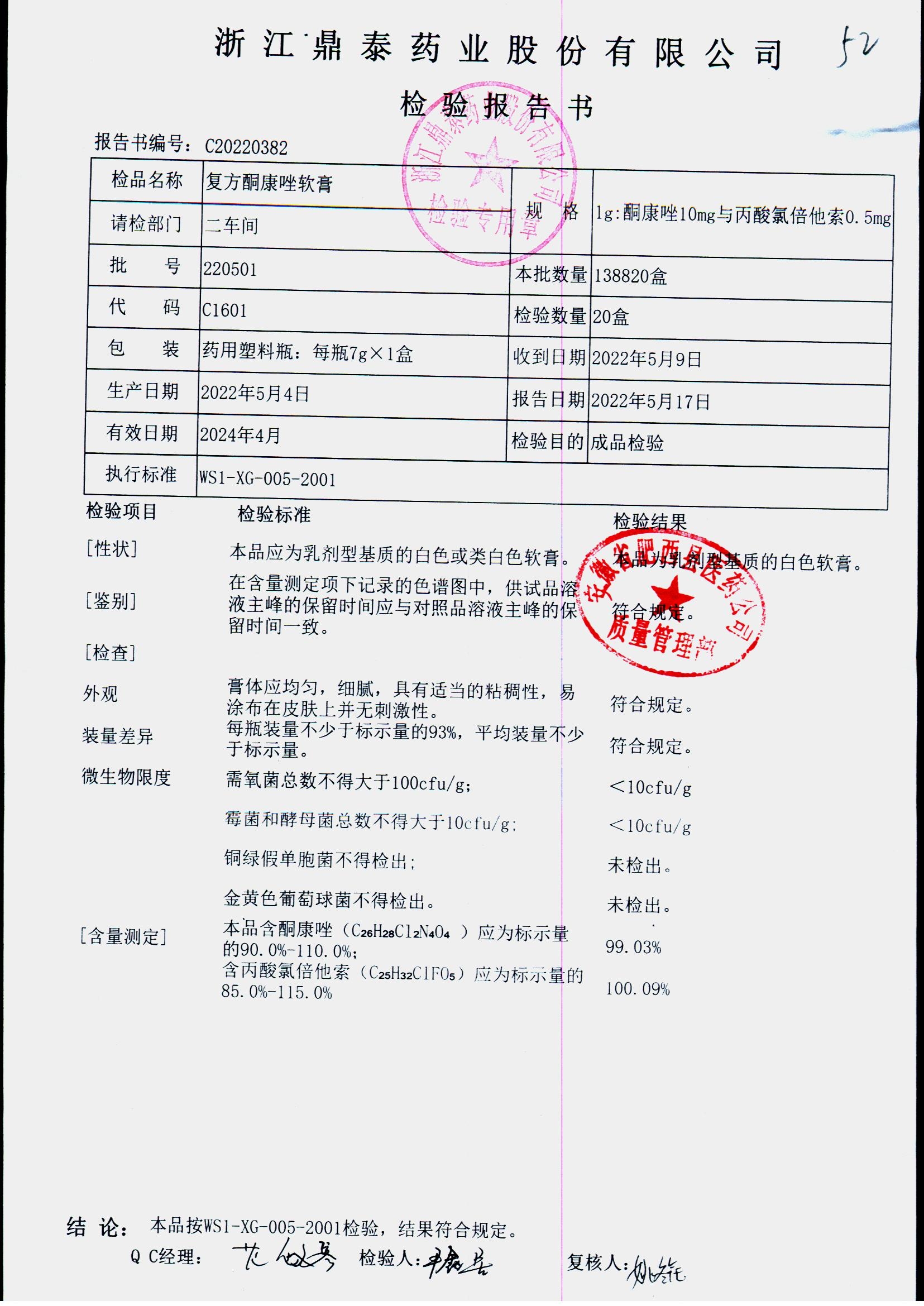 | 復(fù)方酮康唑軟膏 | 1g | 181001 | 查看詳情 |