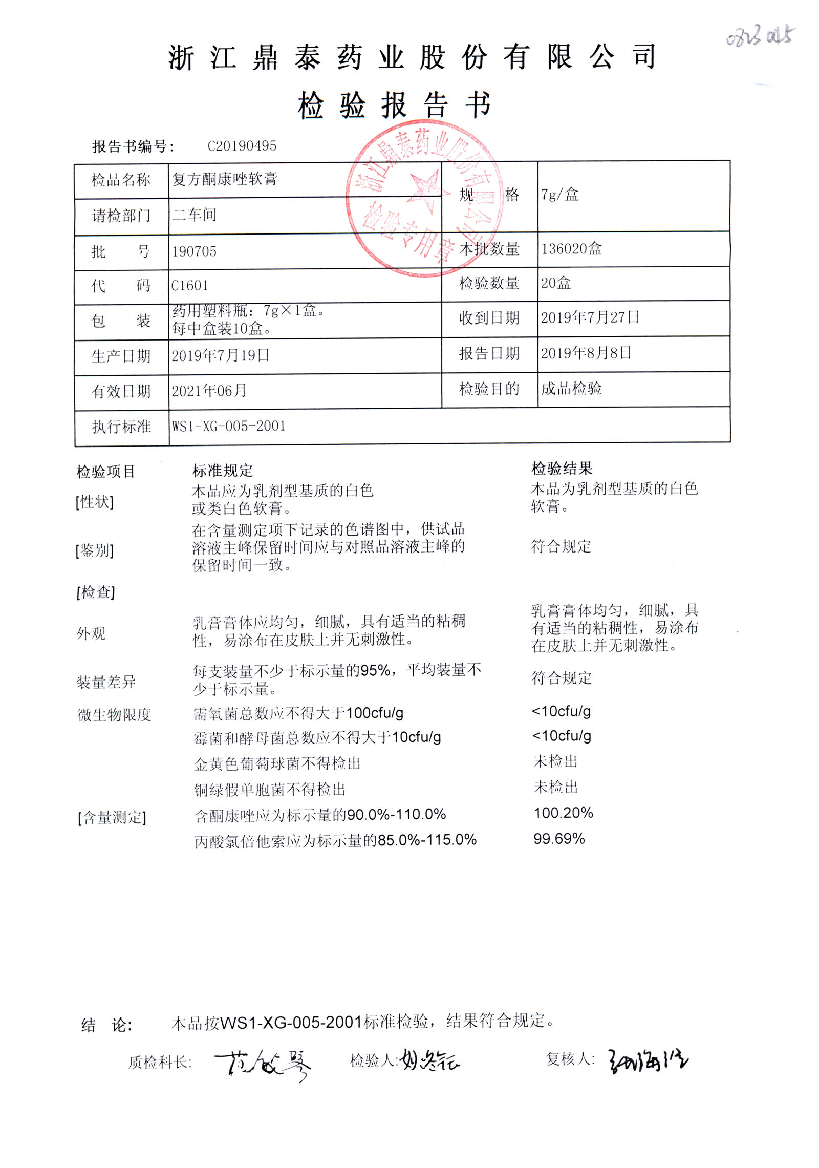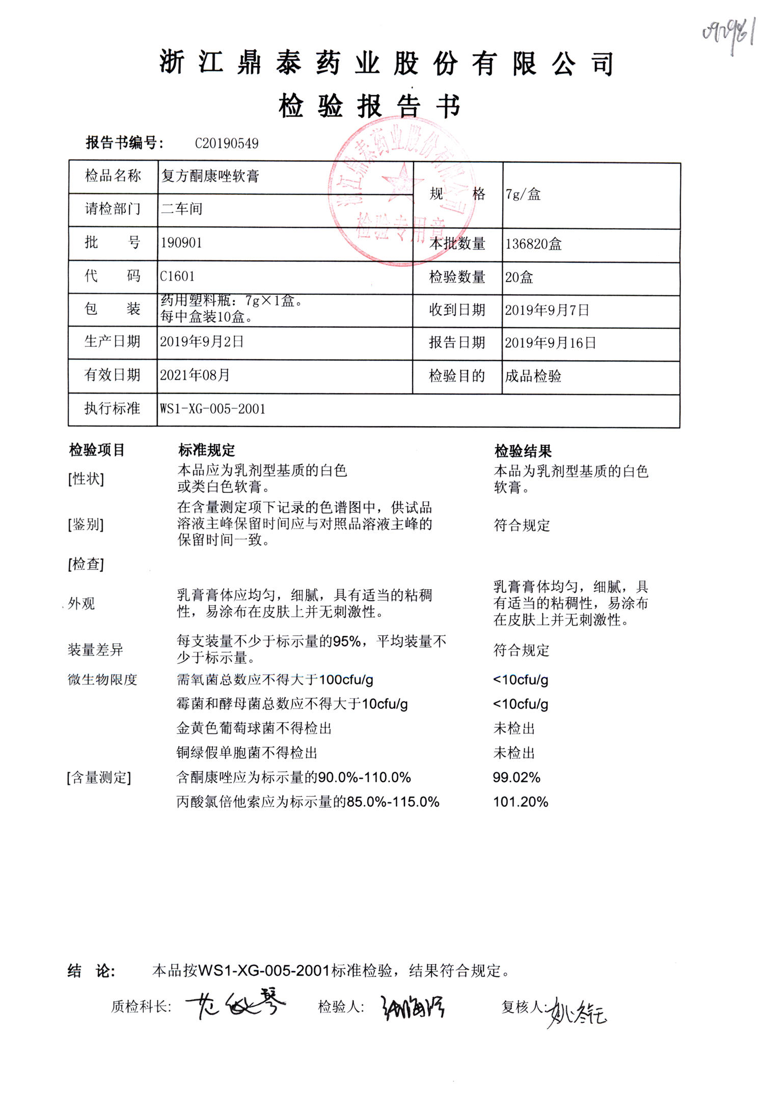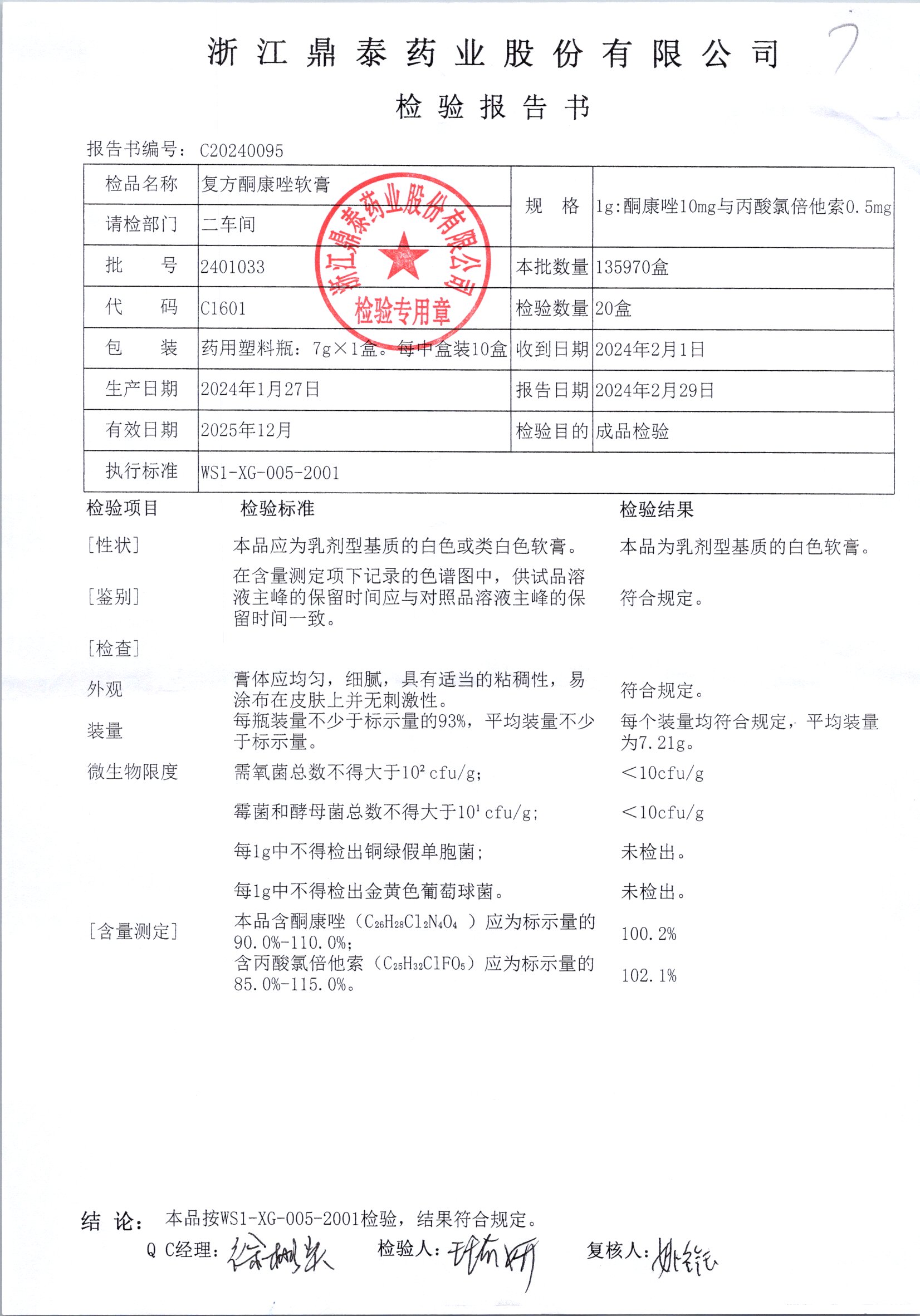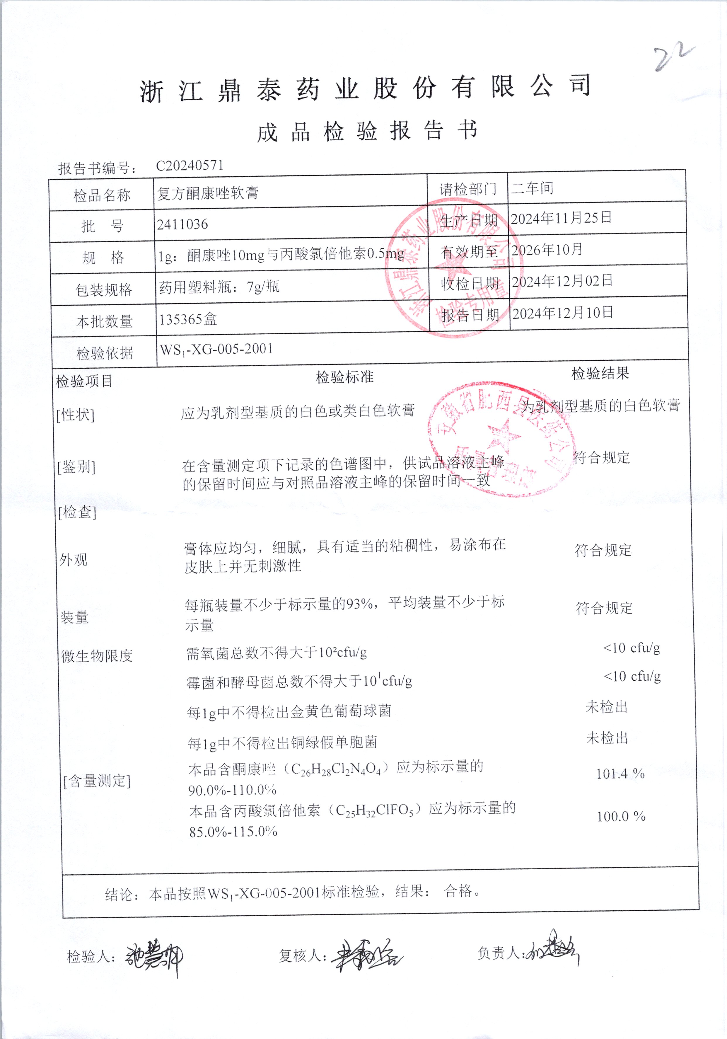 | 復(fù)方酮康唑軟膏 | 1g | 181001 | 查看詳情 |