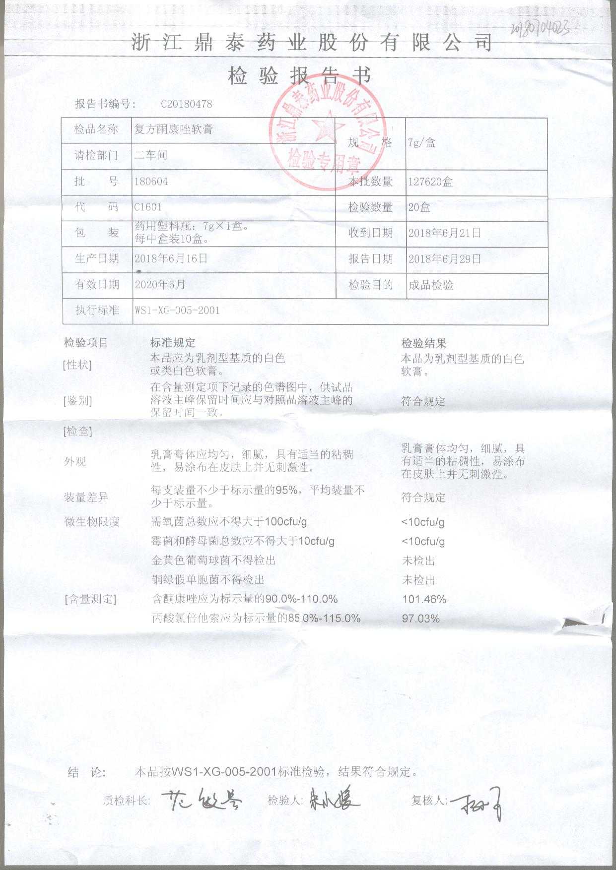 | 復(fù)方酮康唑軟膏 | 1g | 200601 | 查看詳情 |