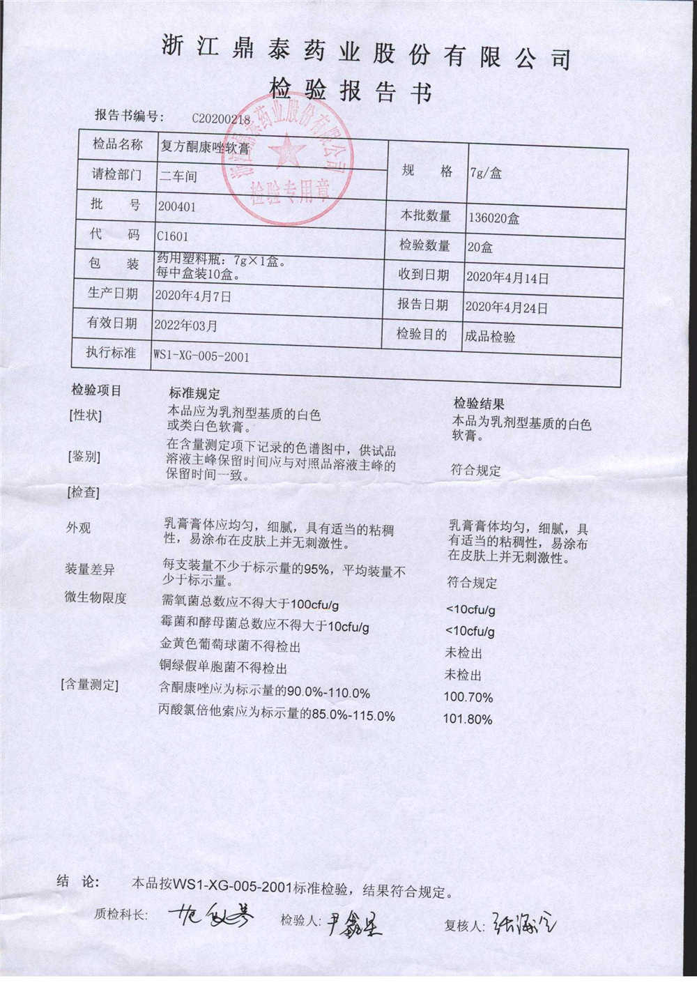 | 復(fù)方酮康唑軟膏 | 1g | 200401 | 查看詳情 |