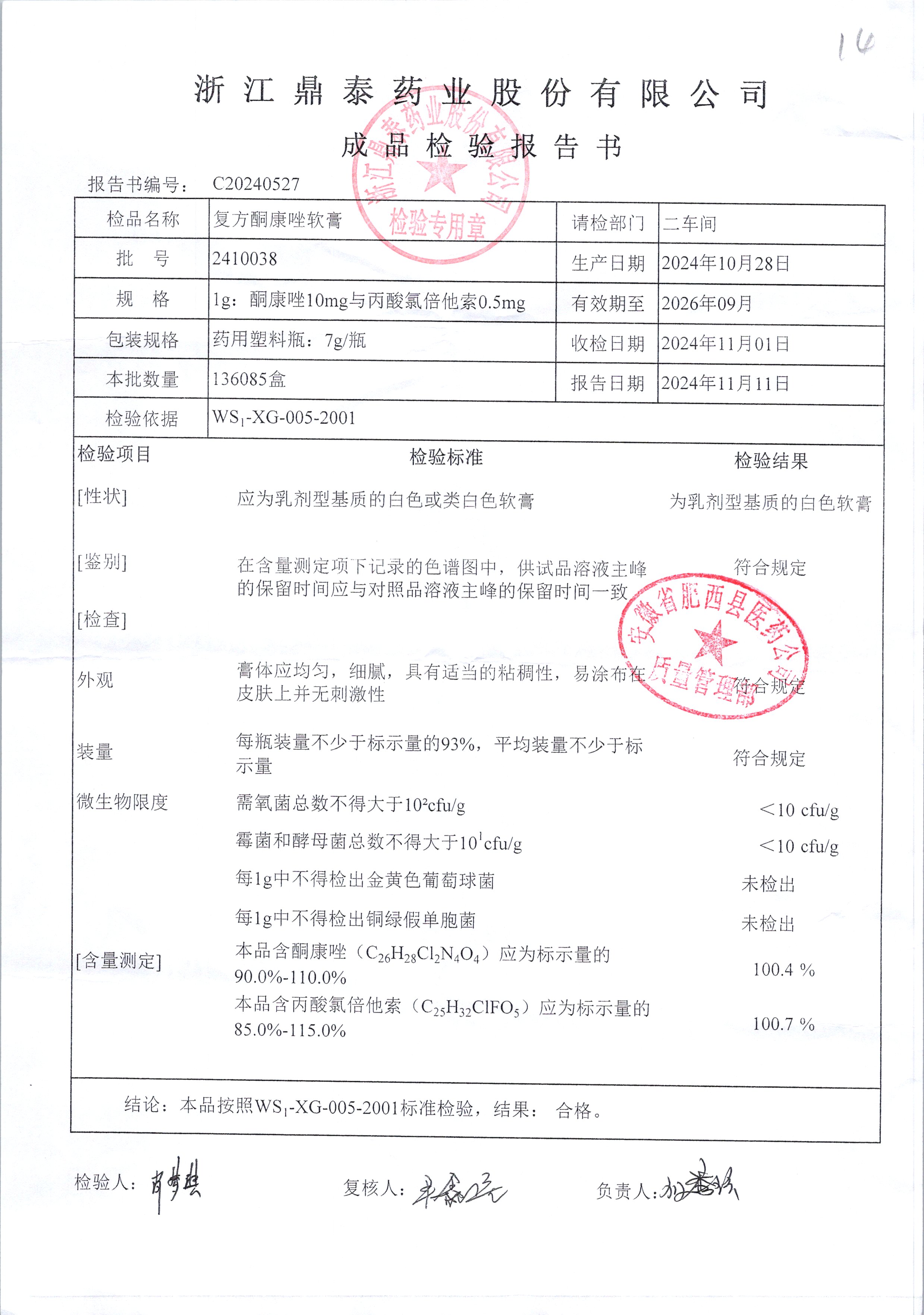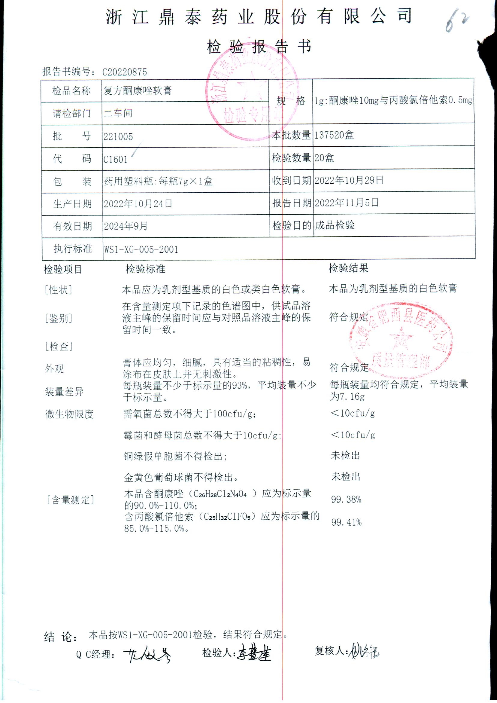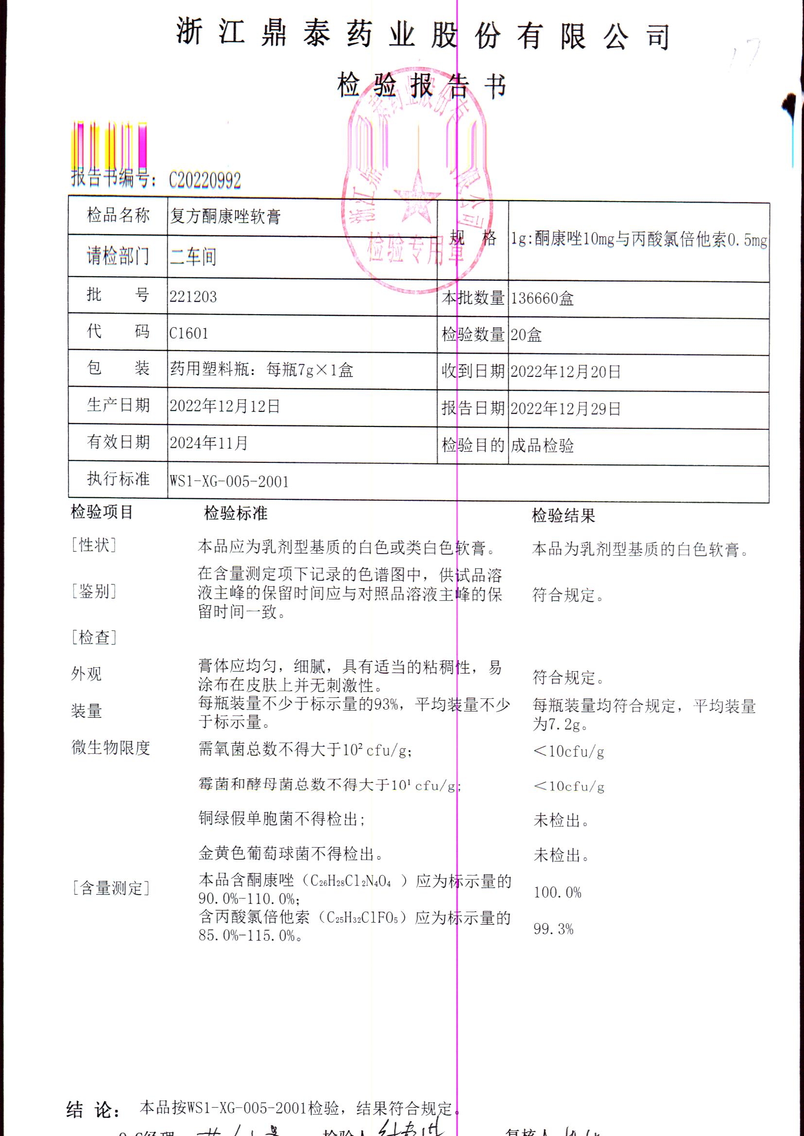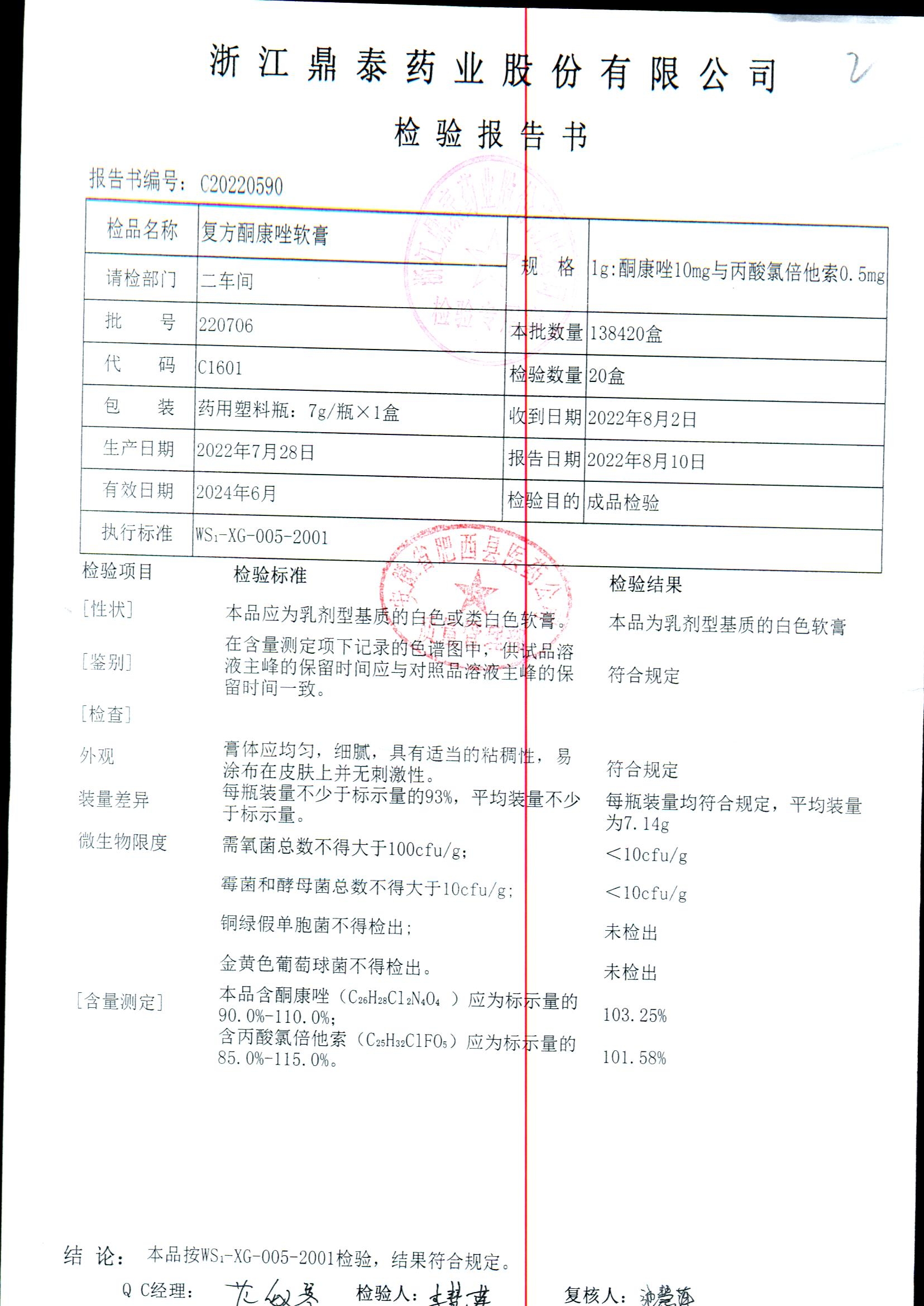 | 復(fù)方酮康唑軟膏 | 1g | 211201 | 查看詳情 |