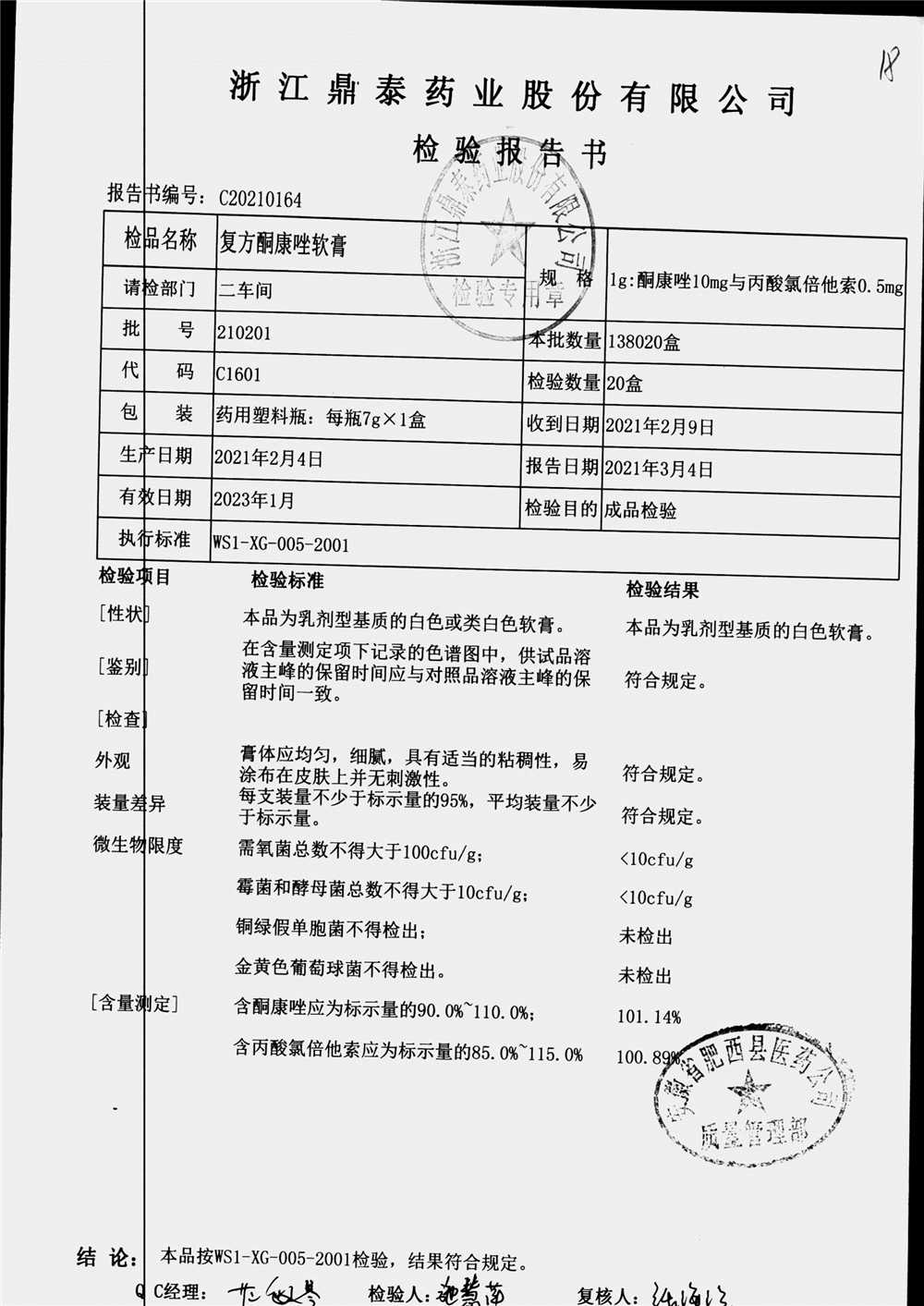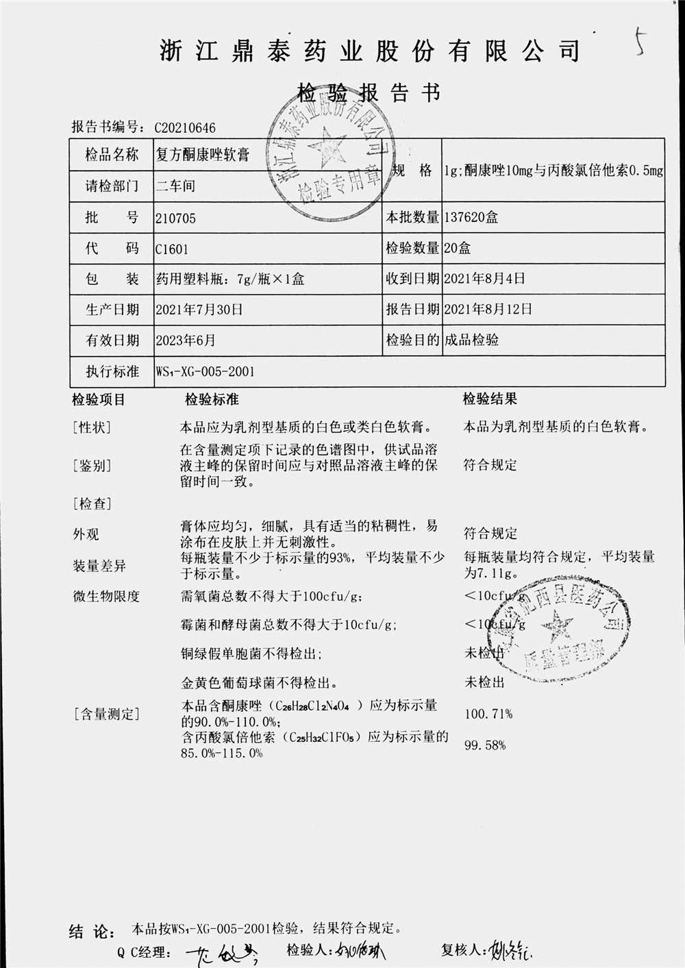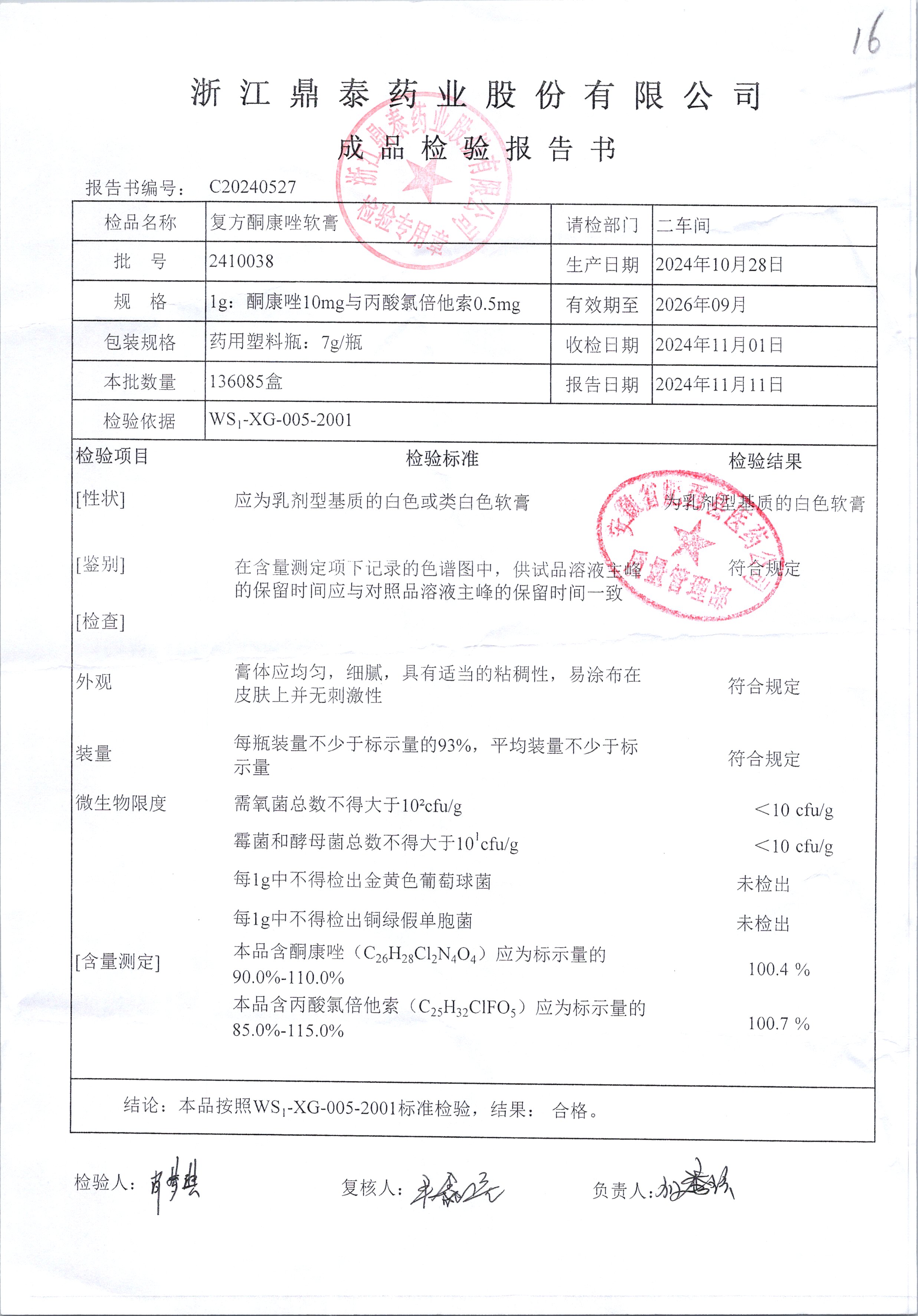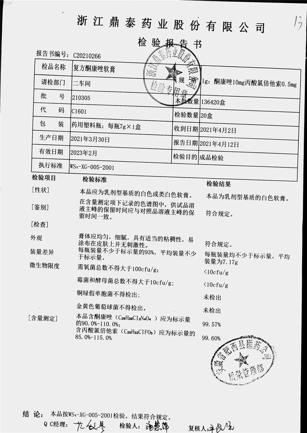 | 復(fù)方酮康唑軟膏 | 1g | 211201 | 查看詳情 |