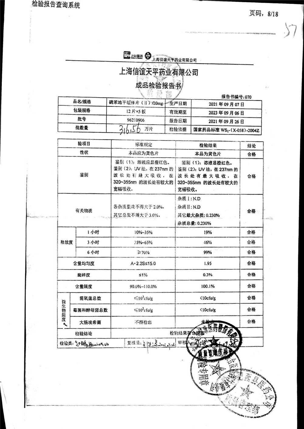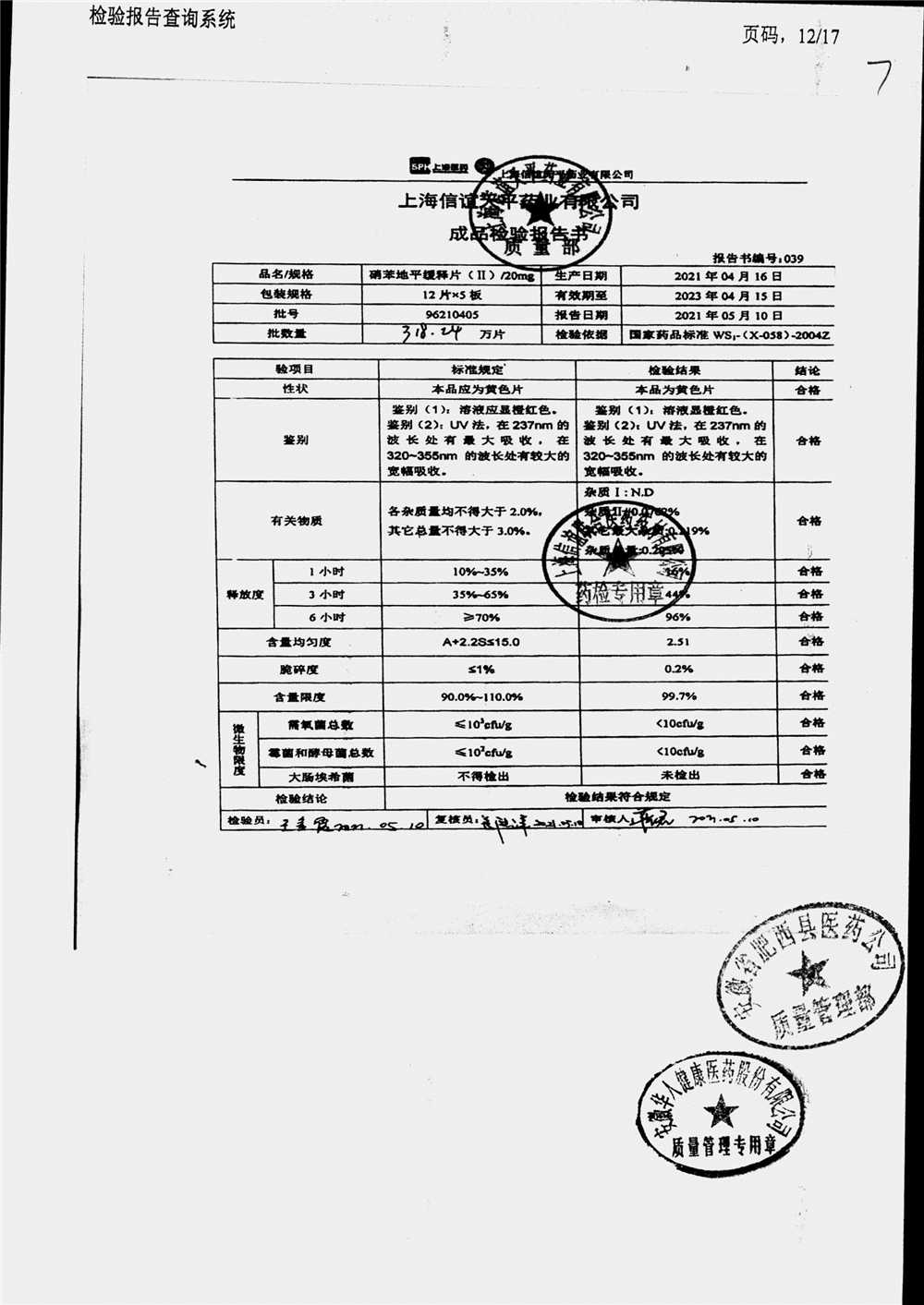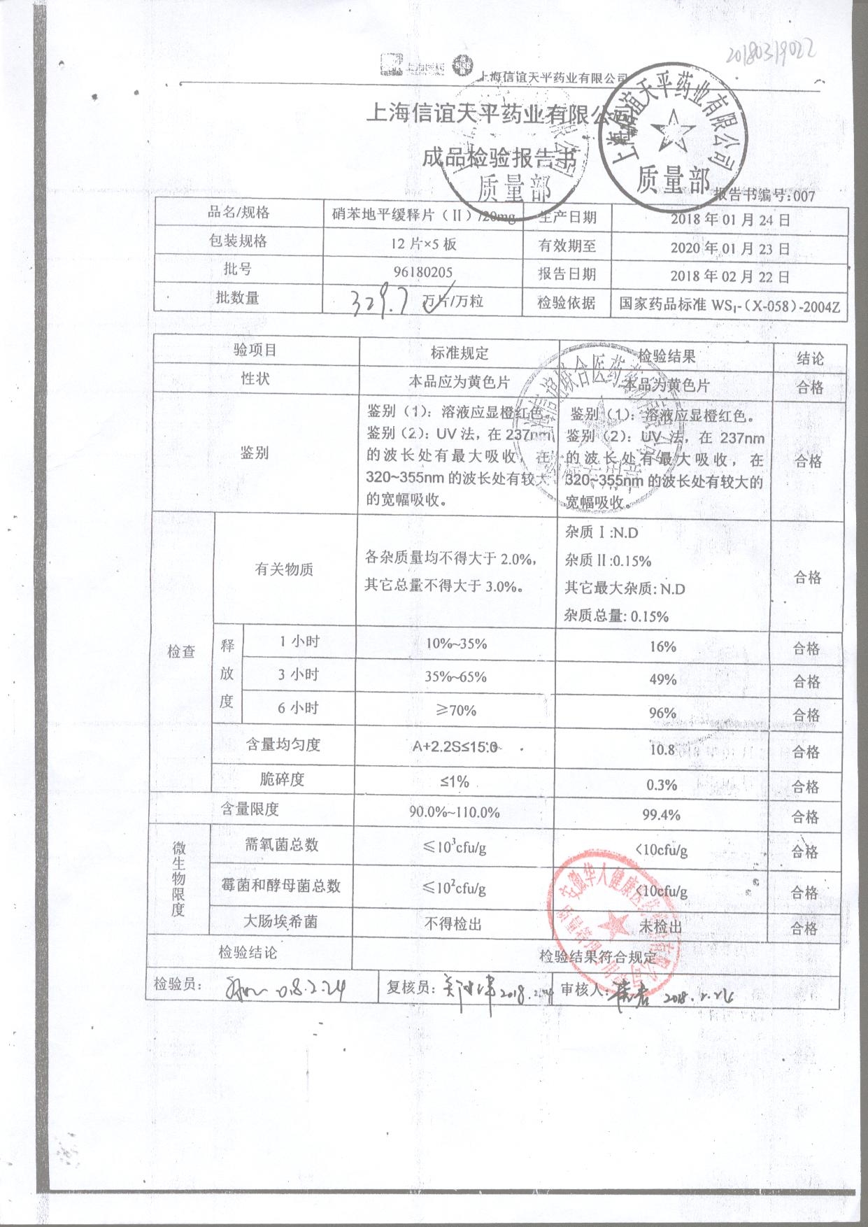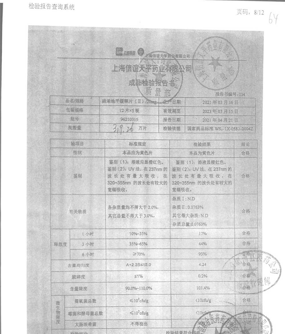 | 硝苯地平緩釋片 | 60s | 96180707 | 查看詳情 |