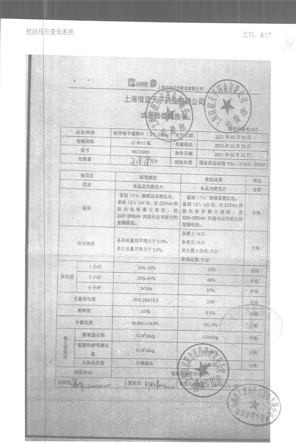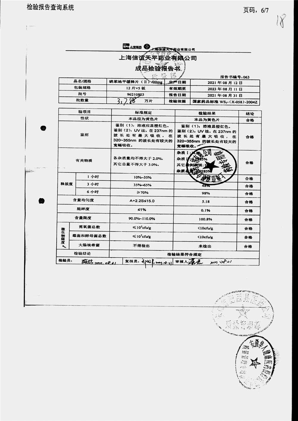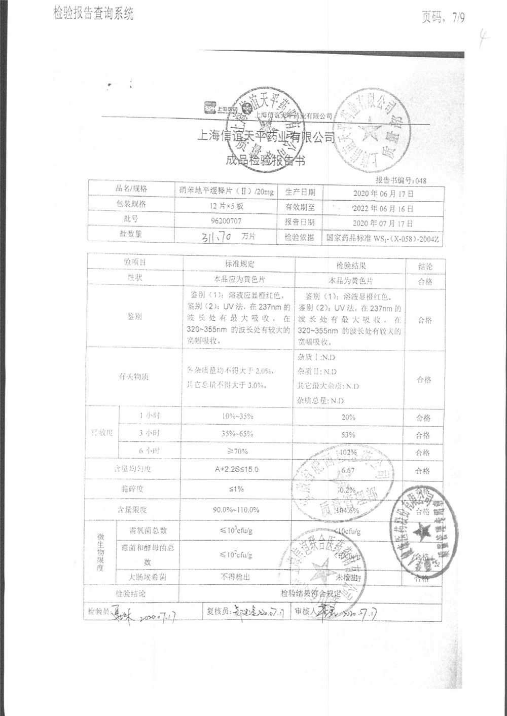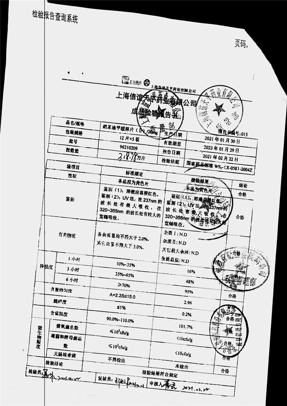 | 硝苯地平緩釋片 | 60s | 96180707 | 查看詳情 |