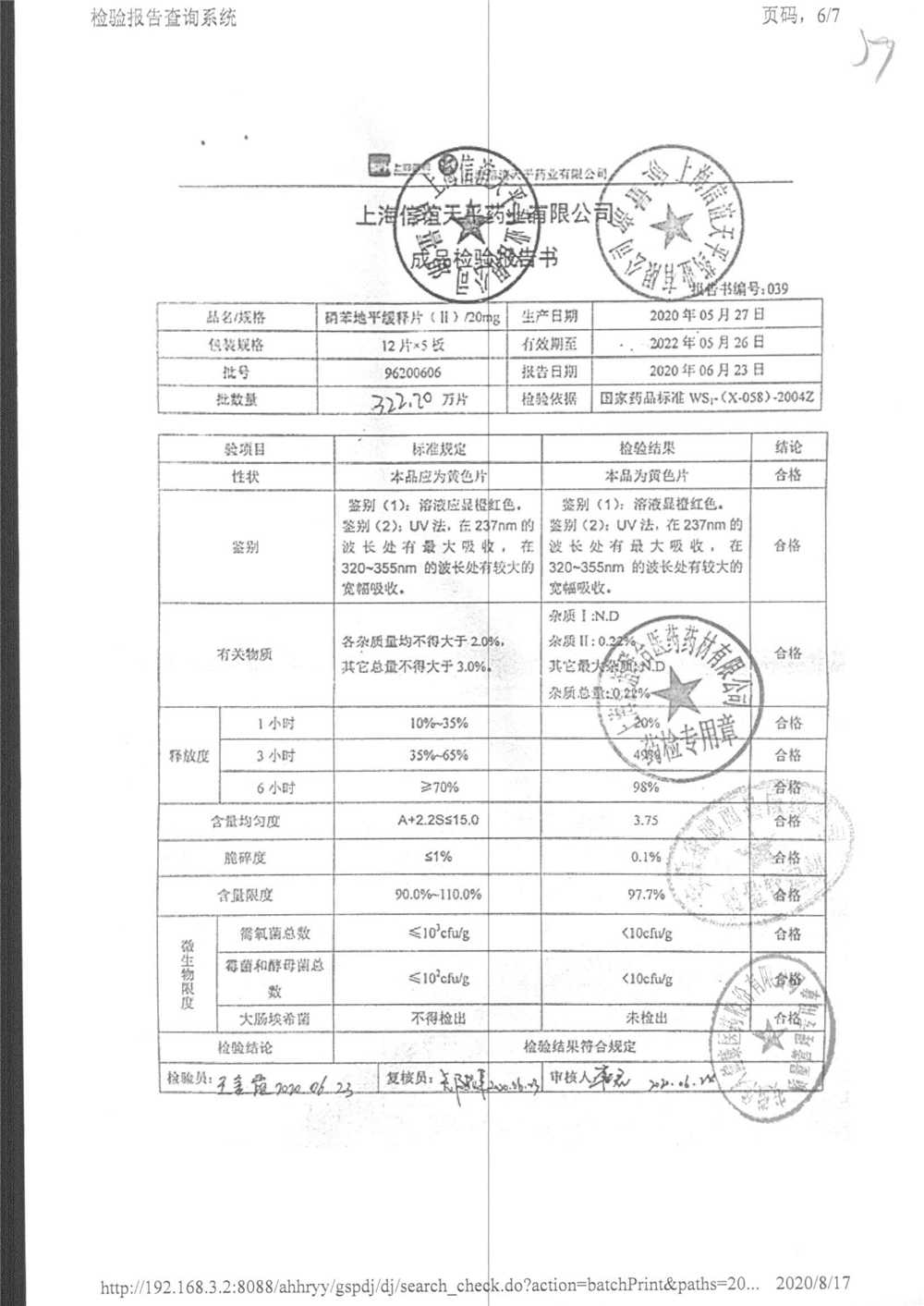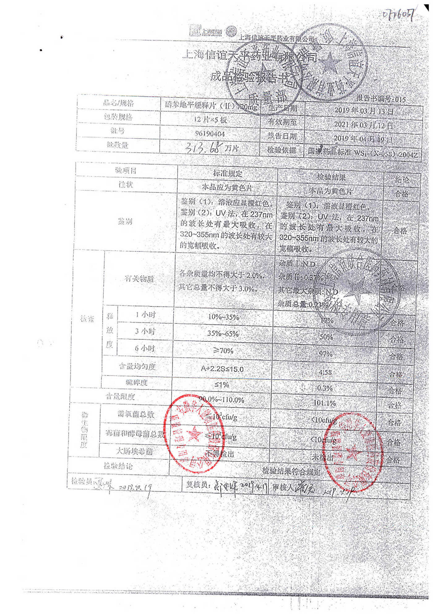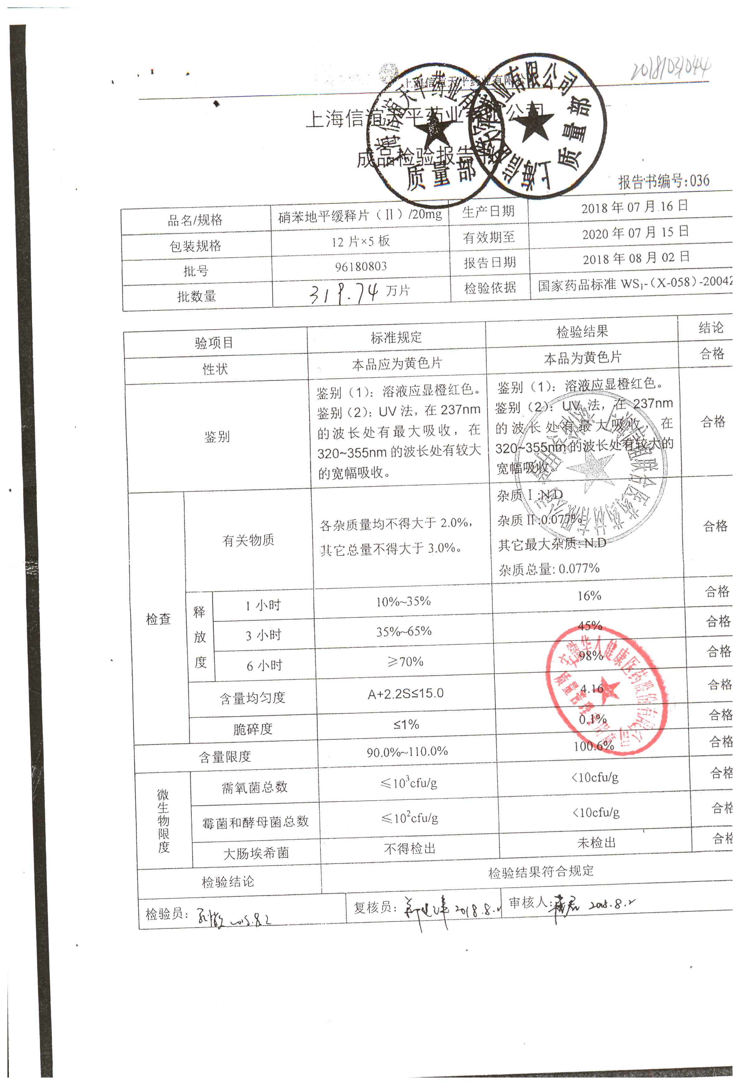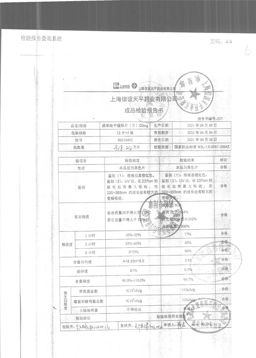 | 硝苯地平緩釋片 | 60s | 96180707 | 查看詳情 |