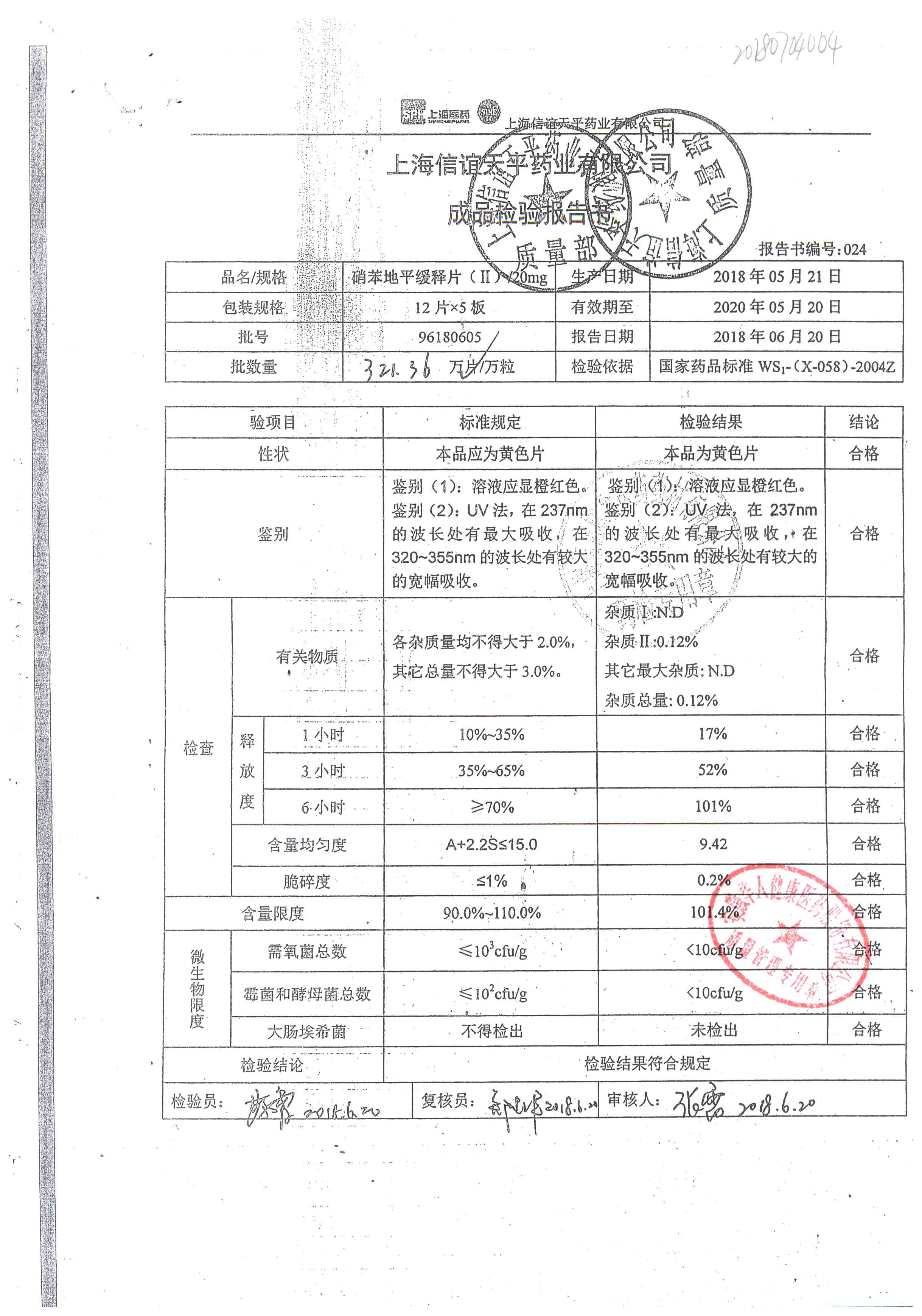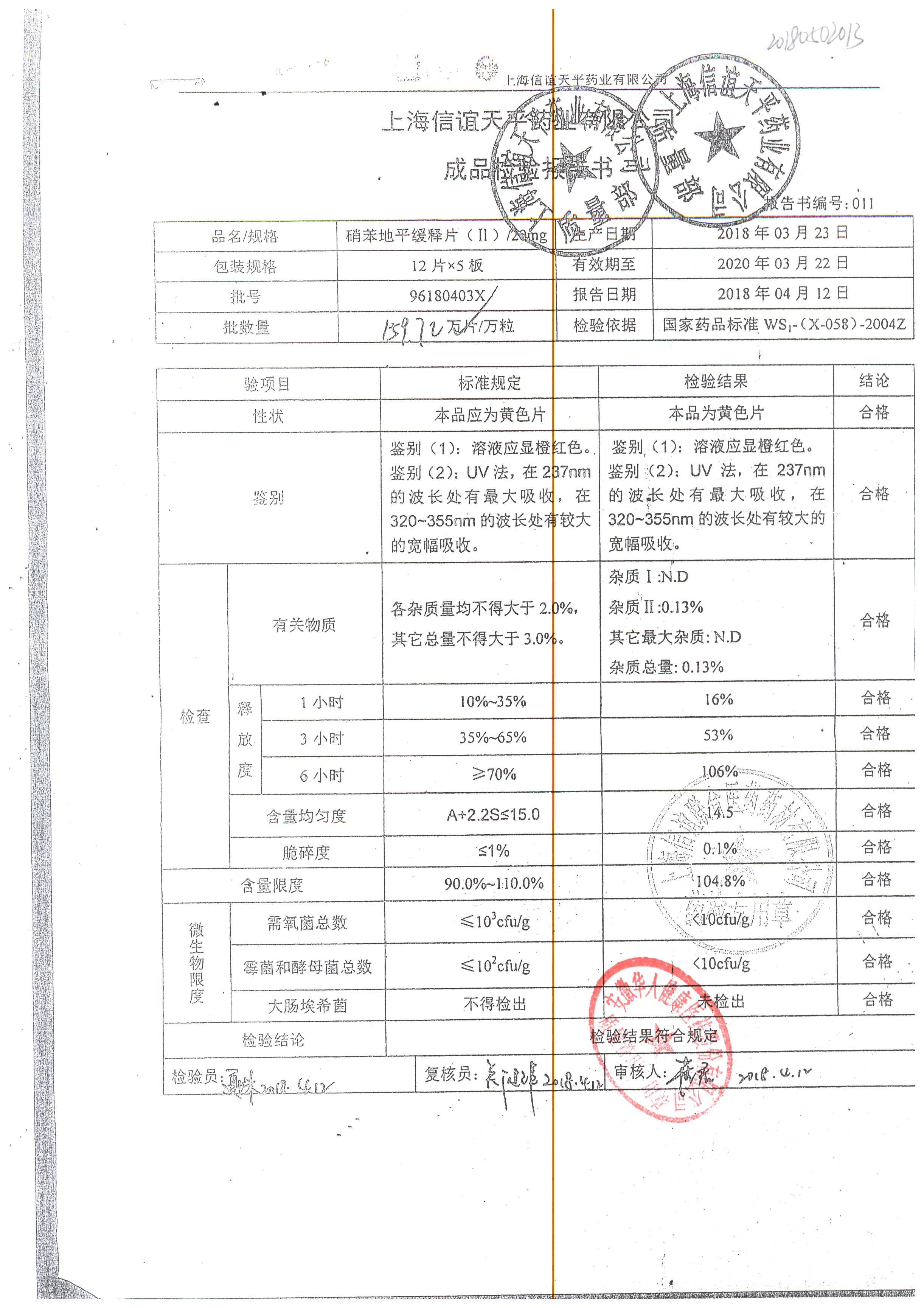 | 硝苯地平緩釋片 | 60s | 96180604 | 查看詳情 |