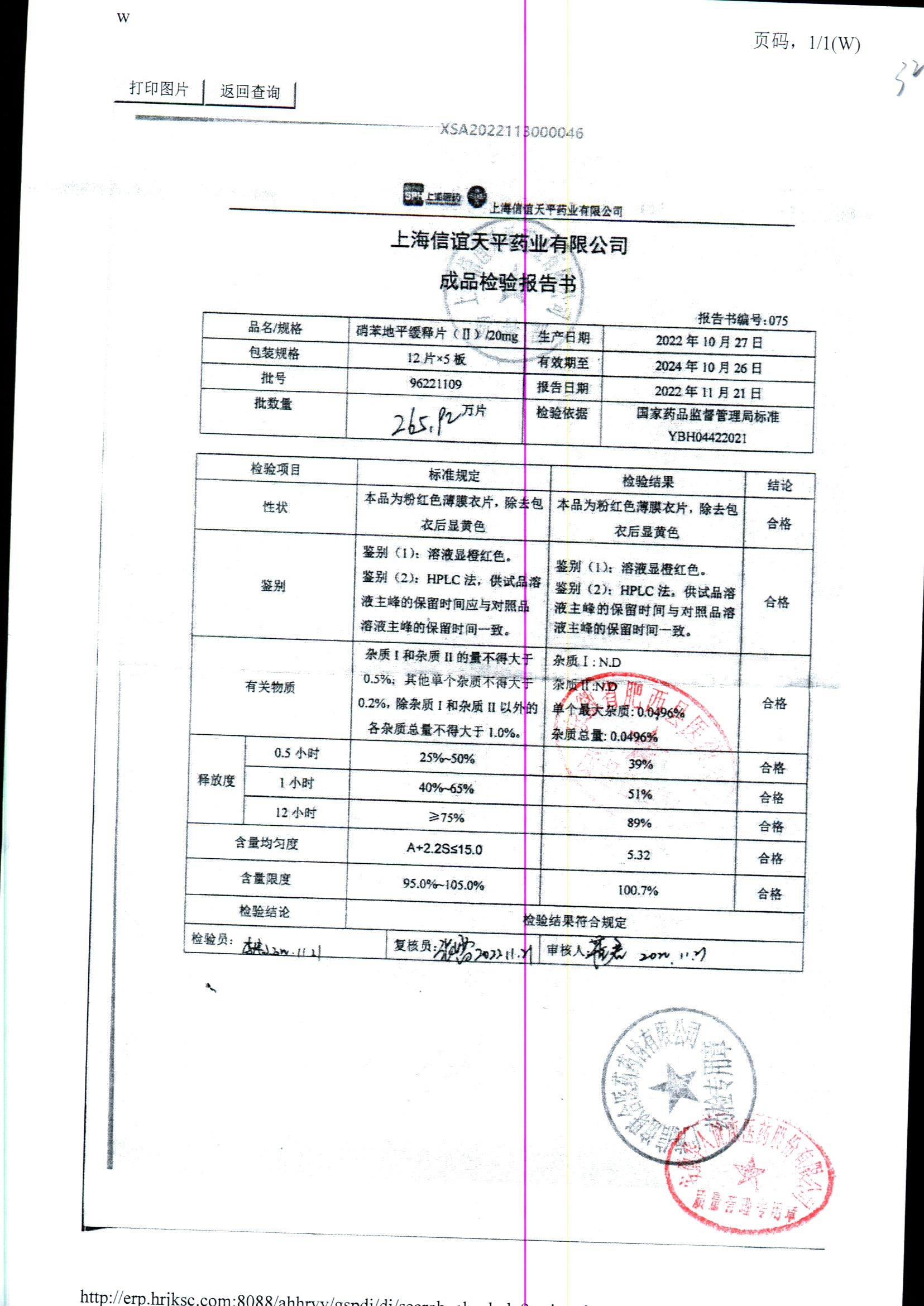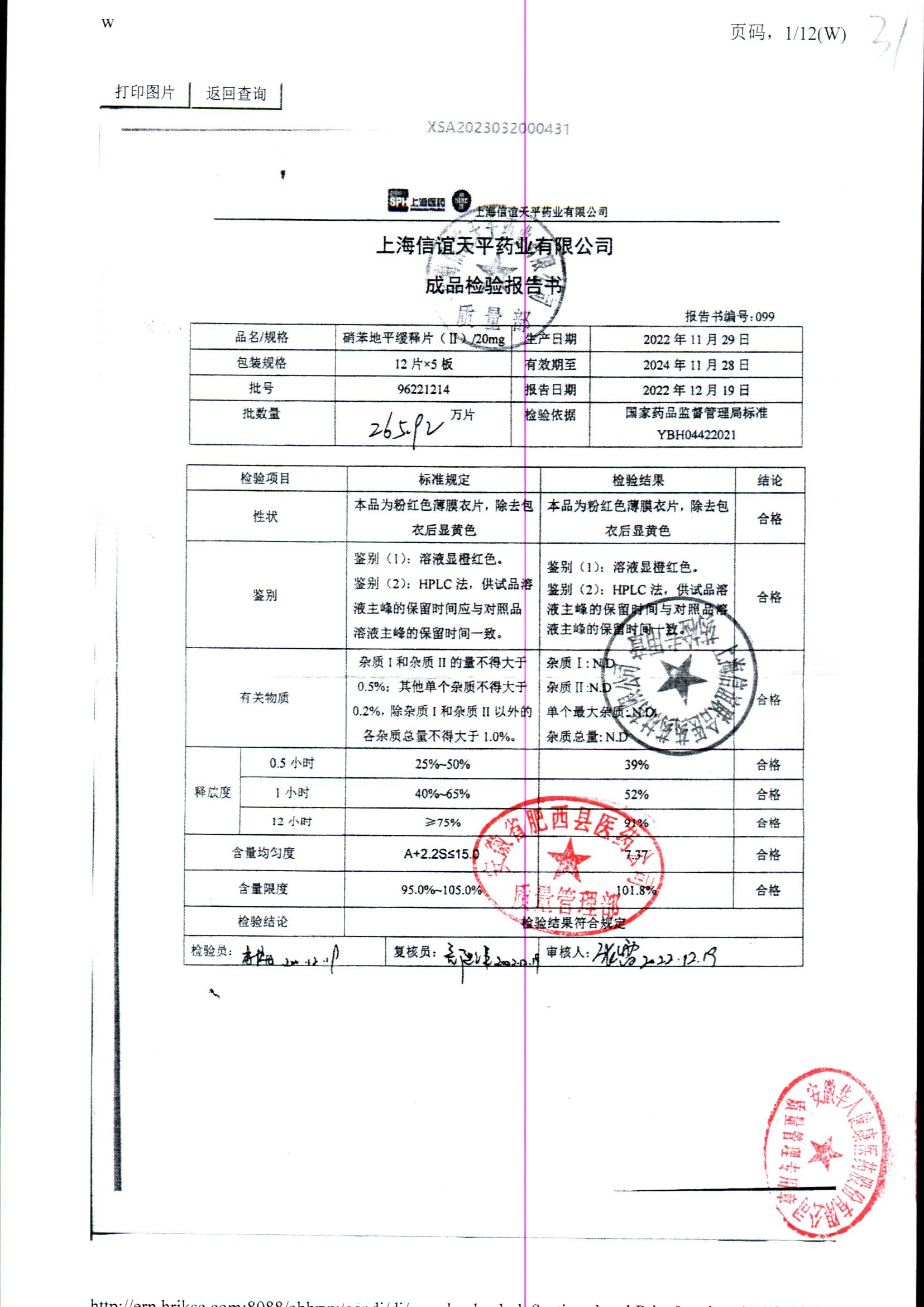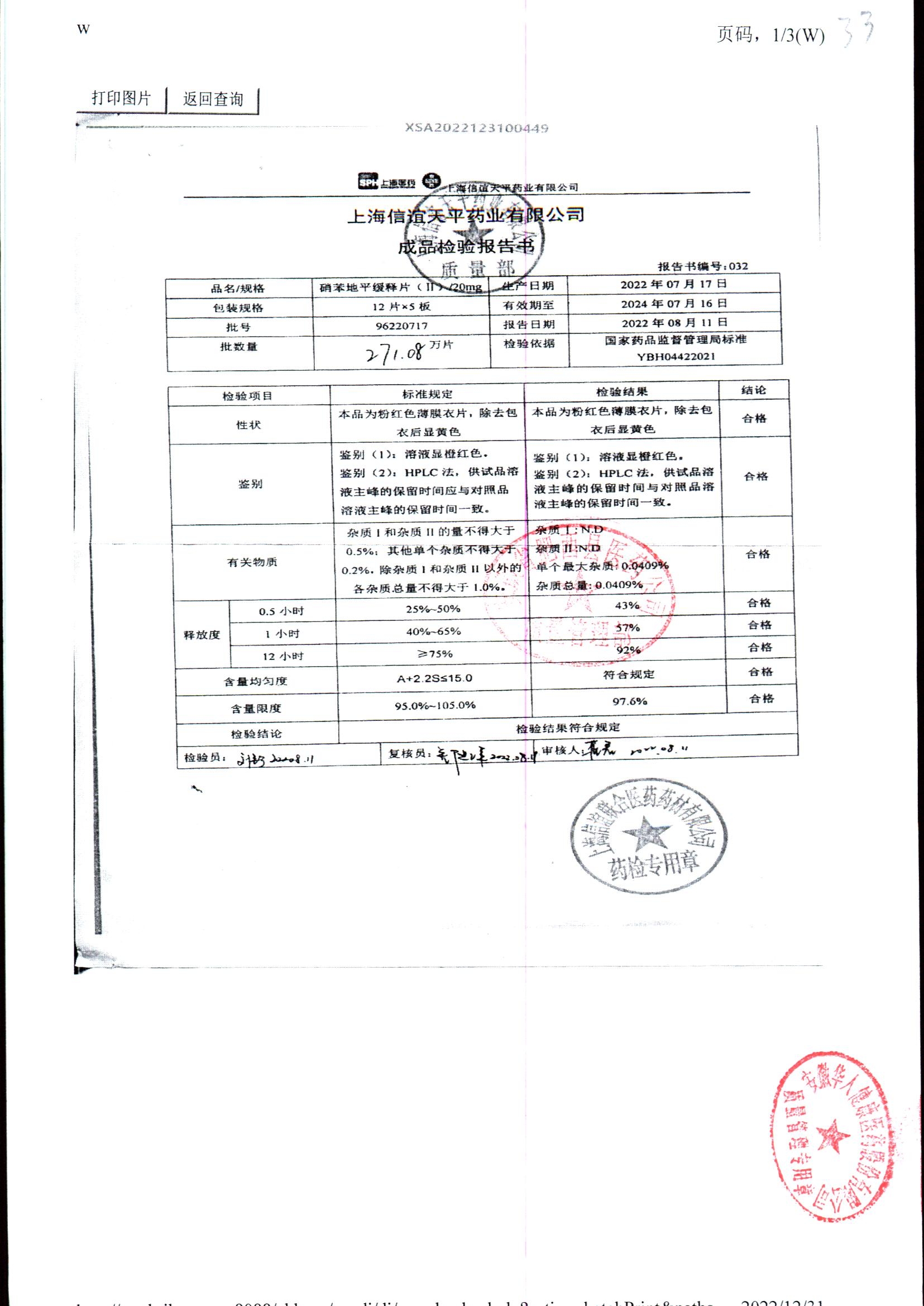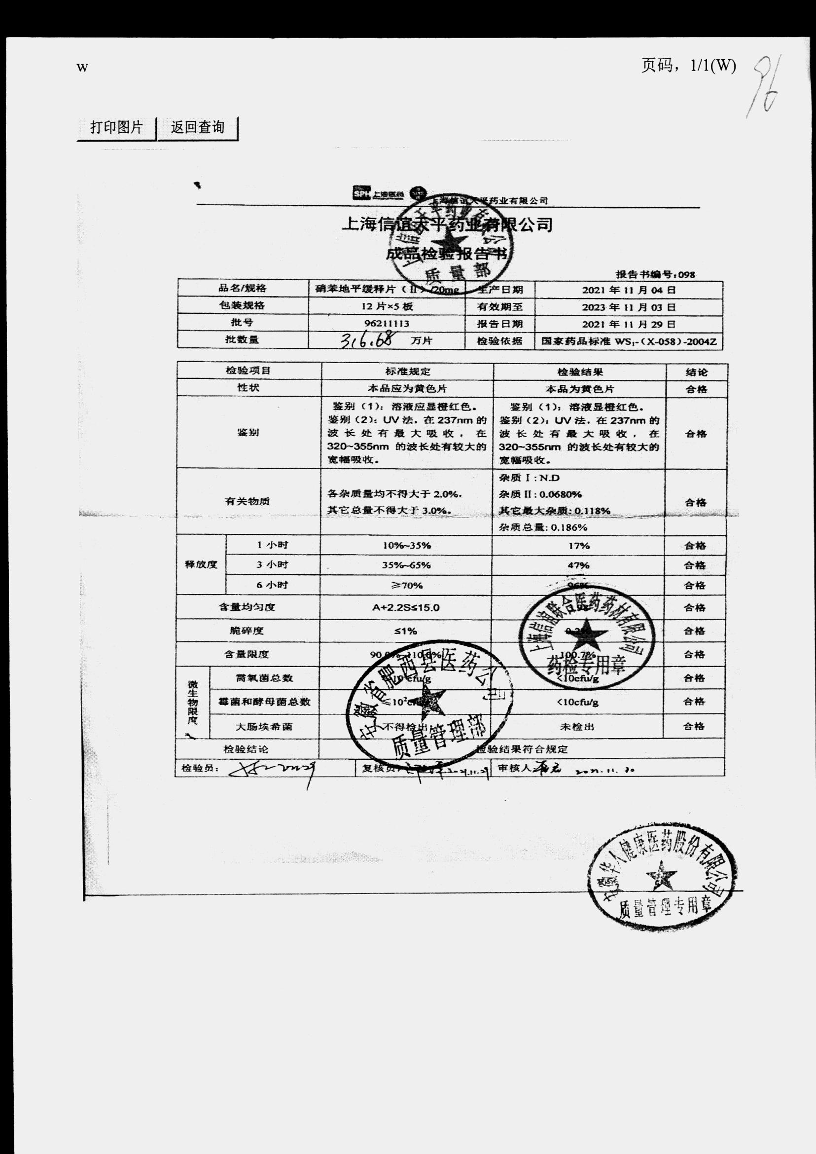 | 硝苯地平緩釋片 | 60s | 96220902/3 | 查看詳情 |