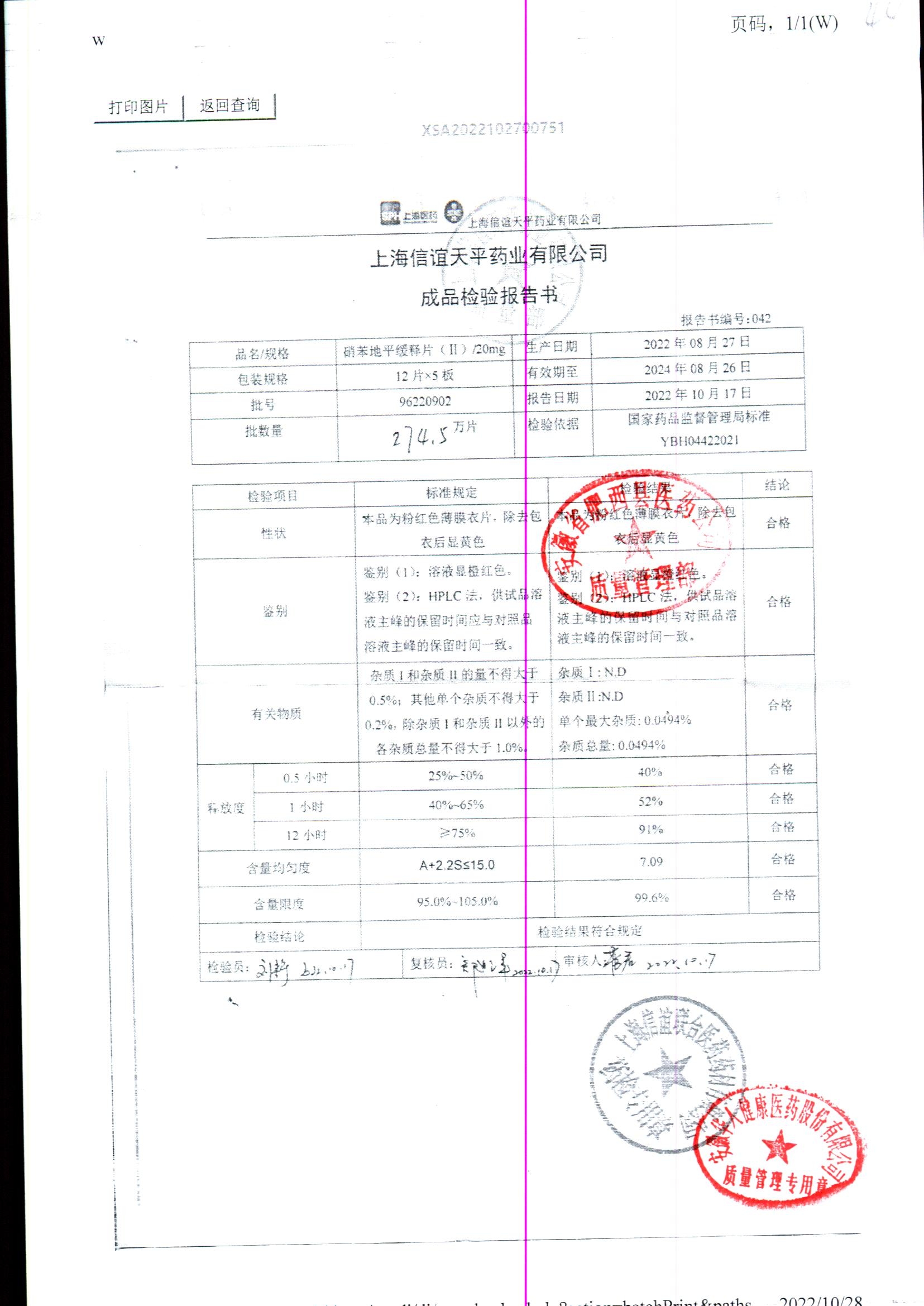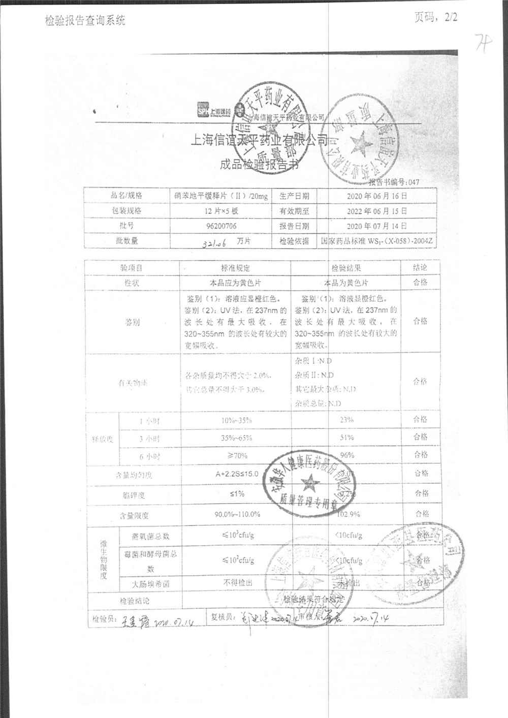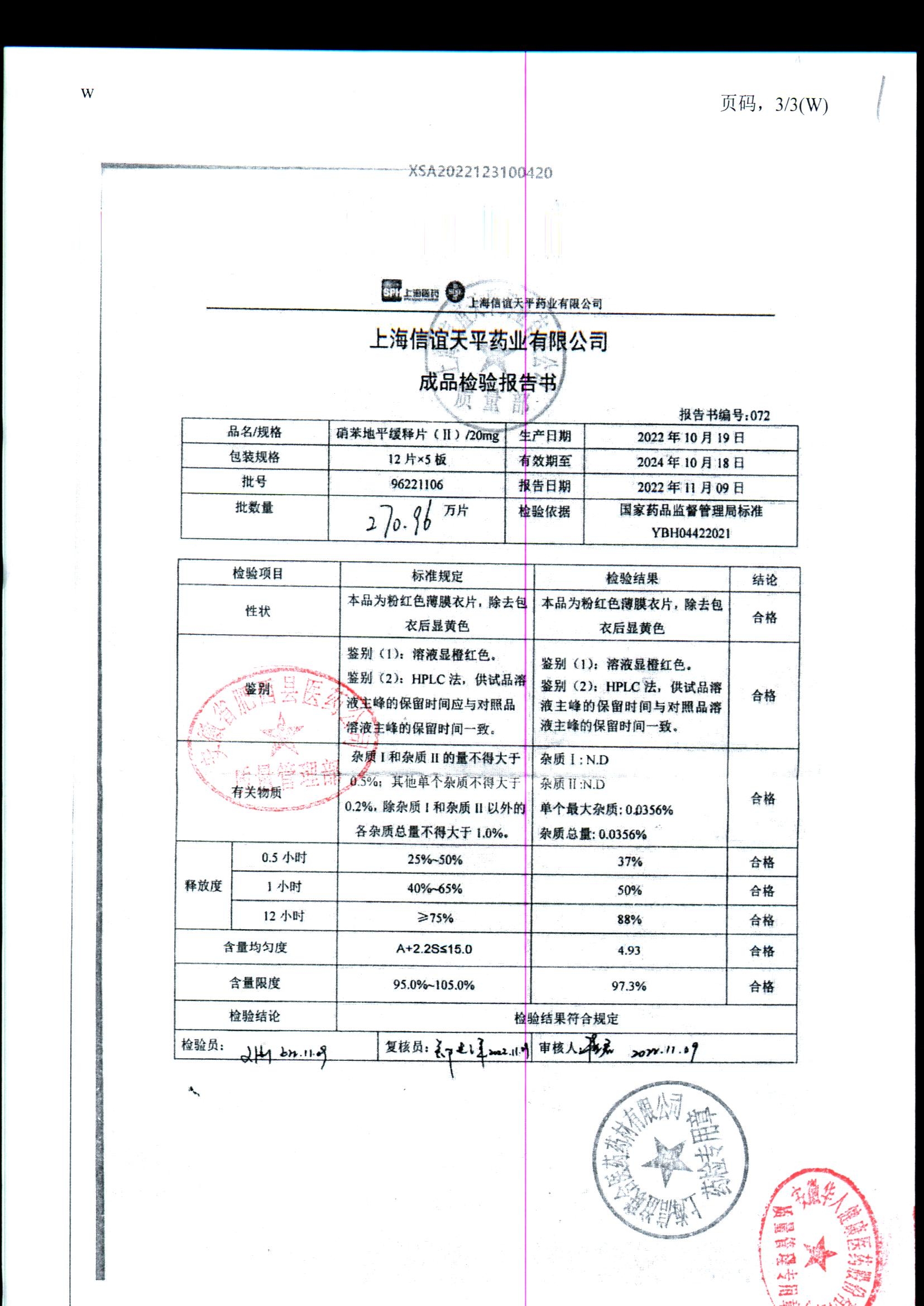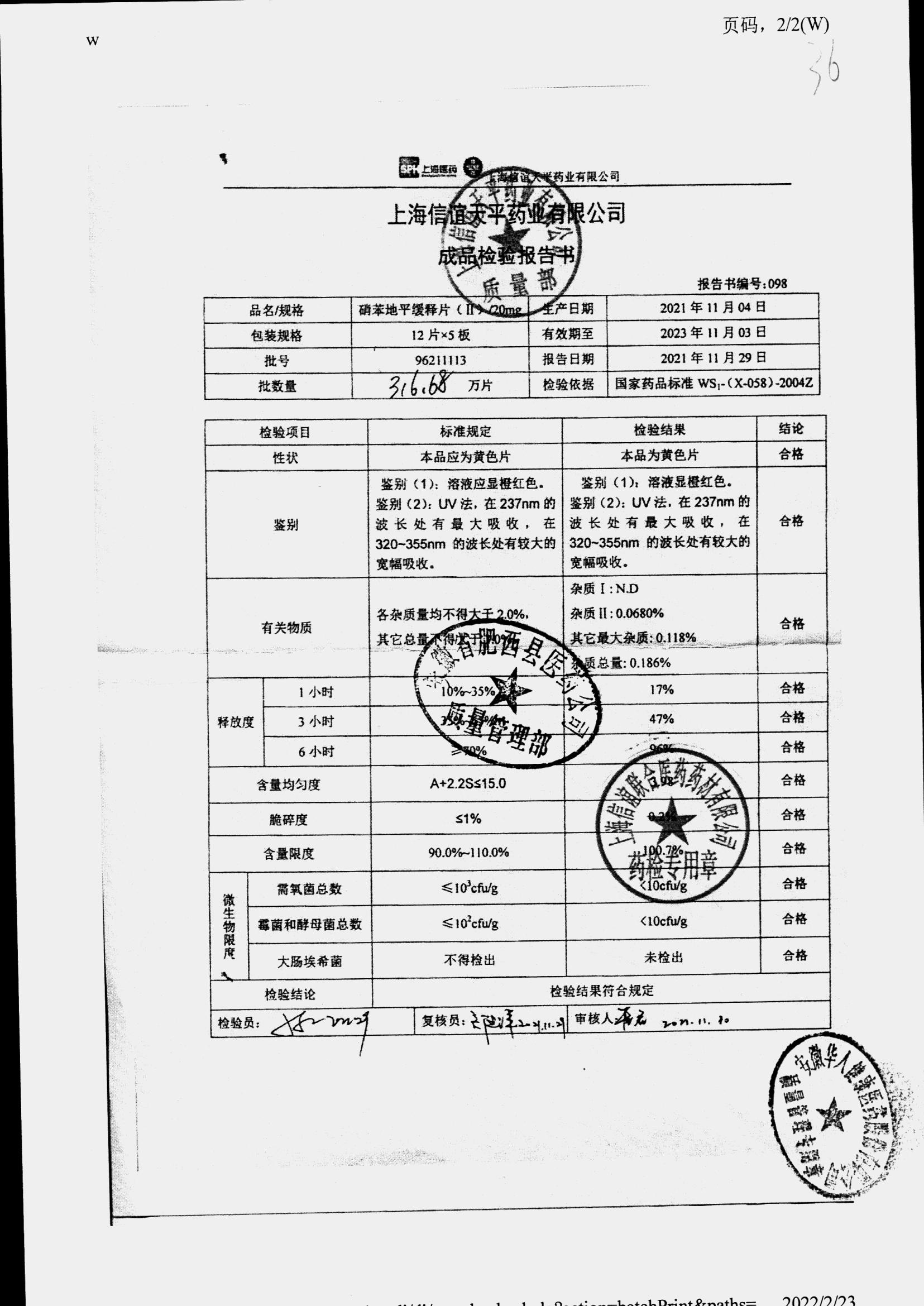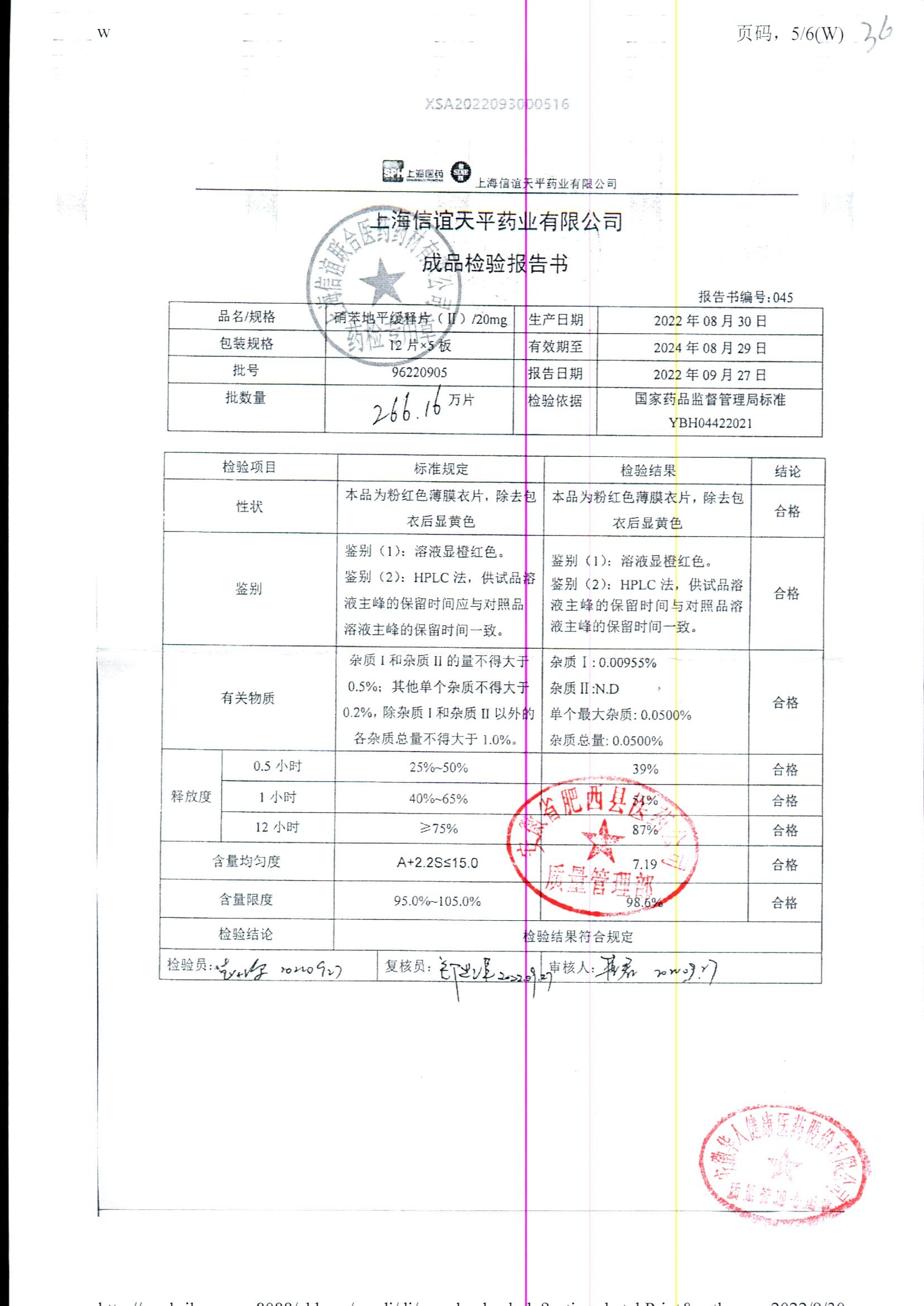 | 硝苯地平緩釋片 | 60s | 96220902/3 | 查看詳情 |