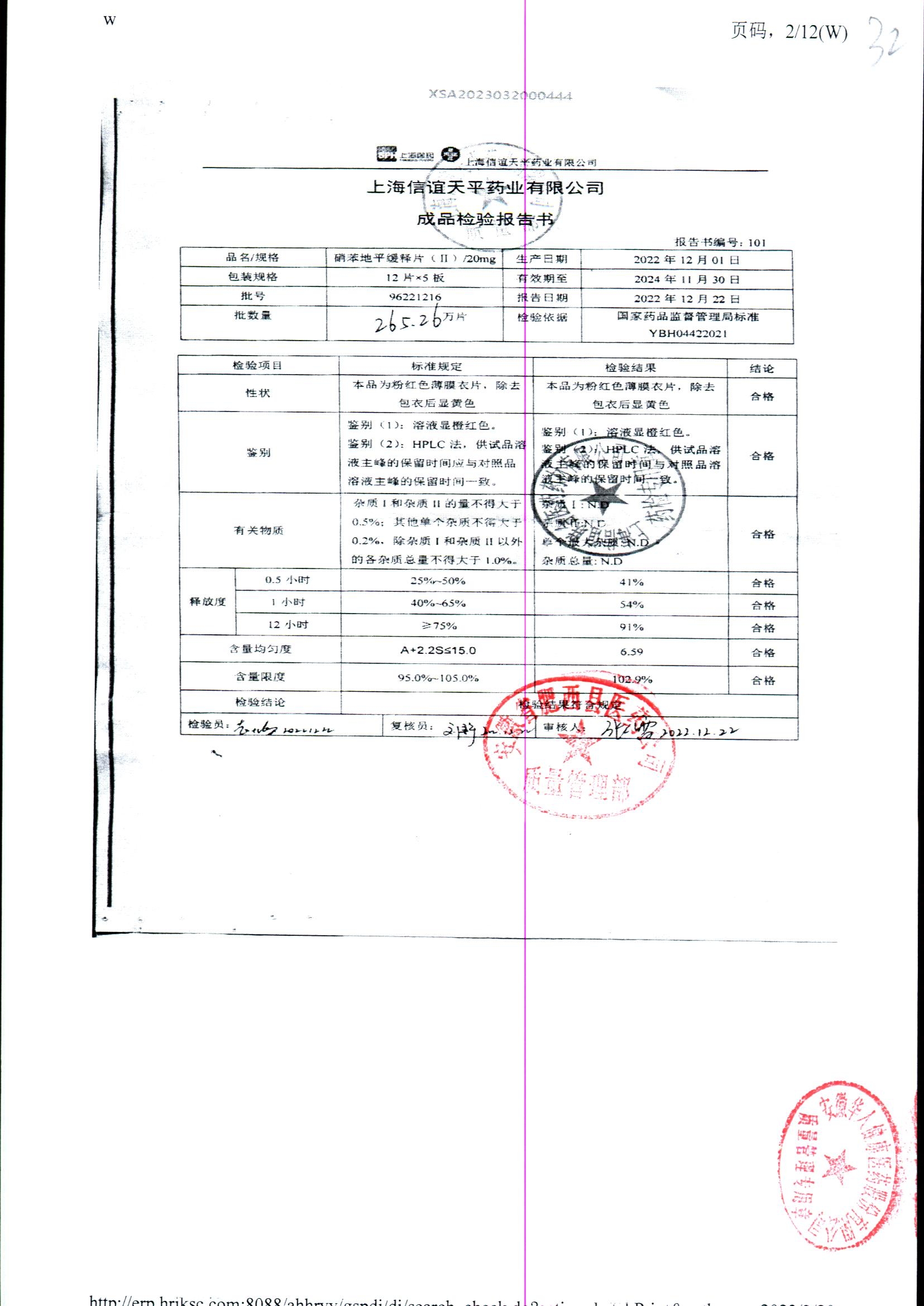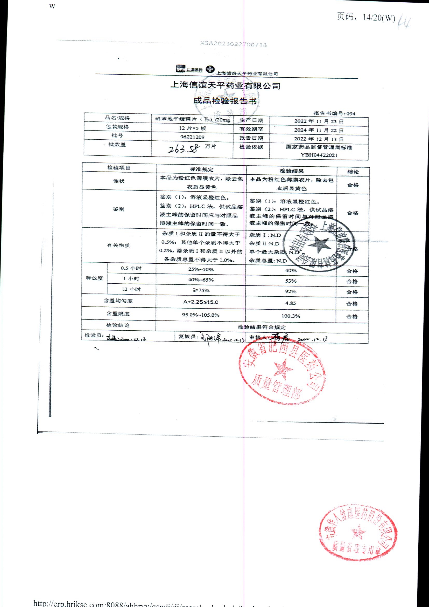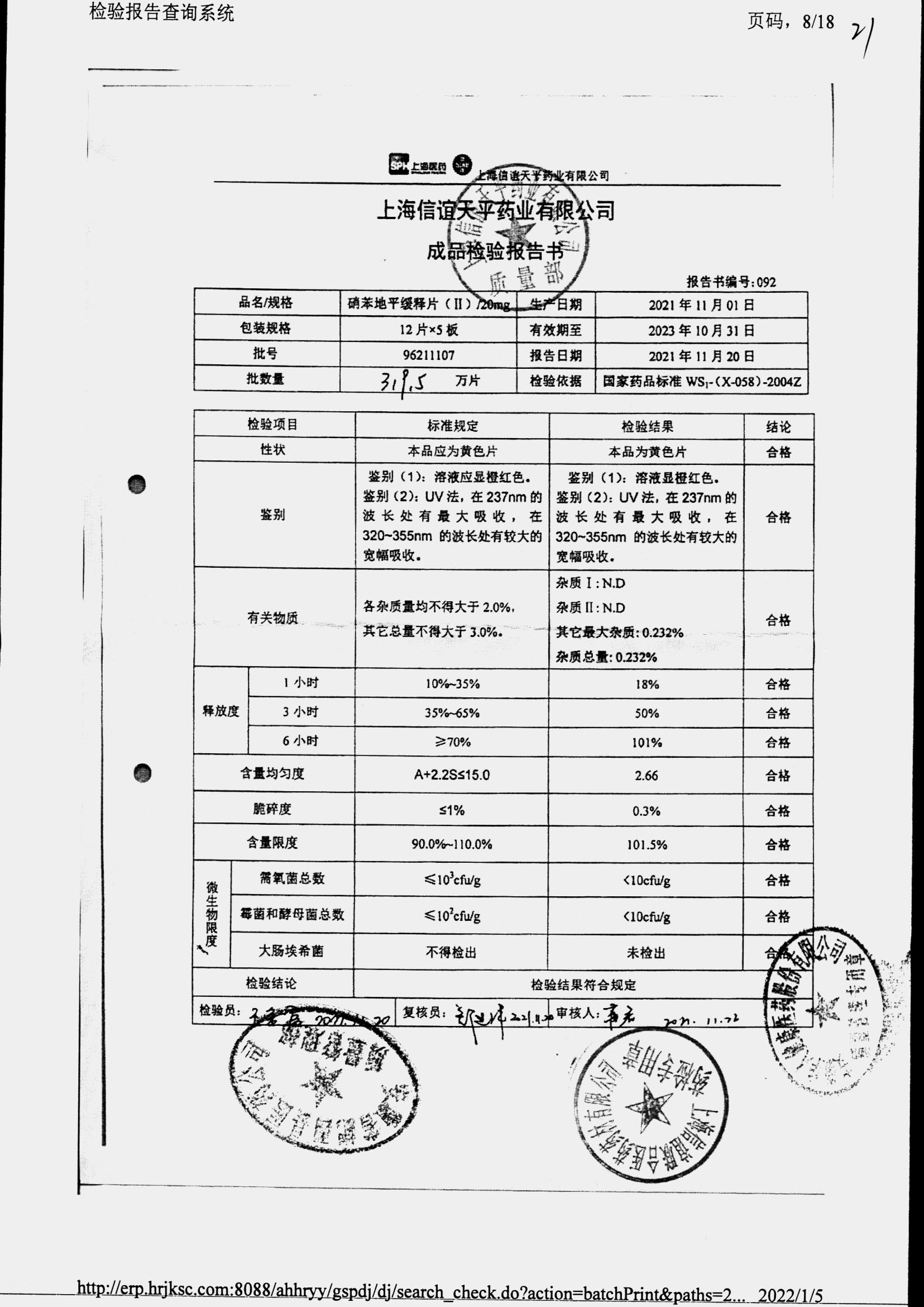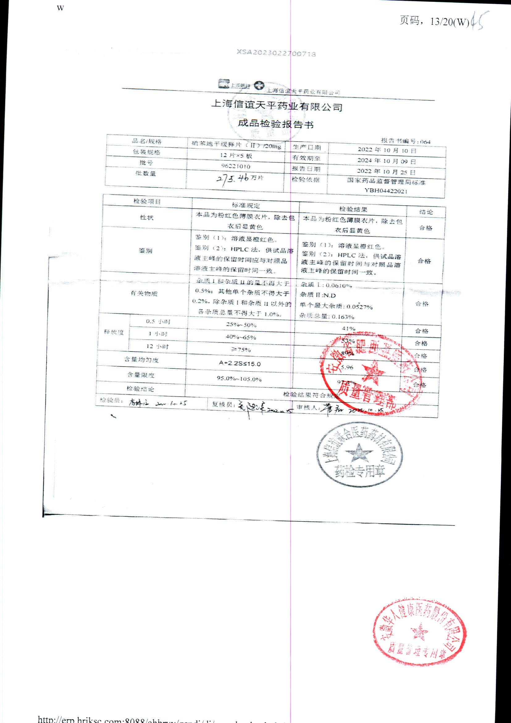| 硝苯地平緩釋片 | 60s | 96220902/3 | 查看詳情 |