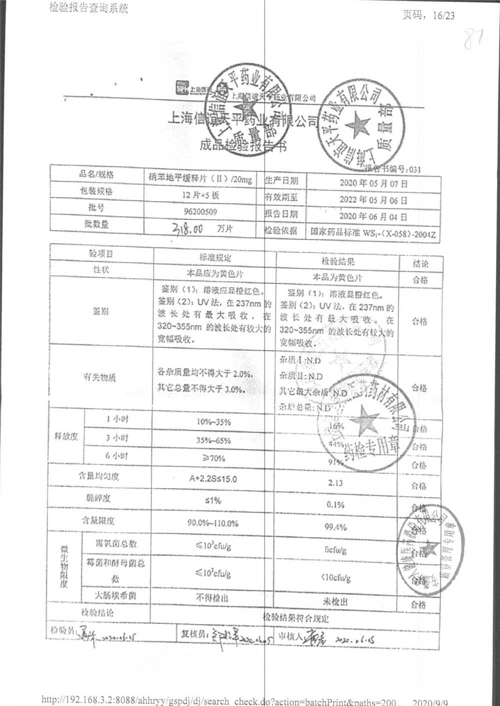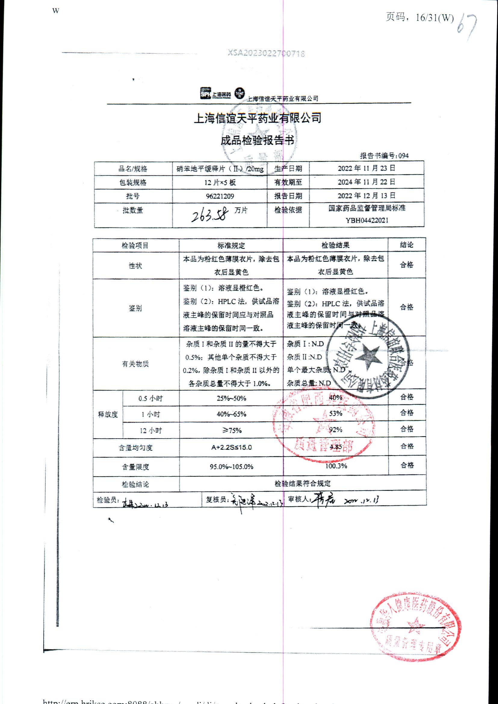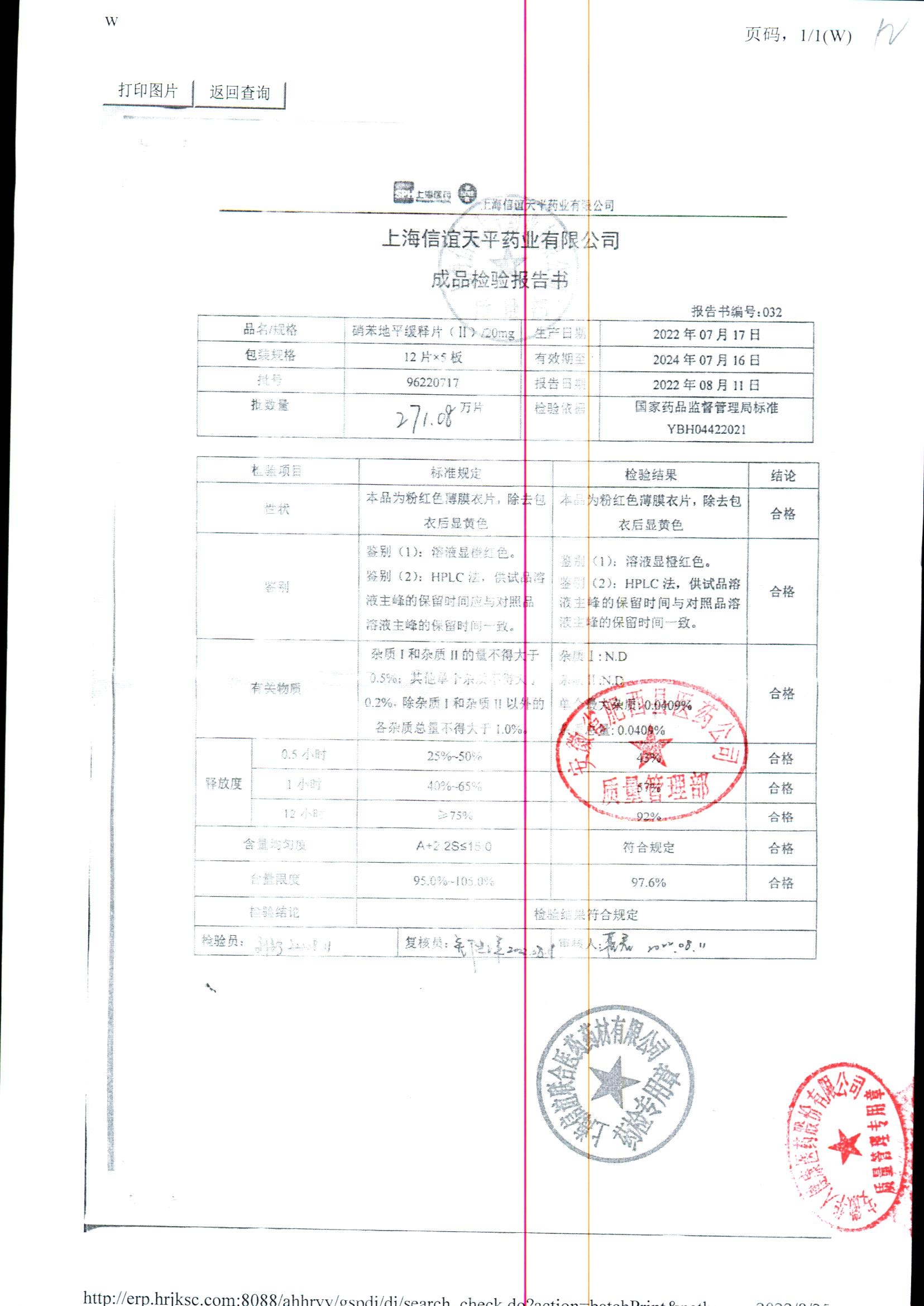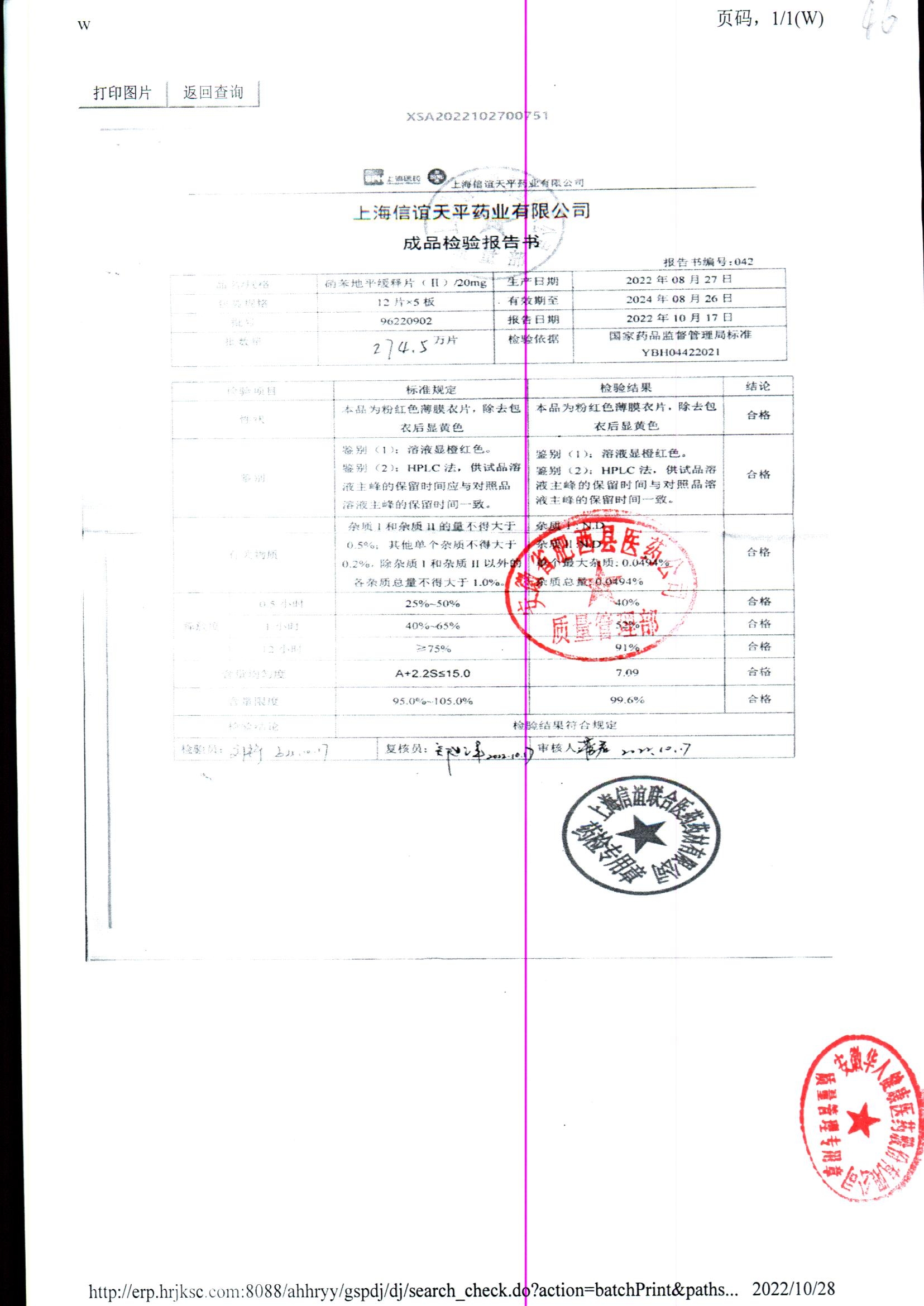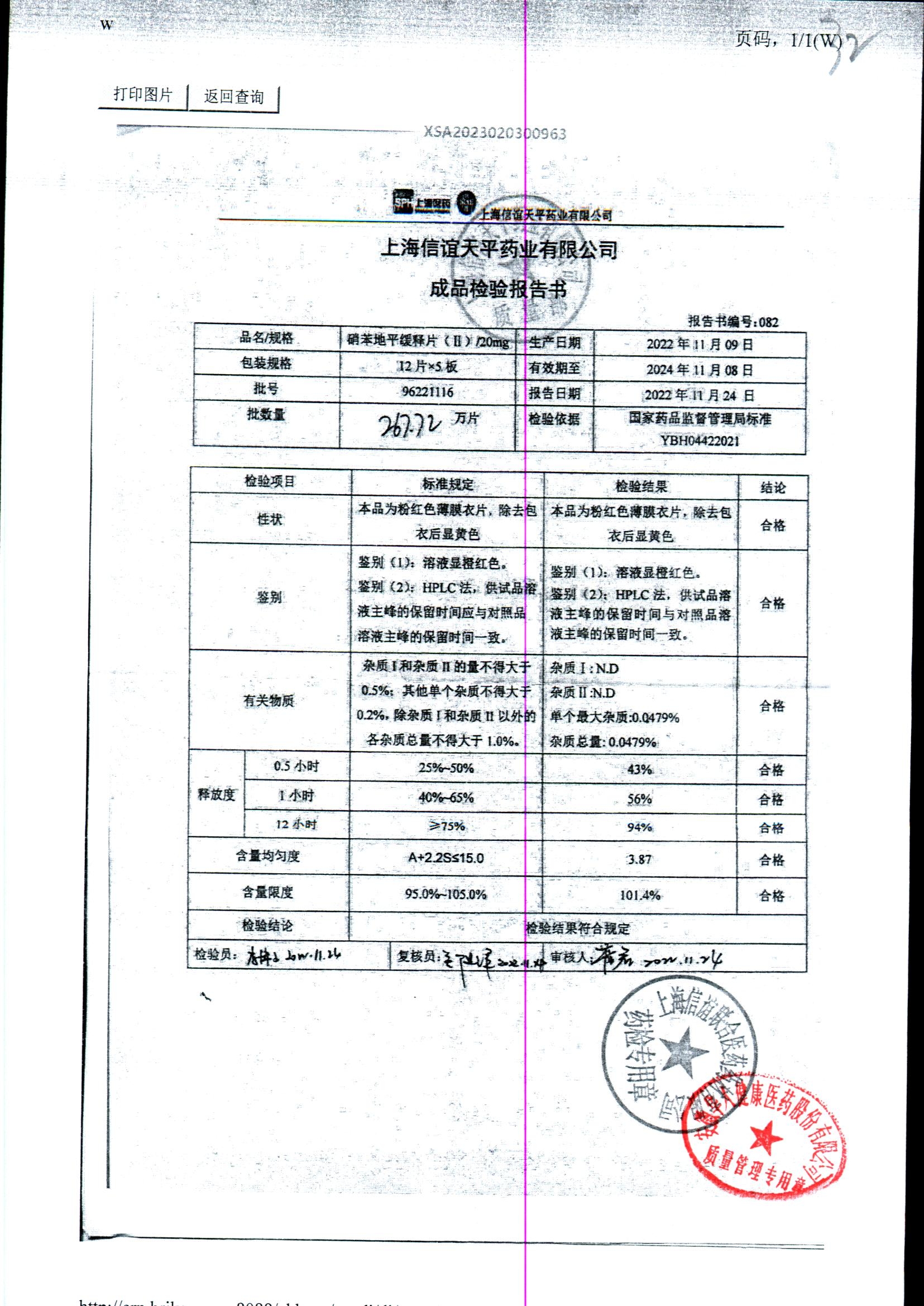 | 硝苯地平緩釋片 | 60s | 96220902/3 | 查看詳情 |
