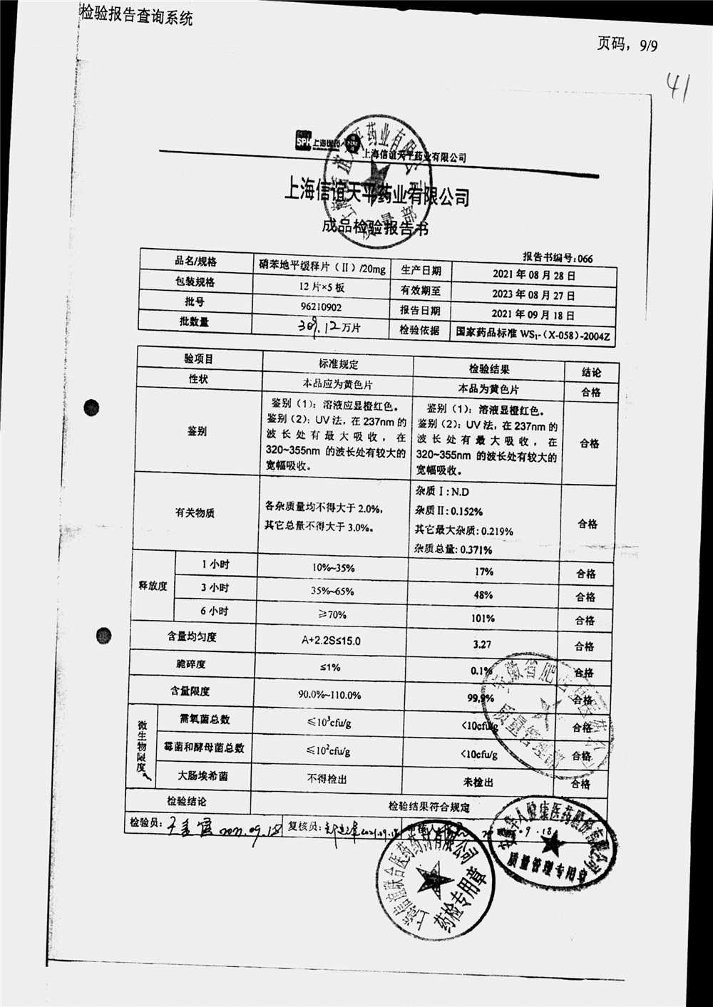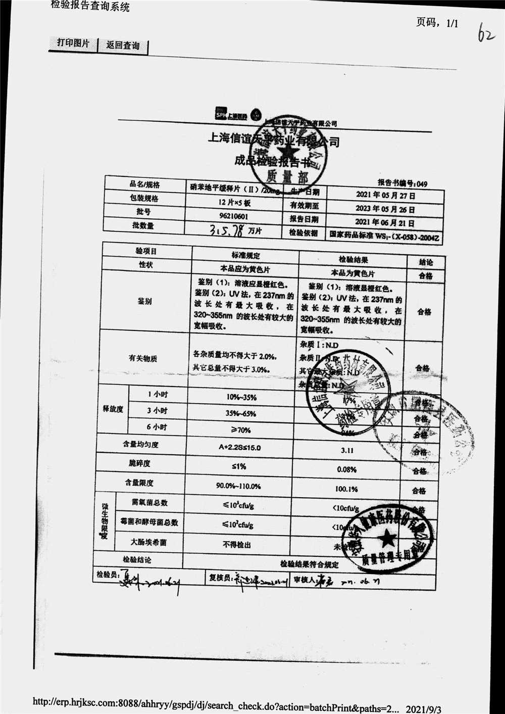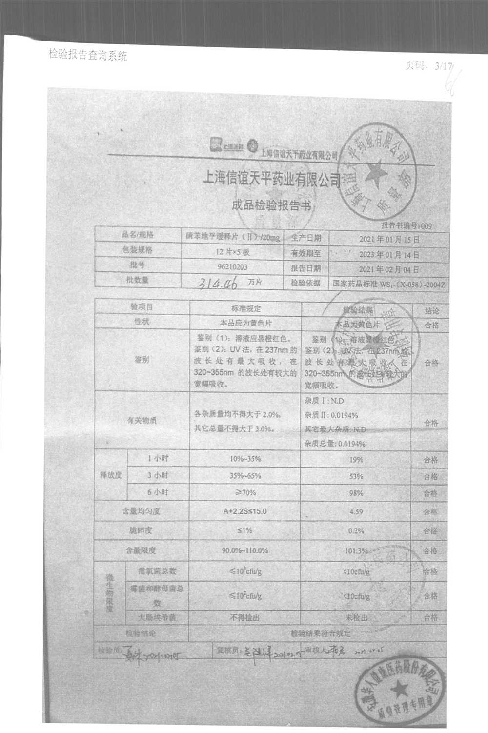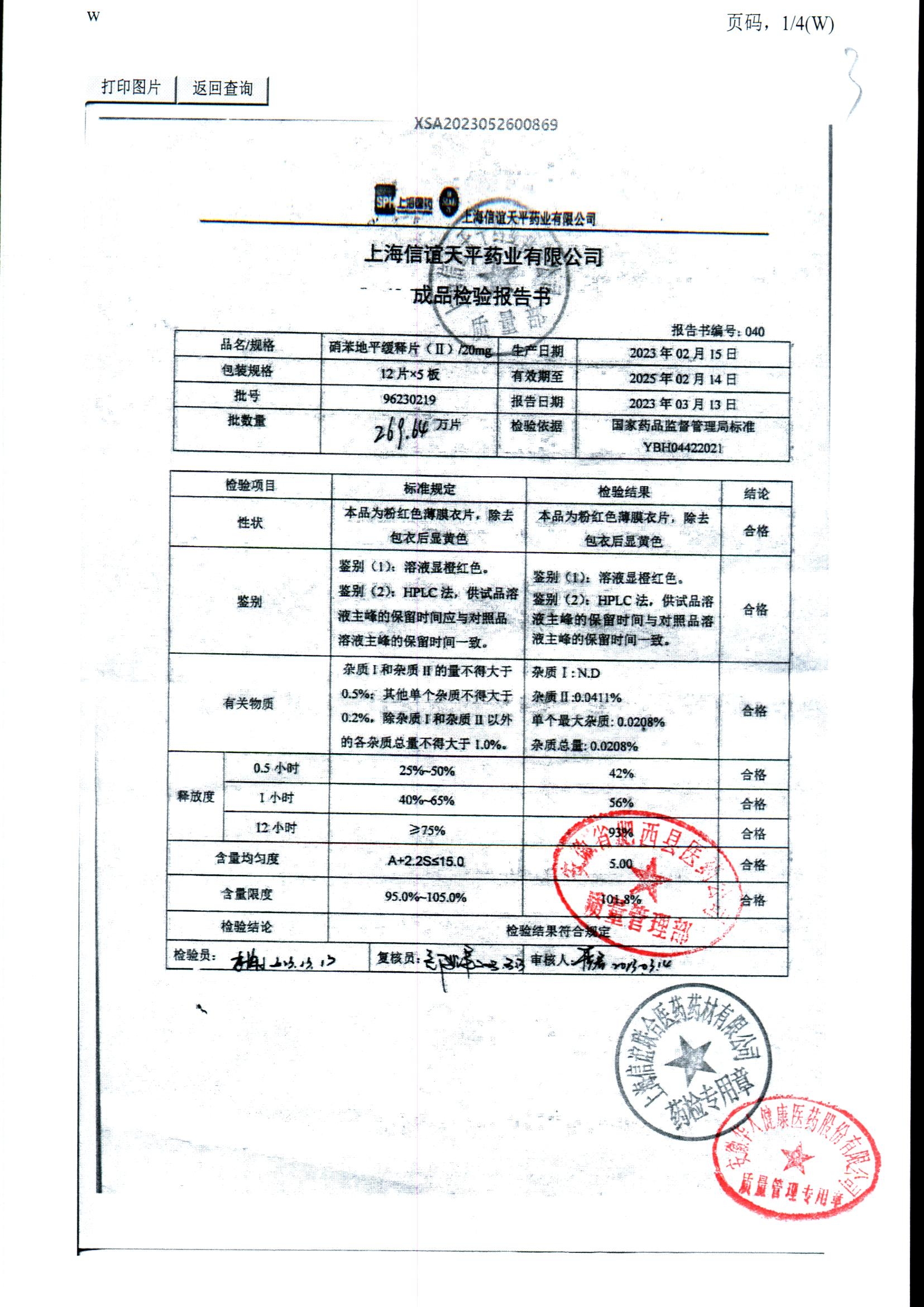 | 硝苯地平緩釋片 | 60s | 96220902/3 | 查看詳情 |