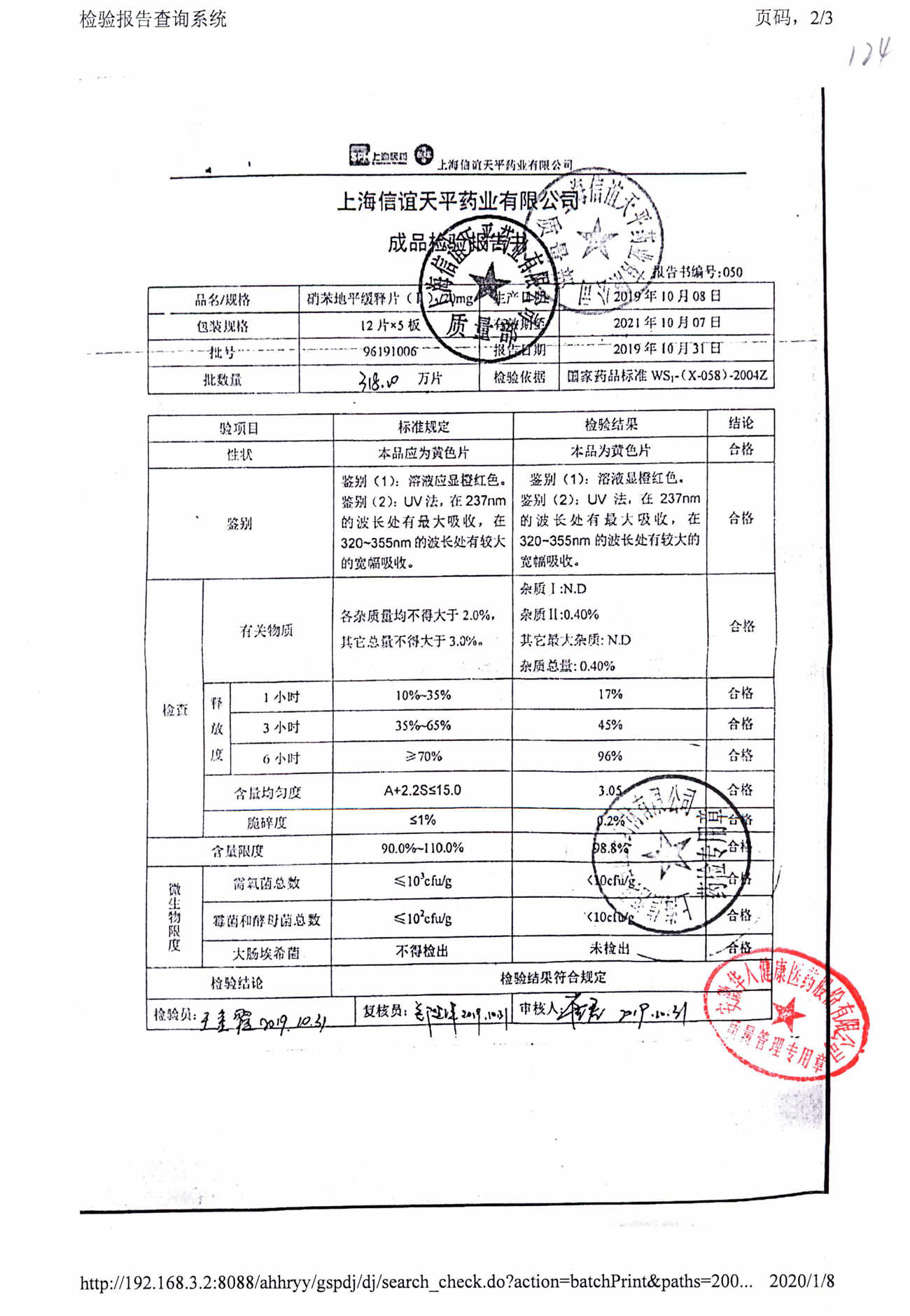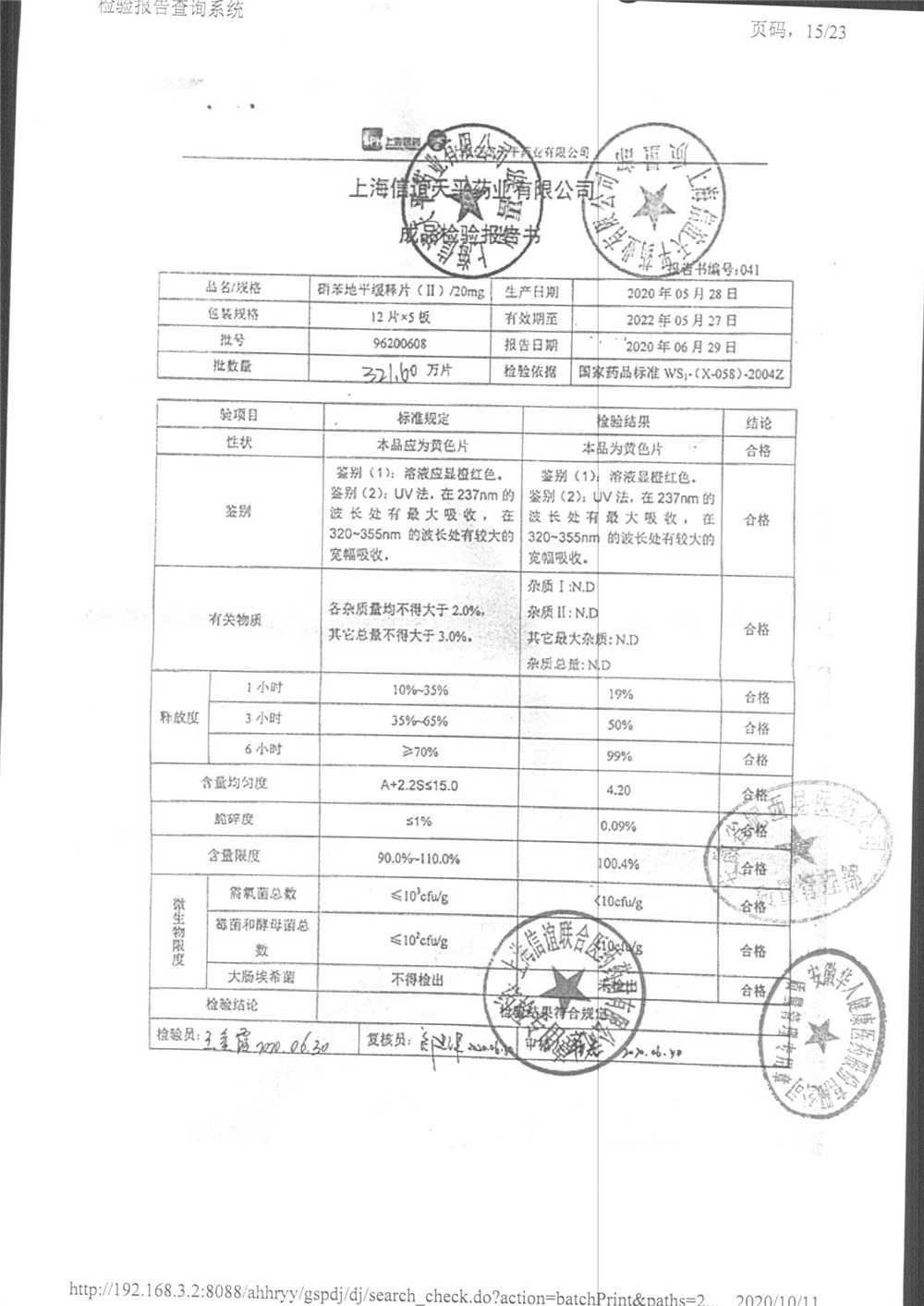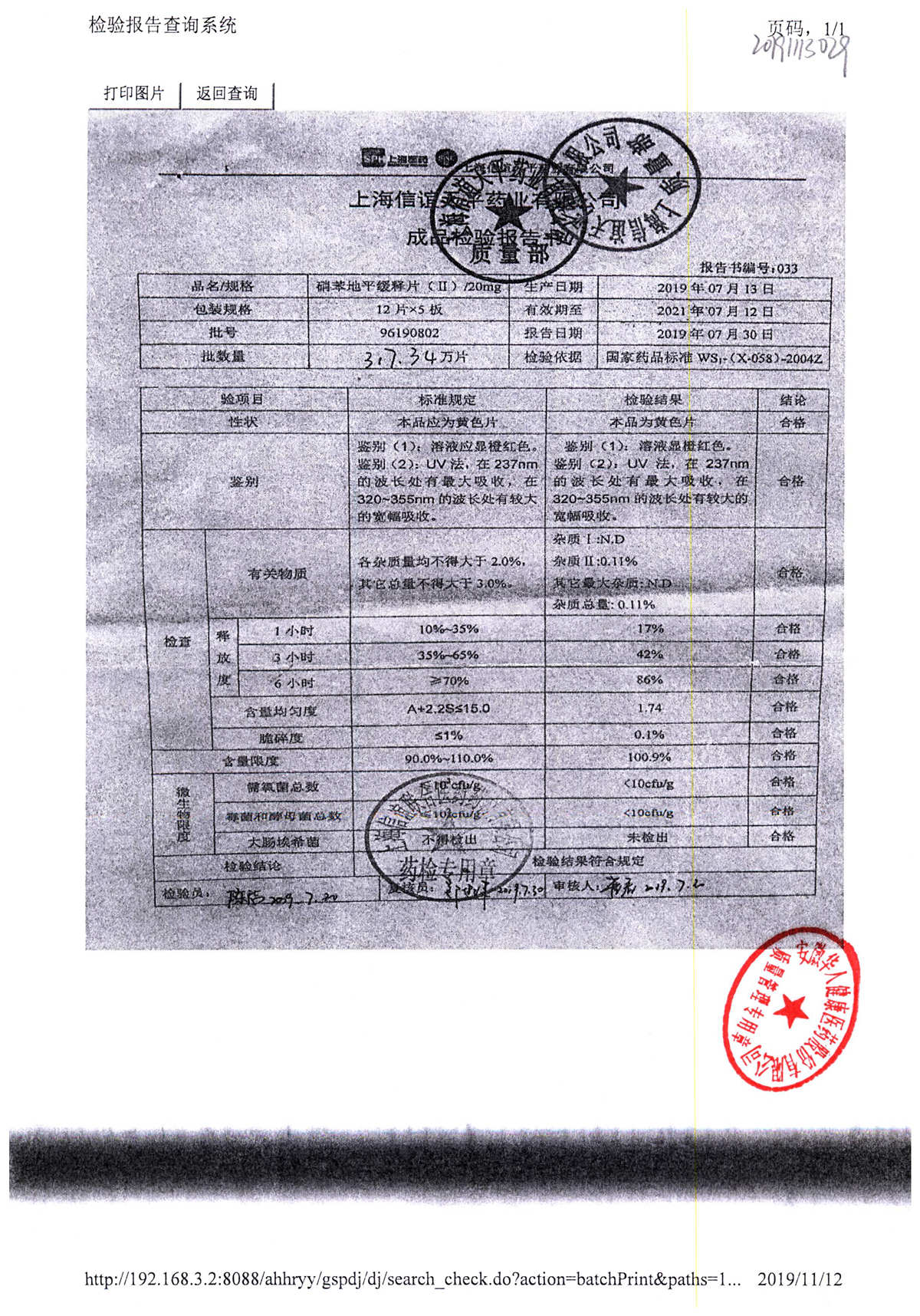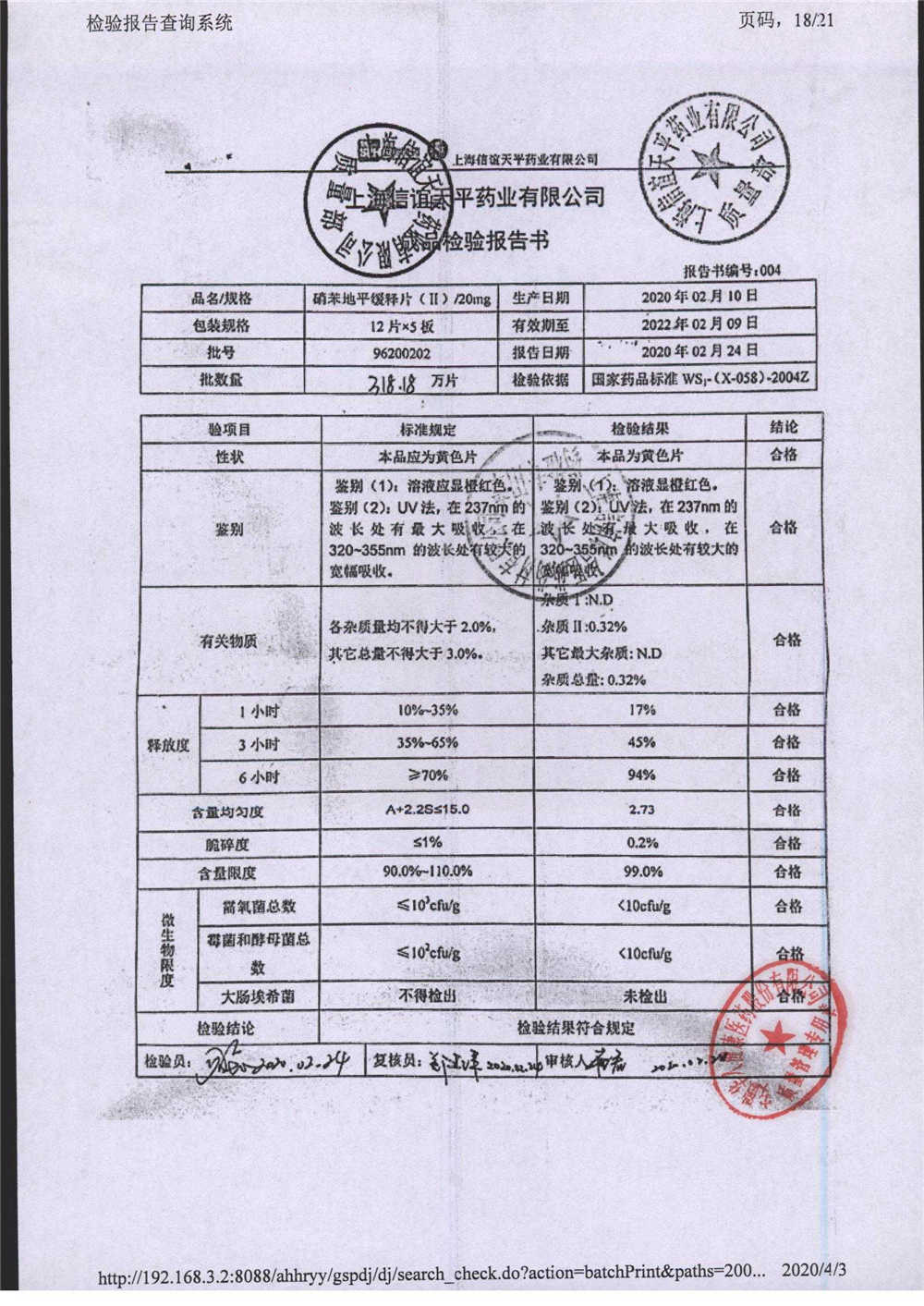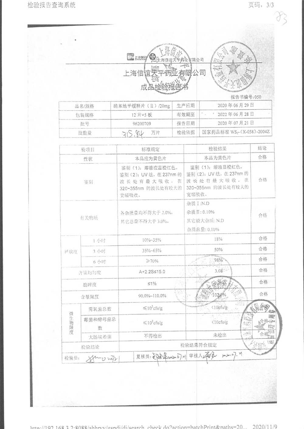 | 硝苯地平緩釋片 | 60s | 96220902/3 | 查看詳情 |