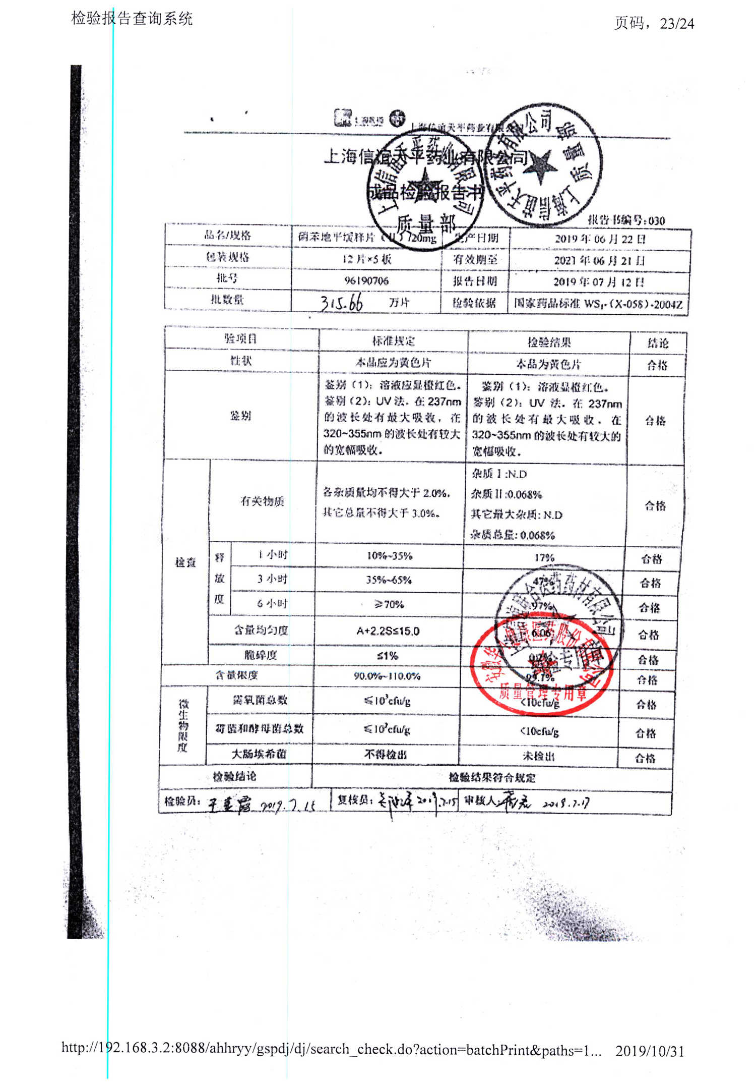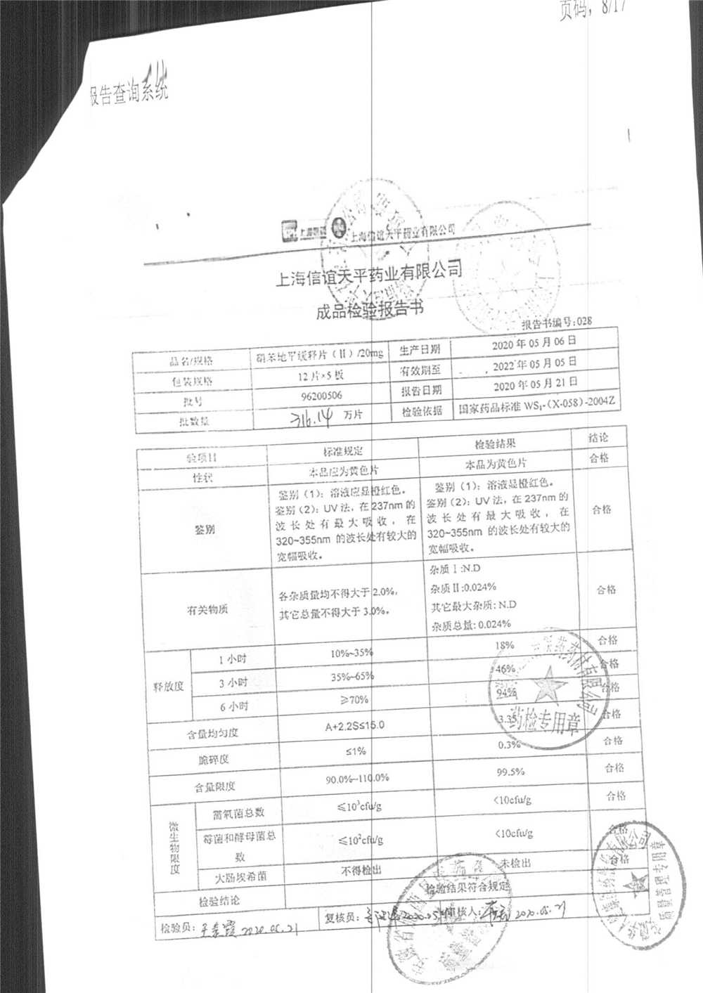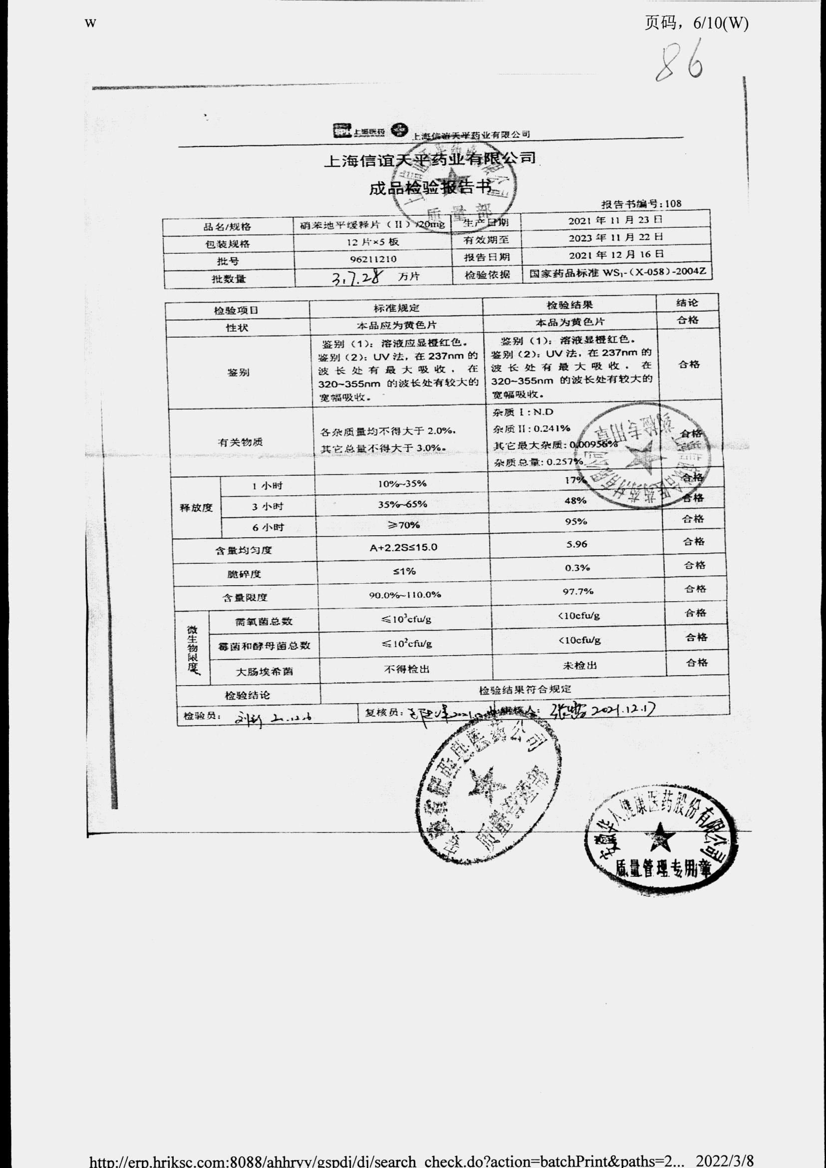 | 硝苯地平緩釋片 | 60s | 96200706 | 查看詳情 |